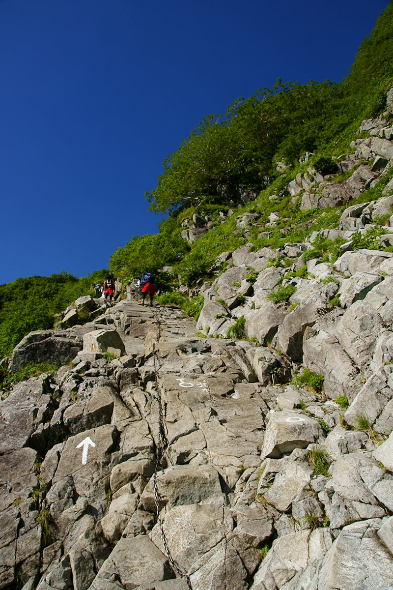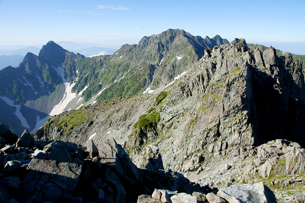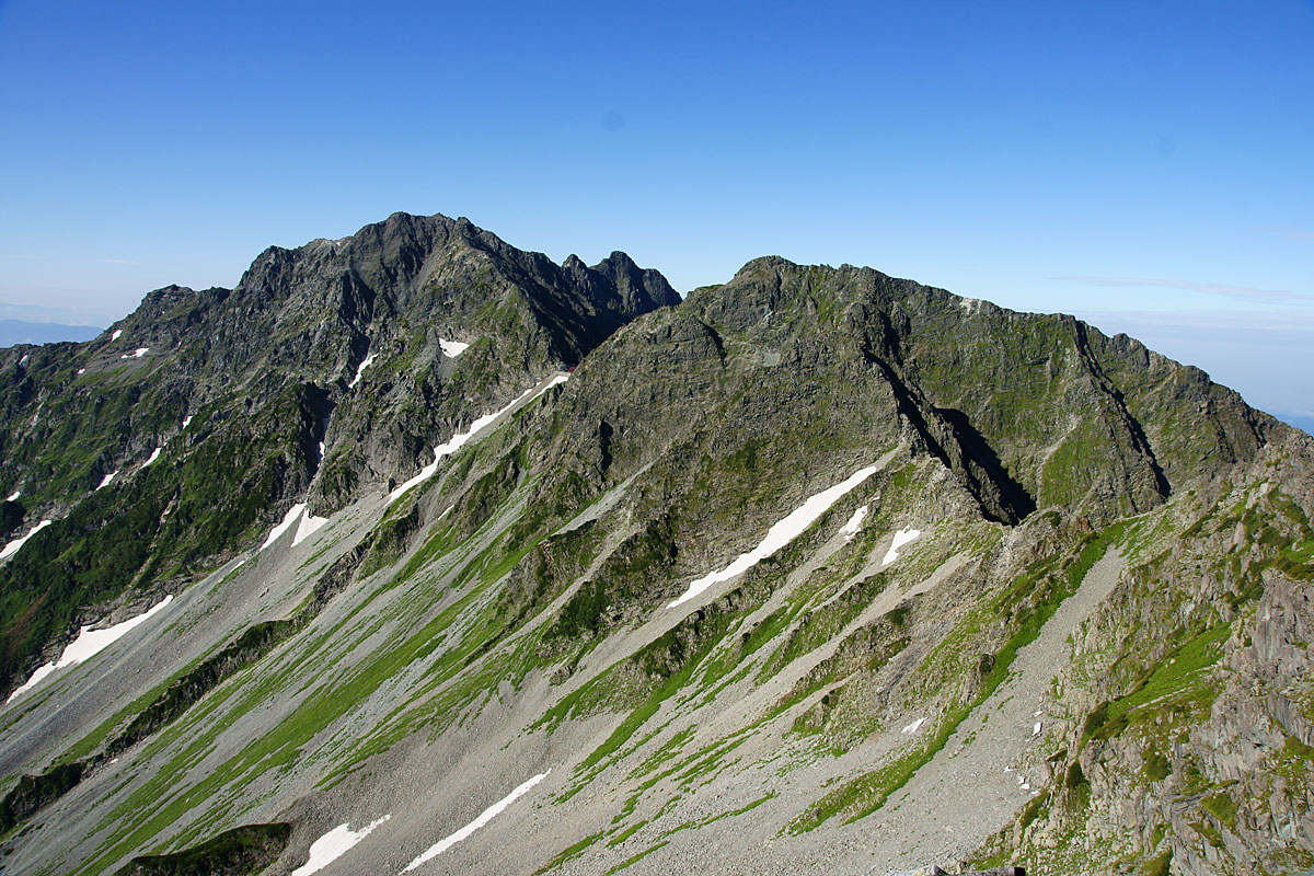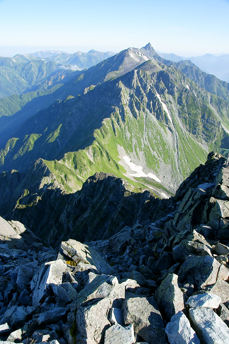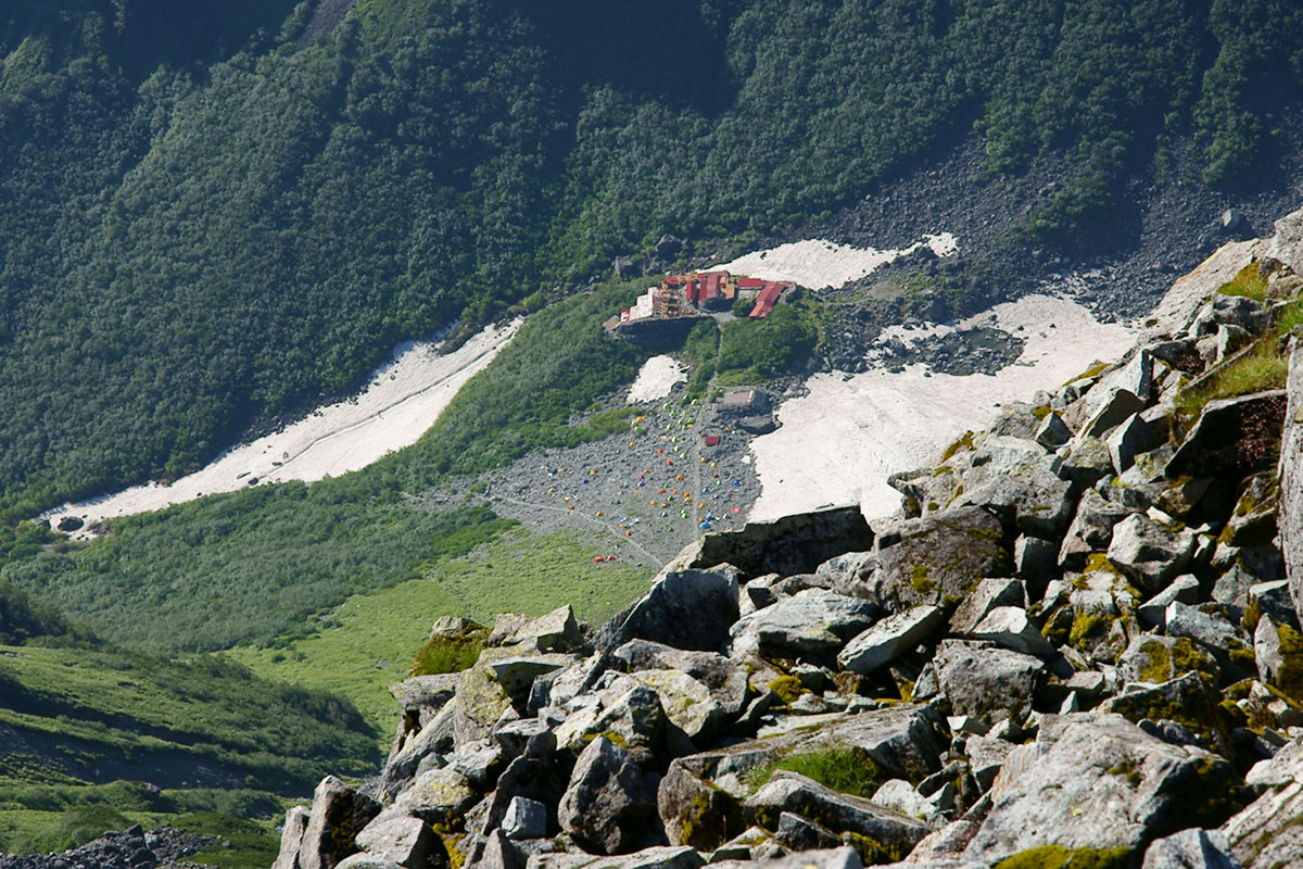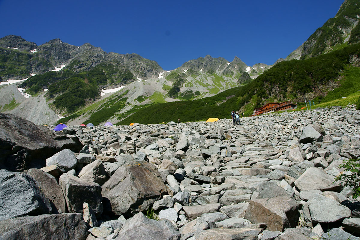 ■穂高連峰(北アルプス)2009年8月15,16日 No.502 隊長 | 15日の1 | 15日の2 | 16日の1 | 16日の2 | 北穂高岳 撮影やら休憩やらで余計に時間を費やしたが、北穂分岐にザックをデポし、予定通り北穂山頂に到着した。山頂直下にある北穂高小屋は、登山者が出発した後だったので閑散としていた。これから縦走者や涸沢からの登山者を受け入れ賑わうだろう。緊張が続いたのでのどが渇いた。コーラを買ってテラスに座り、少しくつろぐことにした。風もなく穏やかで眺望もいい。過去の山行を思い出しながら、山座を同定する。「こんなにいい天気になったのは3,4日前からです」「8月後半になると今度は寒くなりますよ」と小屋の若いスタッフが言っていた。 下山 北穂山頂よりキレットを覗き込む。今度はここを登ってくる予定だ。とにかく天候に恵まれたことに感謝だ。穂高連峰ビッグ4の締めくくりにふさわしい北穂山頂となった。 本谷橋 涸沢でひと休みしようと思ったが、あまり体力を消耗していなかったのでそのまま通過し、とりあえずは本谷橋まで降りることにした。涸沢まで降りるとルートは大変歩きやすくなる。しかしその反面、単調になるので今度は、時間短縮を努めるようにした。本谷橋には10時前に到着。ここでひと休みすることにした。これから登る人たち、下る人たちがたくさん集っていた。高度を下げるにつれ徐々に気温が上がってきたのでのどが渇く。先ほど谷で汲んだ雪解け水がおいしい。さてここから横尾まではさらに道が良くなるので早く歩ける。距離2.8キロを40分で歩き横尾を通過した。 徳沢にて 横尾からは怠惰な林道歩きだ。横尾から上高地までは距離にして約10キロあり、ちんたら歩くと3時間もかかってしまう。観光客にとってはこの林道歩きが目的で来ている人が多く、それなりに意義があると思うが、我々登山者が下山に使う場合は、長々と続くつまらない行程だ。まずは徳沢までの3.9キロを一気に歩き、ヒートアップした体をソフトクリームとCCレモンで冷却した。昨年はここで、財布がないのに気づき、大慌てしたことを思い出す。 帰路 徳沢から上高地までは6.3キロ。途中の明神で10分ほど休憩し、上高地に1時半に到着した。上高地はサンダル履きの観光客でごった返していた。現実の世界に引き戻された気分だ。平湯行きのバス停には長蛇の列ができていた。30分間隔の真ん中に臨時増発を入れてくれたのですぐに乗ることができた。帰路の東海北陸道だが、白鳥と一宮で渋滞。名神に接続する一宮では動かなくなったので、手前で国道に降りて名古屋高速に直接接続した。その後はスムーズで川後ICまで快調に走り自宅には19時前に到着できた。完 |