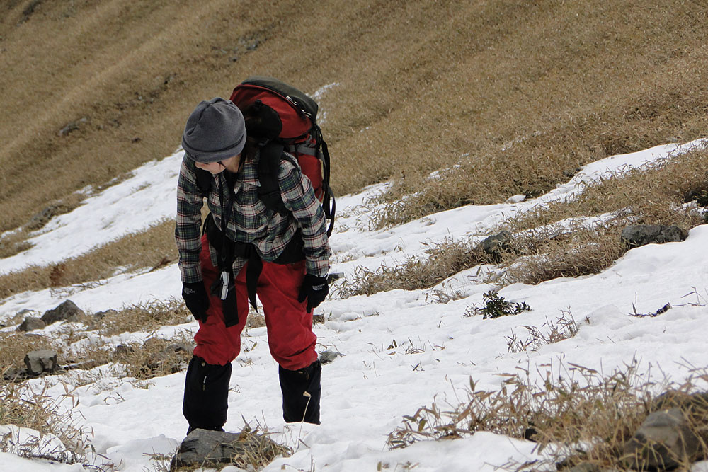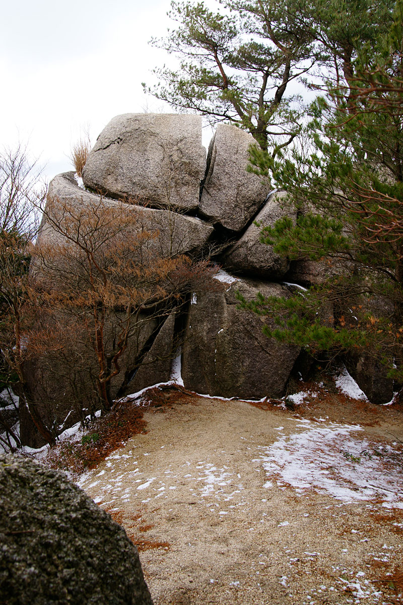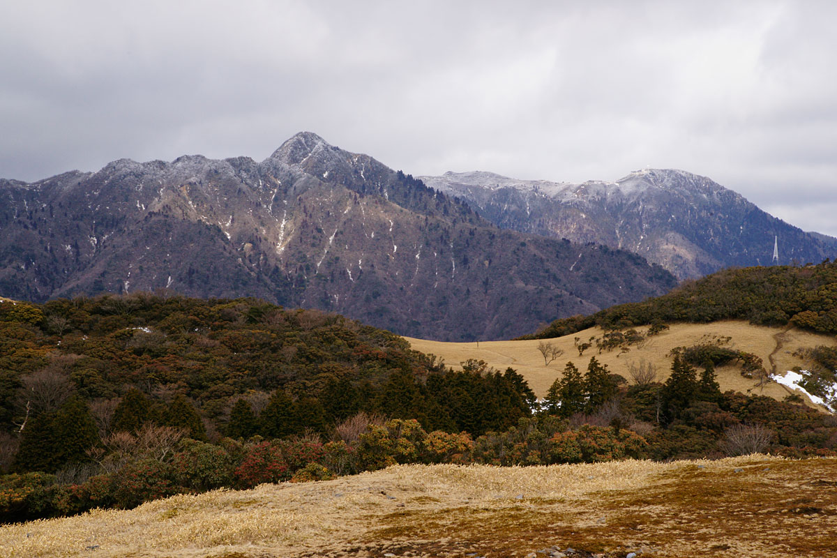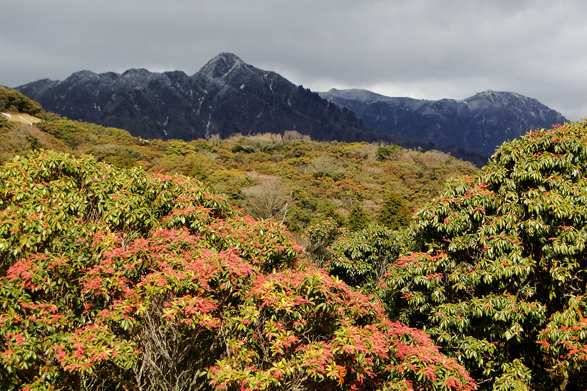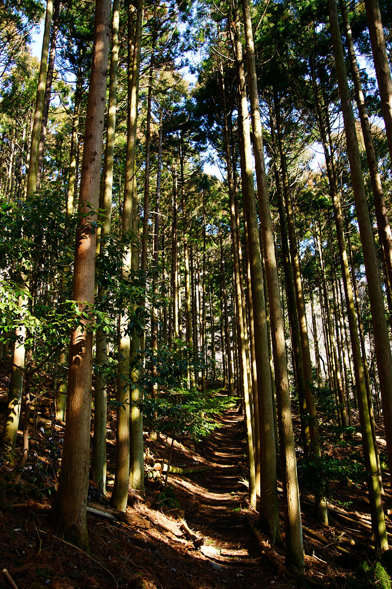 ■入道ガ岳(鈴鹿) 2010年2月13日 No.532 つくだにさん、隊長 プロローグ 根を詰めて取材山行を続けてきたので、少し気力が落ちてきた。昨年は雪にこだわったが今年は、別の課題があったので、雪に関しては少し淡泊になっている。少し冷え込んだので樹氷も楽しめそうだが、思い切って初物を探しに出かけた。 プラン uttyさんは今回、スキーに行くみたいなので不参加になり、つくだにさんと二人になった。単独ならどうしても、出発地点に戻るルートになってしまうが、車が二台あるので一台を小岐須の祓塚に回しておくことにし、帰路はイワクラ尾根を通り、仏岩と重ね岩を見物して帰ることにした。 出発 堰堤の駐車場は登山者の車が数台駐まっており、10人ほどの若いグループが出発の準備をしていた。他のグループは二本松尾根の方へ入って行った。若いグループは我々と同じ、井戸谷コースのようだ。このコースを使うと最短で山頂に立て、せっせと歩くと1時間強で登ってしまう。まだ9時前だし、ピークハント目的の山行でもないので、若者グループに先に行ってもらうべく、道端で追い越していくのを待った。 寒気は入ってきているが、日射しには力強さが感じられるようになってきた。木々が芽を吹き、葉が日射しを遮るまでに、春の草本は芽を出し、結実しなければ生き残れない。融雪を待ち、光のエネルギーを捉え、やがて一斉に咲き出すだろう。今年もまた、春がやってくる。2月の後半から咲き出し、7月の後半には3000mのアルプスの頂まで咲き上がっていく。 井戸谷 井戸谷も通報ポイント6あたりまでは雪が溶けていた。上部の灌木帯を抜け、笹原(ミヤコザサ)に入ると残雪があった。寒気が入り気温が低いので、よく凍り付いている。ときおり青空が覗くが、天候は回復途上にあるのか、冬雲がアラレを運んできている。笹原に入ってからの30分は急勾配で登りがきつい。立ち止まり振り返ると、平野や伊勢湾がよく見えている。空気に透明度があるようだ。 アセビ 山頂部に上がると風が冷たかった。笹原にアセビが群生する、入道ならではの景観が広がる。アセビも赤い花芽を出し始めている。鈴鹿主稜線の山々の頂は樹氷がついているようだ。空気の透明度が高いので、三角点峰(山頂)に立ち、ぐるっとひと回りするとパノラマ展望が楽しめた。 入道岳 三等三角点の記 点名:入道岳 所在地:鈴鹿市小岐須町1191 所有者:小岐須森林組合 選点:明治23年5月23日 埋標:明治23年6月5日。点名は入道ケ岳ではなく、入道岳だ。「ケ」と「ガ」があるが、山と渓谷社ではガに統一している。 奥宮 入道には3つの峰があって、最も標高があるのが奥宮のピークのようだ。風の強い三角点峰を避け、奥宮で昼食にした。風裏になり日射しがあるので暖かい。昼食はいつものように、おにぎりとカップ麺。食事に凝った時期もあったが、最近はシンプルな方がよくなってきた。デザートは熊野のポンカン。これがまたおいしい。 イワクラ尾根 さて帰路は、イワクラ尾根を仏岩まで歩き、そこから大岩谷左岸尾根で下る。起伏の激しいイワクラ尾根の最初は痩せ尾根の急降下で、雪が凍結しているのでスリップ注意だ。単独者と男性二人組と行き交った。雪もない、花もない、緑もない中途半端な季節だが、私たちの他にもここを歩いている人もいるものだ。寒気の影響が残っていて、とりおりアラレがぱらぱらと降ってきた。春を待つ紫色に変色したイワカガミの葉が、アラレに埋まっていた。 大岩谷左岸尾根 古代原始信仰の盤座(いわくら)信仰の対象となった仏岩。椿神社では、この仏岩と重ね岩を盤座として扱っている。 仏岩を過ぎるとすぐに大岩谷左岸尾根への分岐がある。以前はほとんど目印がなかったが、今は目印テープで賑やかになっている。邪魔になる灌木をのこぎりで切り払いながら下った。小谷が合流する所で尾根は終わり、谷コースとなる。谷をしばらく下ると白滝が足元に見える。さらに下っていくと松の木谷に合流する。これから先は植林帯となり、趣にかけるが作業道は歩きやすい。最後に谷を渡ると林道に出て、大石橋に至る。てくてく歩いて祓塚駐車場へ。 完 etc 今日、出会った福寿草。花についての記述はあえて記述しません。保護のためです。 |
