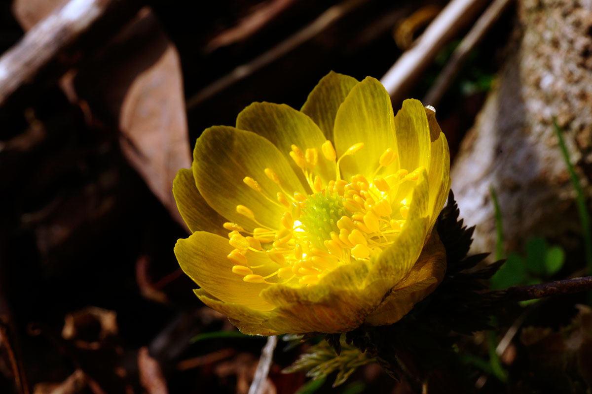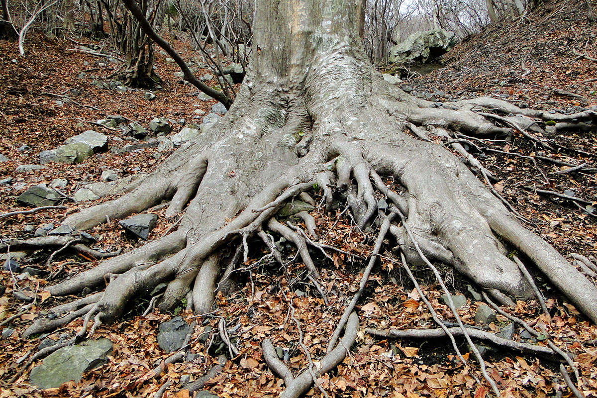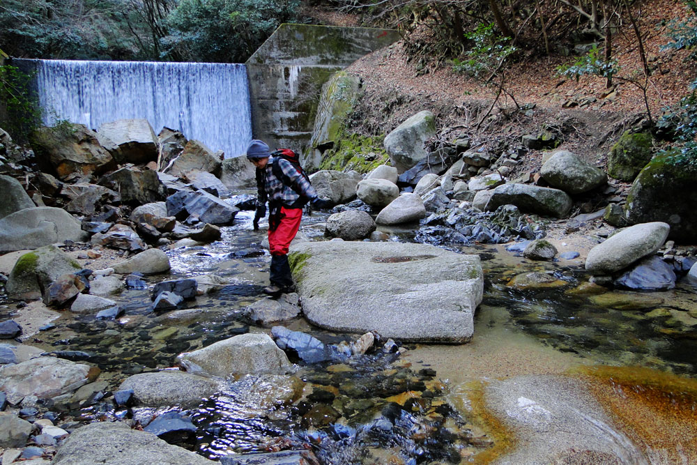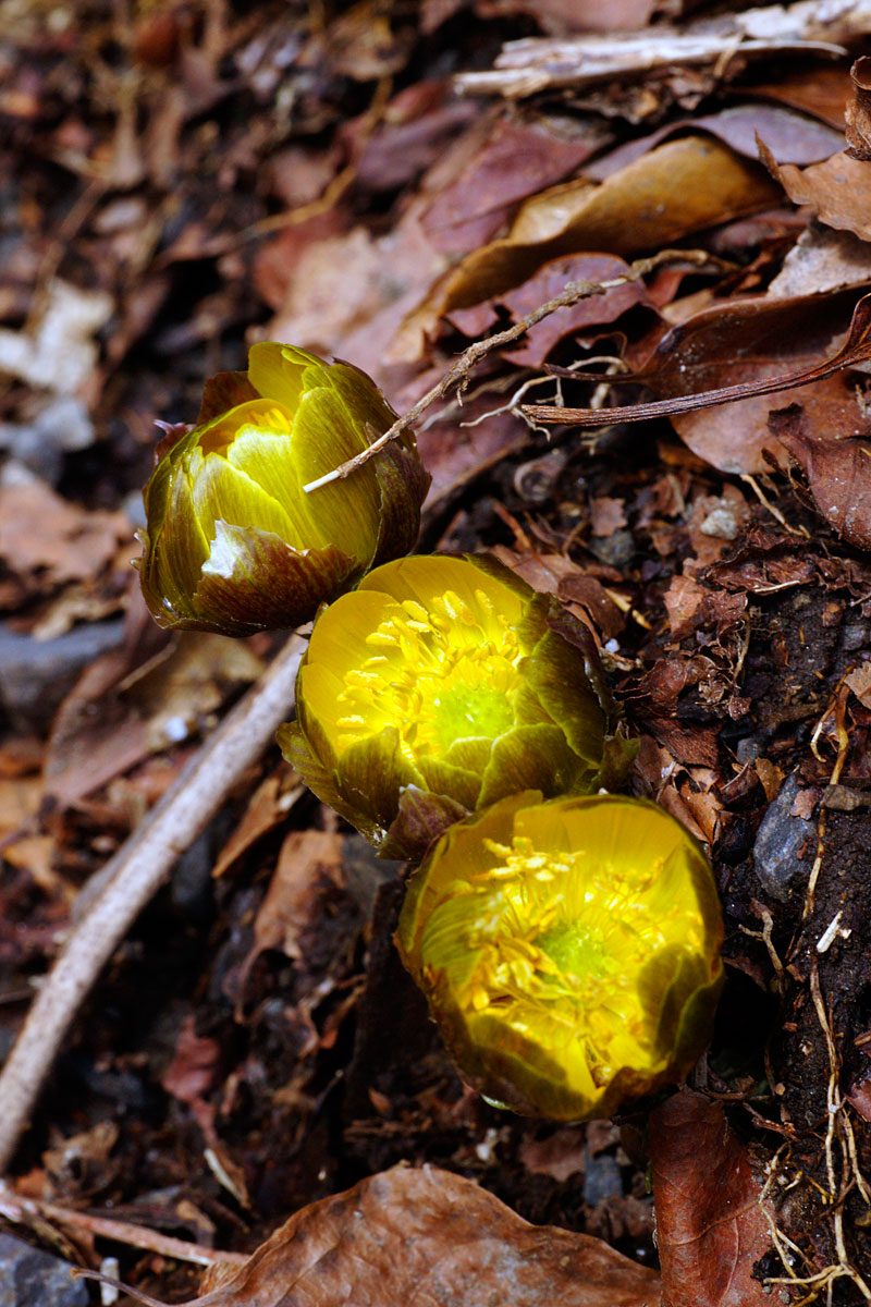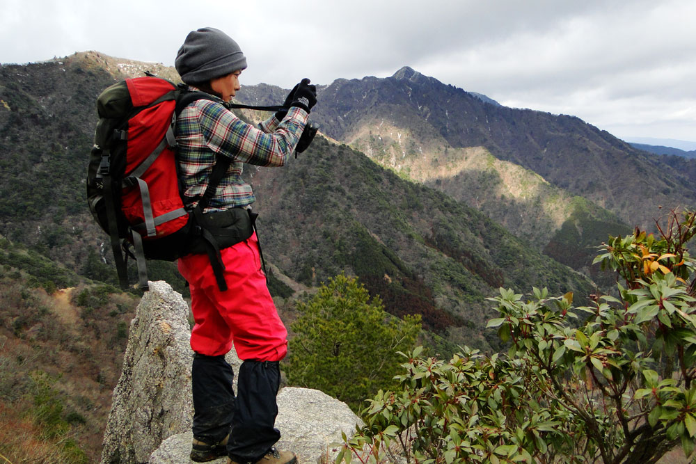 ■入道ガ岳(鈴鹿) 2010年2月13日 No.532 つくだにさん、隊長 プロローグ 根を詰めて取材山行を続けてきたので、少し気力が落ちてきた。昨年は雪にこだわったが今年は、別の課題があったので、雪に関しては少し淡泊になっている。少し冷え込んだので樹氷も楽しめそうだが、思い切って初物を探しに出かけた。 プラン uttyさんは今回、スキーに行くみたいなので不参加になり、つくだにさんと二人になった。単独ならどうしても、出発地点に戻るルートになってしまうが、車が二台あるので一台を小岐須の祓塚に回しておくことにし、帰路はイワクラ尾根を通り、仏岩と重ね岩を見物して帰ることにした。 出発 堰堤の駐車場は登山者の車が数台駐まっており、10人ほどの若いグループが出発の準備をしていた。他のグループは二本松尾根の方へ入って行った。若いグループは我々と同じ、井戸谷コースのようだ。このコースを使うと最短で山頂に立て、せっせと歩くと1時間強で登ってしまう。まだ9時前だし、ピークハント目的の山行でもないので、若者グループに先に行ってもらうべく、道端で追い越していくのを待った。 寒気は入ってきているが、日射しには力強さが感じられるようになってきた。木々が芽を吹き、葉が日射しを遮るまでに、春の草本は芽を出し、結実しなければ生き残れない。融雪を待ち、光のエネルギーを捉え、やがて一斉に咲き出すだろう。今年もまた、春がやってくる。2月の後半から咲き出し、7月の後半には3000mのアルプスの頂まで咲き上がっていく。 井戸谷 井戸谷も通報ポイント6あたりまでは雪が溶けていた。上部の灌木帯を抜け、笹原(ミヤコザサ)に入ると残雪があった。寒気が入り気温が低いので、よく凍り付いている。ときおり青空が覗くが、天候は回復途上にあるのか、冬雲がアラレを運んできている。笹原に入ってからの30分は急勾配で登りがきつい。立ち止まり振り返ると、平野や伊勢湾がよく見えている。空気に透明度があるようだ。 アセビ 山頂部に上がると風が冷たかった。笹原にアセビが群生する、入道ならではの景観が広がる。アセビも赤い花芽を出し始めている。鈴鹿主稜線の山々の頂は樹氷がついているようだ。空気の透明度が高いので、三角点峰(山頂)に立ち、ぐるっとひと回りするとパノラマ展望が楽しめた。 入道岳 三等三角点の記 点名:入道岳 所在地:鈴鹿市小岐須町1191 所有者:小岐須森林組合 選点:明治23年5月23日 埋標:明治23年6月5日。点名は入道ケ岳ではなく、入道岳だ。「ケ」と「ガ」があるが、山と渓谷社ではガに統一している。 奥宮 入道には3つの峰があって、最も標高があるのが奥宮のピークのようだ。風の強い三角点峰を避け、奥宮で昼食にした。風裏になり日射しがあるので暖かい。昼食はいつものように、おにぎりとカップ麺。食事に凝った時期もあったが、最近はシンプルな方がよくなってきた。デザートは熊野のポンカン。これがまたおいしい。 イワクラ尾根 さて帰路は、イワクラ尾根を仏岩まで歩き、そこから大岩谷左岸尾根で下る。起伏の激しいイワクラ尾根の最初は痩せ尾根の急降下で、雪が凍結しているのでスリップ注意だ。単独者と男性二人組と行き交った。雪もない、花もない、緑もない中途半端な季節だが、私たちの他にもここを歩いている人もいるものだ。寒気の影響が残っていて、とりおりアラレがぱらぱらと降ってきた。春を待つ紫色に変色したイワカガミの葉が、アラレに埋まっていた。 大岩谷左岸尾根 古代原始信仰の盤座(いわくら)信仰の対象となった仏岩。椿神社では、この仏岩と重ね岩を盤座として扱っている。 仏岩を過ぎるとすぐに大岩谷左岸尾根への分岐がある。以前はほとんど目印がなかったが、今は目印テープで賑やかになっている。邪魔になる灌木をのこぎりで切り払いながら下った。小谷が合流する所で尾根は終わり、谷コースとなる。谷をしばらく下ると白滝が足元に見える。さらに下っていくと松の木谷に合流する。これから先は植林帯となり、趣にかけるが作業道は歩きやすい。最後に谷を渡ると林道に出て、大石橋に至る。てくてく歩いて祓塚駐車場へ。 完 etc 今日、出会った福寿草。花についての記述はあえて記述しません。保護のためです。 |
