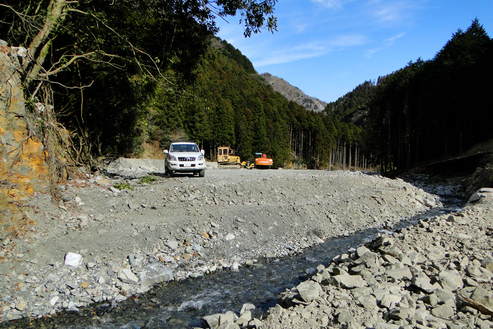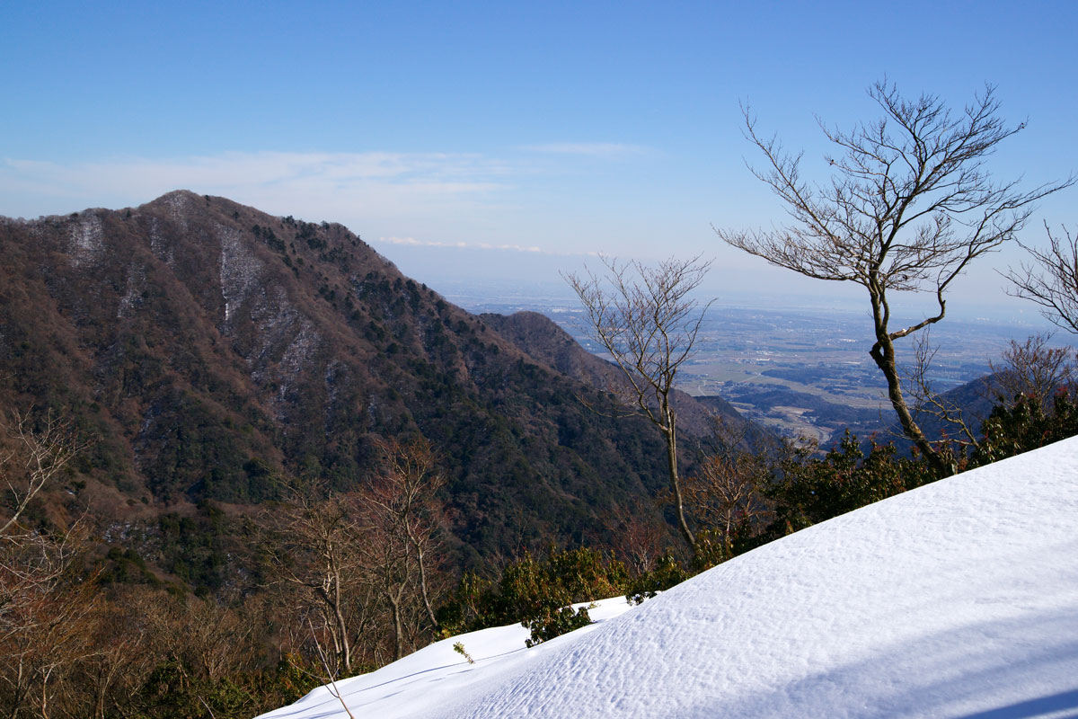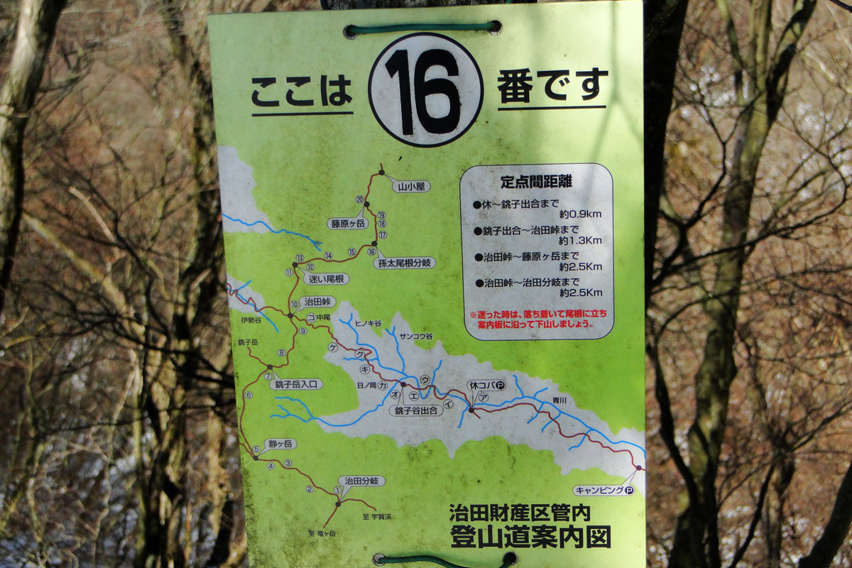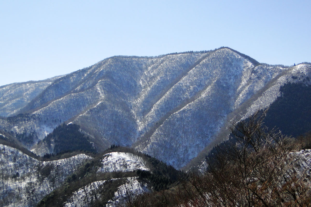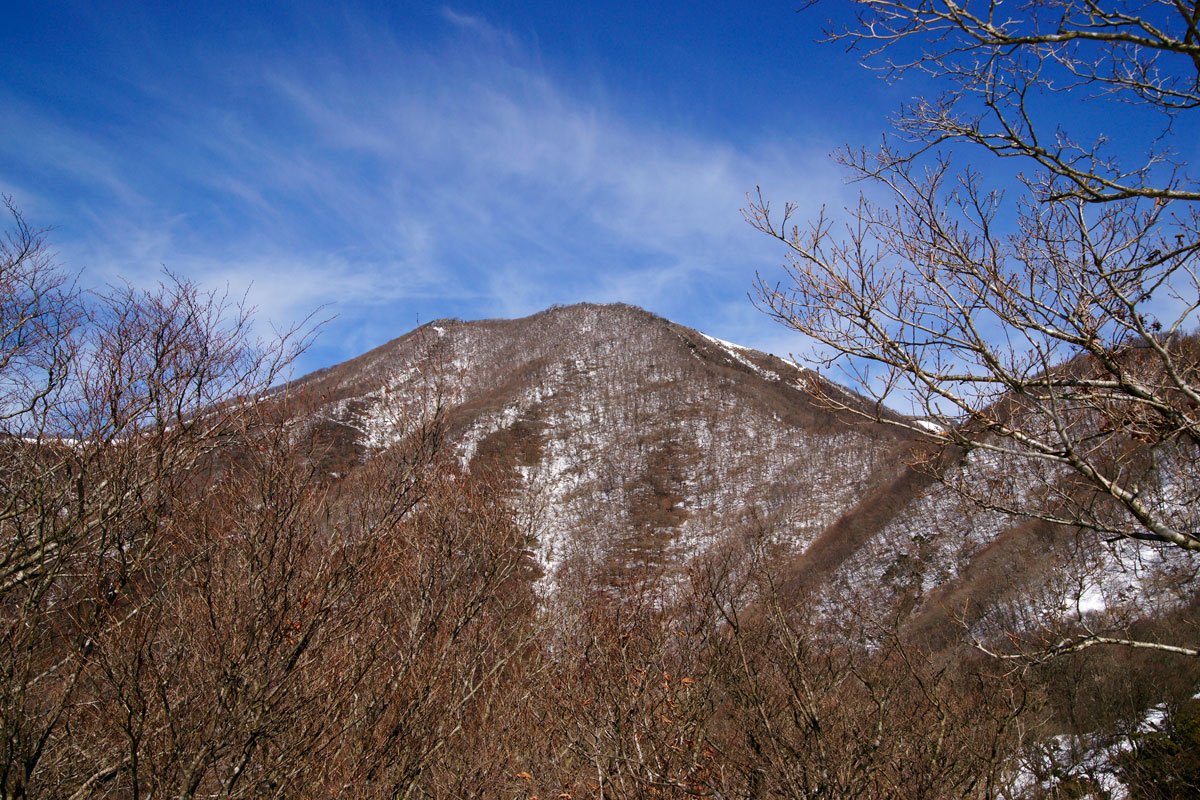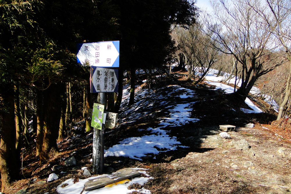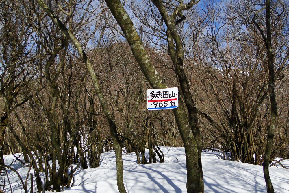 ■孫太尾根(鈴鹿) 2010年2月21日 No.533 隊長 | ページ1 | ページ2 | 多志田山 草木を過ぎるといったんは平坦な尾根道になるが、やがて傾斜が増し、標高点965mの多志田山に登りつく。孫多尾根北側の谷が多志田川で、その源頭のピークであることから、この山名がつけられたと推測できる。山麓から見上げる山容は、ピラミダルな双耳峰だ。藤原岳展望丘から伸びる県境稜線上の次のピークで、美しい二次林が広がっている。 少し昼には早いが、多志田山でシンプルな昼食とした。お湯を沸かし、おにぎりをほおばっていると、シジュウカラがやってきて、ツピーツピーと明るい声でさえずりながら、枝から枝へ忙しく飛び回っていた。まだまだ積雪があり樹林を吹き抜ける風は冷たいが、陽春の日射しは力強く、木々の芽も膨らみ始めている。 県境縦走路 さて帰路は、治田峠から青川渓谷を下ることにした。まずは県境稜線を治田峠まで南下する。久し振りの県境稜線だ。記録を見ると前回この区間を歩いたのが2002年6月のことだった。それ以前にも何度か歩いているが、花の少ない尾根なのでどうしても遠ざかってしまう。登山道案内がこのルートにも設置されていた。一昨年、竜ガ岳から静ガ岳、銚子岳と縦走路を歩いたときに見かけたのと同じものだ。県境稜線は残雪があたのでかえって歩きやすかった。途中、蛇谷分岐で一息入れた。 迷尾根 県境稜線は人の歩いた形跡もなく、誰にも邪魔されない静かなルートだ。途中で道草して撮影のためにコースを外しP845に立ち寄った。その手前が迷い尾根で、真っすく歩いて行くとこのピークに行き着き、そのまま進むと茨川に降りてしまう。治田峠はここで90度左折する。とにかく展望のいいピークで、今歩いてきた稜線と藤原岳の全容が一望できる。腰を下ろしてしばらく展望を楽しんだ。 治田峠 迷い尾根を90度左折すると治田峠は近い。約30分で峠に峠に到着した。日陰は雪が残り、銚子岳方面へのトレースがあった。静ガ岳、銚子岳を目指すにやはり、この治田峠からが登りやすいからだろう。時計を見ると13時を過ぎていた。まだまだ時間的にゆとりがあるが、新町まで車を回収しに行くので、そのまま峠を素通りし山を下った。 中尾地蔵 明るい落葉樹林帯を抜けると、カシ、ツバキなどの薄暗い常緑樹林帯に入る。ジグザグに下っていくと中尾地蔵がある。頑丈な案内とは対照的に、小さな祠は崩れかけている。この峠道は昔、生活道路として使われていたので、深く掘れてきているが、道幅もあるしっかりとした道だ。ただ現在は、登山者のみが使う道になっていて、倒木もそのまま放置され、灌木の枝が張りだし、どこか荒廃感が漂っている。ザックに常備してのこぎりを取り出し、灌木の枝を切りながら下った。 土石に埋まった谷にも、所々に目印があり、いつしかルートができあがっているようだ。日丘稲荷手前で山腹の登山道に上がる。そのまま谷を進むと大滝で、進路が途絶えてしまう。前回はそのまま谷を進み、途中で登山道まで這い上がったことを思い出した。 休みコバ 土石に埋まったトンネルを覗き込んでから河原を下っていくとひと組に若い男女と出会った。話を聞くと、稲荷まで行くらしい。キャンプ場から歩いてきたのだろうと思ったが、休みコバまで降りてくると、そこまで仮説の作業道が通じており、4WDが乗り入れていた。重機や資材が置かれ、復旧作業が進んでいるようだ。材木の切り出しのためだと思われる。そういえば、県境稜線でも杉が伐採されていた。雇用対策かなにかで人の手が入り始めたのだろうか。ここから1時間で新町まで戻り車を回収して帰路についた。 完 | ページ1 | ページ2 | |