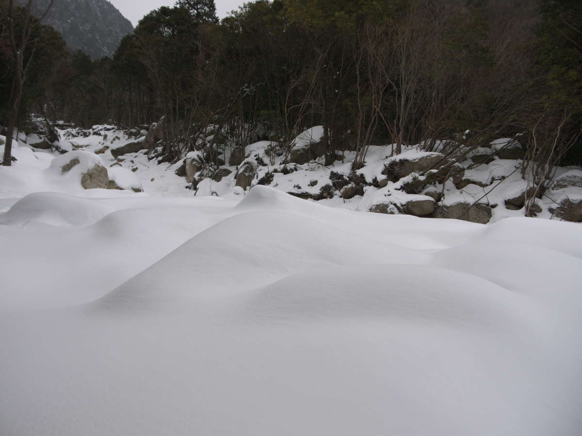 ■藤内沢@御在所岳(鈴鹿)2011年1月23日 No.589 houさん、utty、隊長 今年は、昨年末からの寒波がゆるまず、適度な積雪と冷え込みで、低山の鈴鹿でも冬山らしくなっている。遠くまで遠征しなくても、それなりに楽しめるからありがたい。御池や台高のスノーハイクも魅力的だが、唯一アルペン的な雰囲気が味わえる御在所を見視する訳にはいかない。先週の寒波でさらに行きが供給されいい状態になっているだろう藤内沢を登ることにした。 ゲート前に駐車しスカイラインを歩く。除雪された行きが路肩に積み上げられていた。雪は十分になるようだ。さて藤内沢の状態はどうだろうか、気になるところだ。氷の出来具合、積雪量により難易度が大きく違ってくるので、ピッケルとアイゼン以外に、ハーネス、スリング、ヘルメット、ロープ8mm50mなどの登攀具を準備した。従ってザックもそれなりの重さになる。 この日はまずまずの天候に恵まれ 、気温も低くコンディションは良さそうだ。登山者も多くトレースもしっかりとしていた。まずは藤内小屋まで進み、まずはHさんがハーネス、アイゼンを装着した。われわれも北谷を少し進んだところで登攀具を装着し、藤内沢へ入る。裏道の藤内沢分岐から巨石で埋まった北谷を横断すると登攀のスイッチが入る。昨年は何度も藤内壁へ通ったが、今年もまた、北谷を渡ると気持ちが引き締まってきた。 作成中です 次のポイントはコウモリ滝だが、ここも積雪のために簡単に乗り越せてしまう。残念。 |