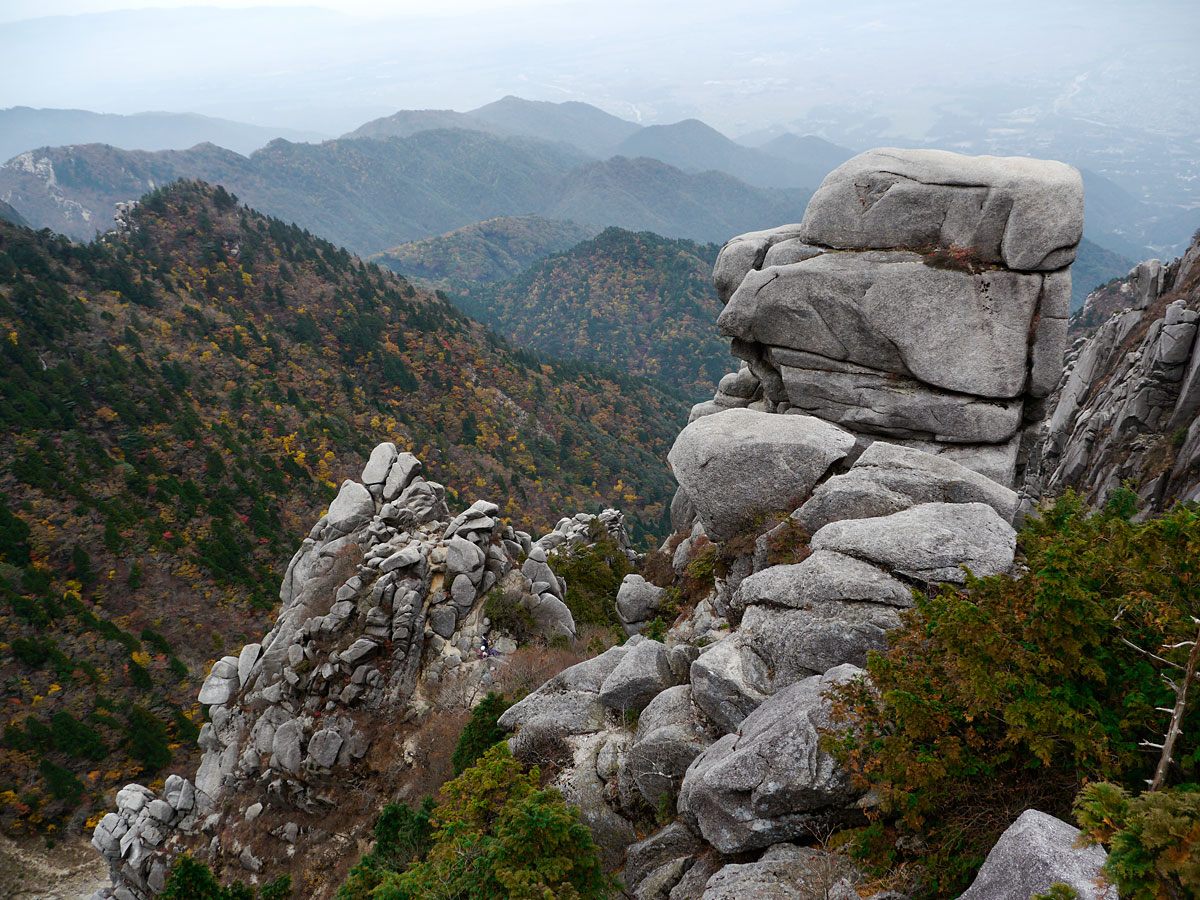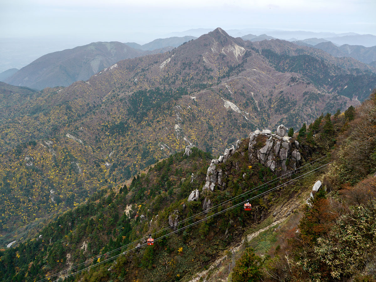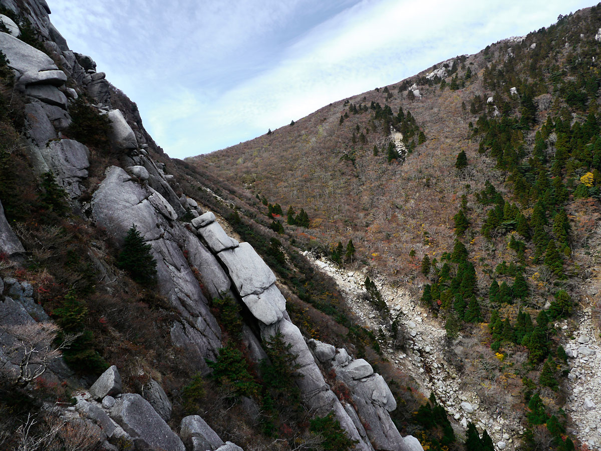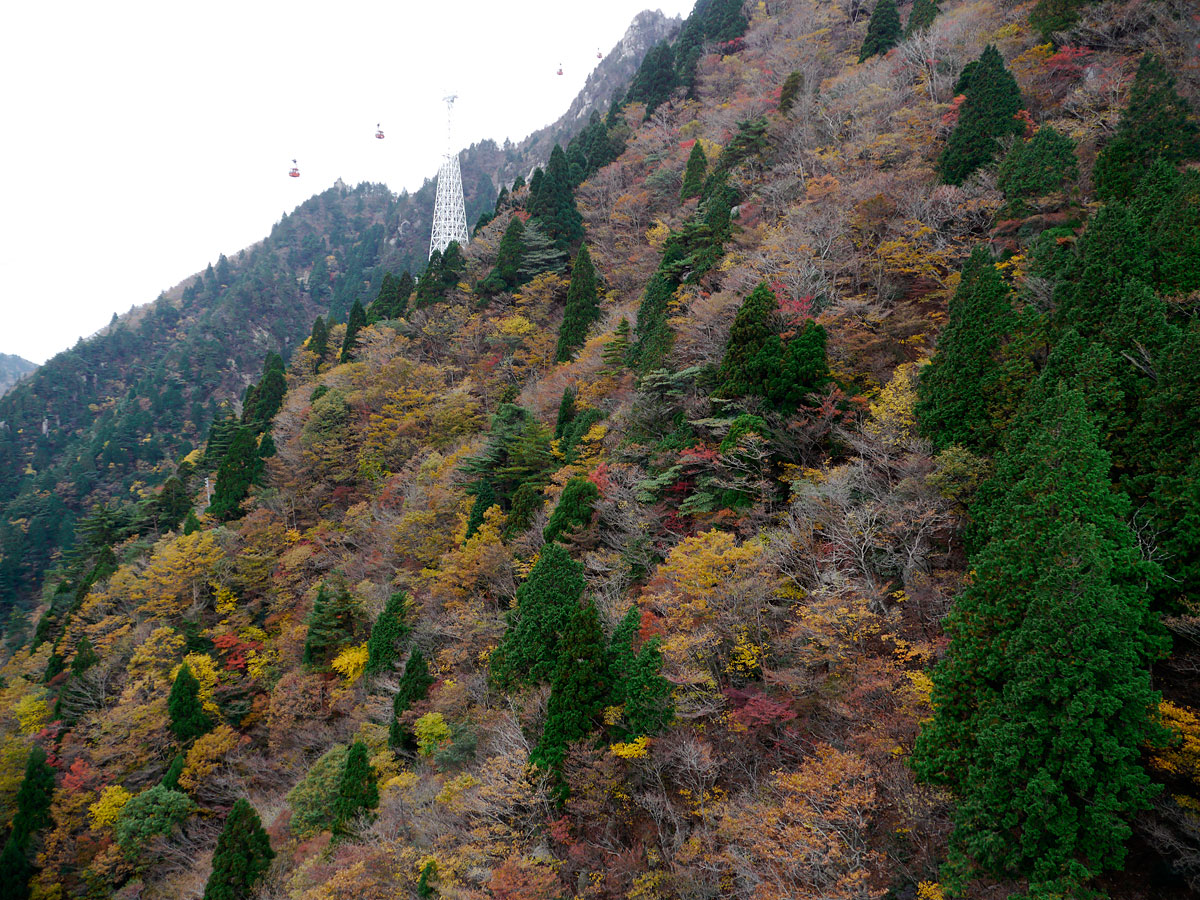 P1 まで上がりザックを降ろして大休止。山頂遊歩道の散策を楽しむ観光客の声が聞こえてきた。富山のI&Nさんもこちらに来たようだ。初めての御在所ということで、帰路は展望より中登山道を進めた。 さて山上公園まであがり、I&Nさんと別れ紅葉を楽しみながらのんびりと中道を下った。 展望のいい人気コースで、挨拶が忙しかった。