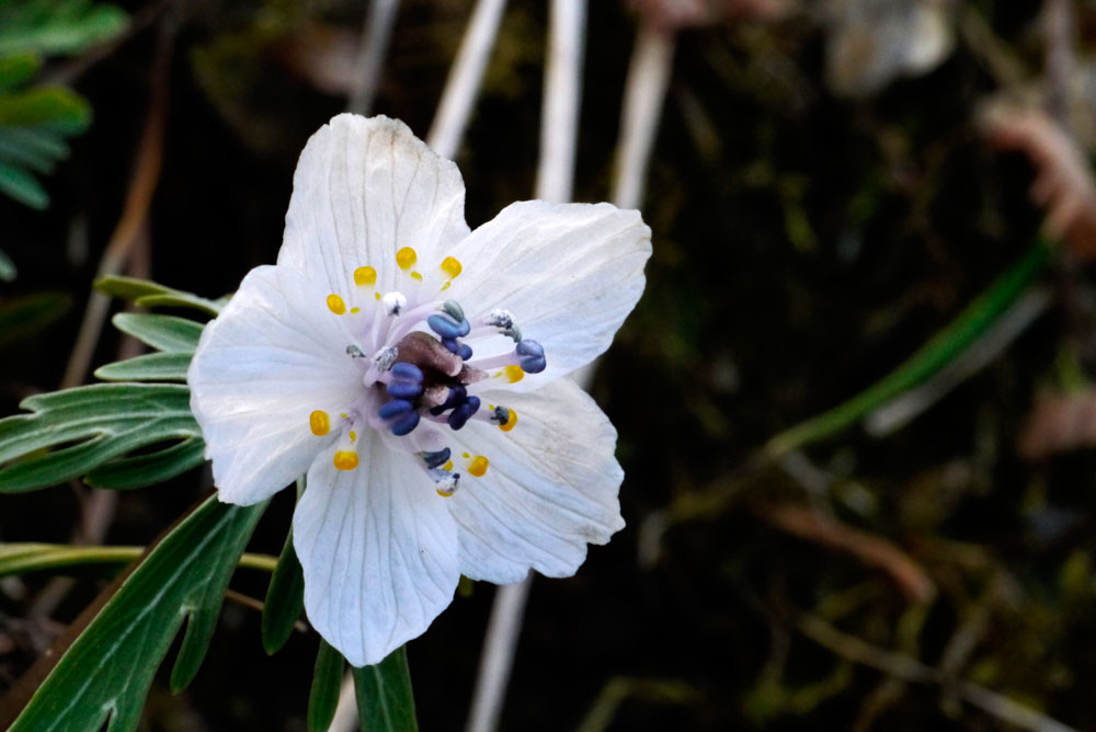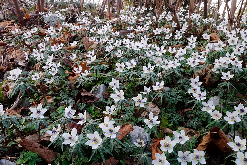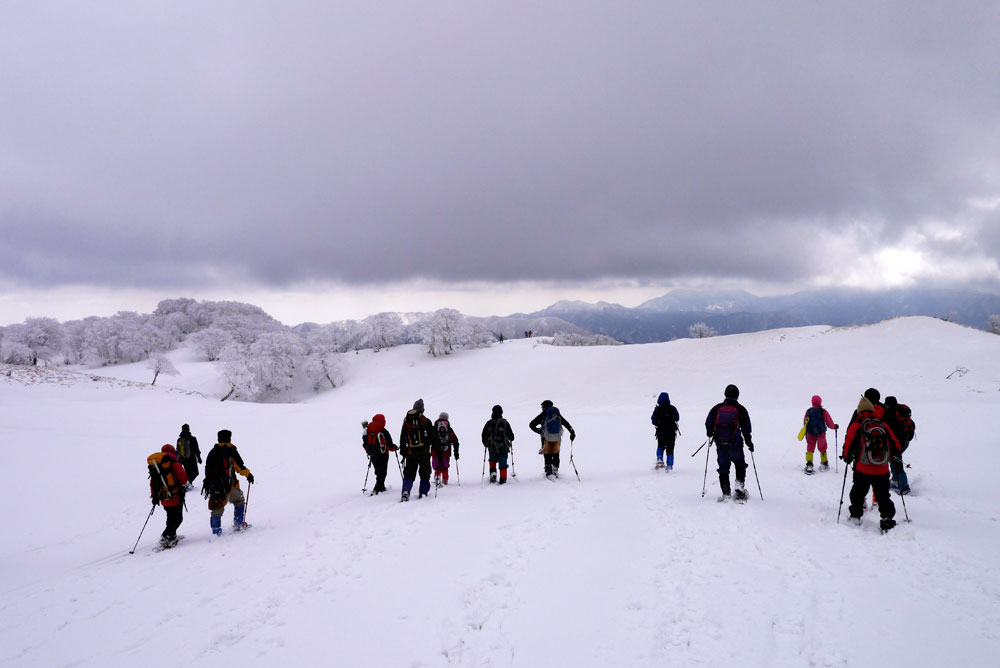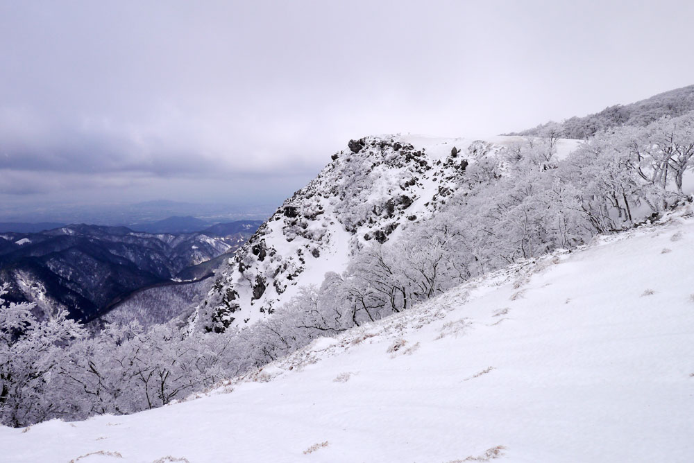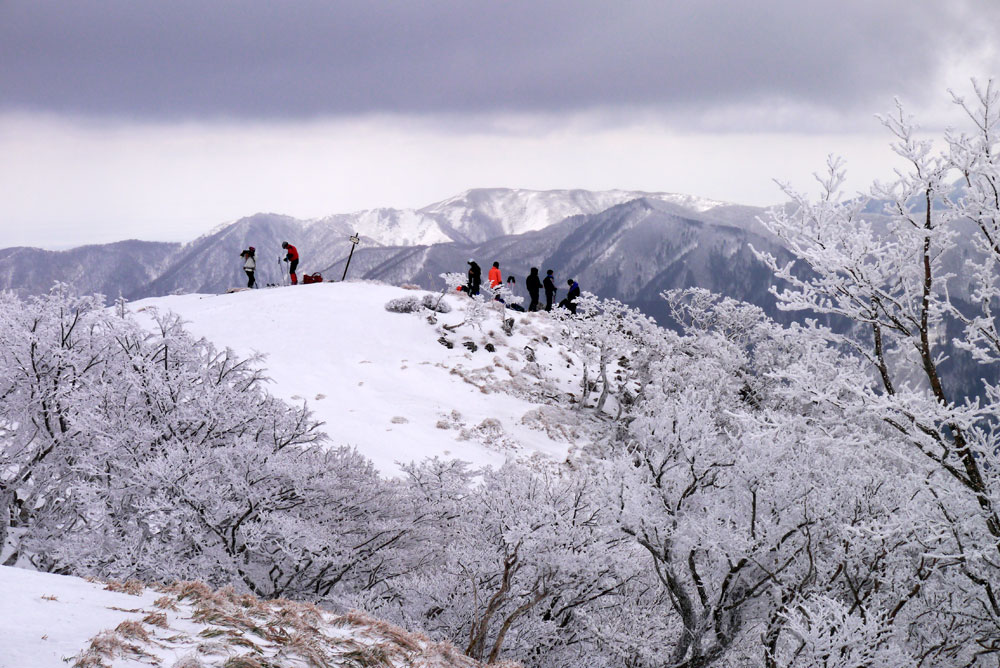 プロローグ 雪と格闘しながらの捜索活動が思い出される。あれから一年、1回忌登山ということで、Nさんの関係者や捜索に従事した人たちが集まった。昨年は週末ごとに寒波がやってきて、吹雪の中の捜索が多く、青空はあまり見られなかったことを思い出す。今日は寒波の影響が残っていたが、青空がほほえんでくれた。樹氷もすばらしかった。大勢がやってきたのでNさんもびっくりしたことだろう。 前日からの参加者は,ルート整備後,犬帰し橋手前で野営したようだ。当日参加者は6時30分に山口ゲートに集合した。途中合流を含めると総勢40人になった。こんなに大勢のパーティ登山は初めての経験となった。 コグルミ谷右岸尾根 本日の行程は,コグルミ谷右岸尾根を使いボタンブチを往復するというもの。コグルミ谷右岸尾根への取付きはいくつかあるが,今回は,F学園とNさん関係の初級者が同行するので,比較的緩やかな枝尾根を利用するよう配慮されていた。取り付いてみるここれはなかなか歩きやすいルートだった。 寒気 昨日からオホーツクまで進んだ台風並みの低気圧が猛威をふるい,北海道は大変な暴風雪になり,車に閉じ込められたり,低体温症になったりする死亡事故が起きている。その影響で御池岳も冬型となり,積雪はそれほど多くはないが,気温が低いためにさらっとした雪が尾根についていた。 カタクリ峠 適度に休憩を入れ取り付きから約1時間20分でカタクリ峠に到着した。昨年の捜索では何度この峠を通過したことだろうか。断片的に記憶が蘇ってきた。この辺りから積雪が増し,スノーシューやワカンの装着指示が出た。 真の谷 ノーマルルートで進み,約40分で真の谷の分岐に到着。ここから丸山のコルまでの登りが本日の踏ん張りどころだ。約50分で登って小休止。Nさん関係者の方々に先にボタンブチに降りてもらい静かな雰囲気で慰霊してもらった。後で我々がボタンブチに集合した。風も弱まり,白銀に輝く奥の平の急稜と青空と樹氷がきれいだった。2週間前に訪れているが,今回は慰霊登山ということでしんみりとした気持ちになった。 Nさんが発見された尾根を見下ろすたびに,Nさんの当日の行動を推測してしまう。確かな情報が得られないので推測のまま課題として残っている。滑落なのか道迷いなのか,それとも他に原因があるのか,いくら考えても推測の域を出ない。 ボタンブチで30分過ごし丸山のコルへ戻り昼食休憩になった。ゆったりとした時間が過ぎていった。帰路はシリセードを交えながら1時間20分で下り,イベントが終了した。完 節分草 帰りにセツブンソウを見に行った。今年は花付きも良く、ちょうど満開になっていた。これから4月上旬にかけて山頂間で咲き上がっていくことだろう。今年も花の季節が始まった。