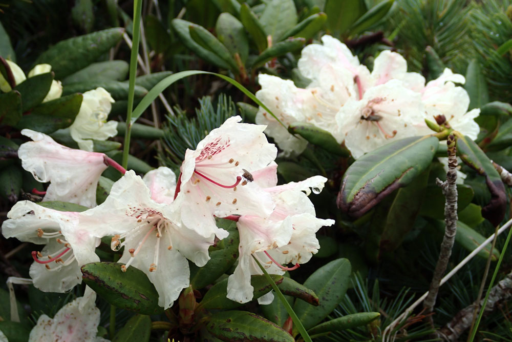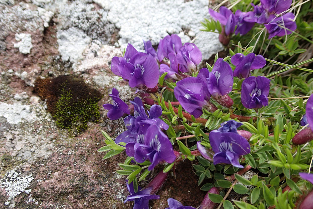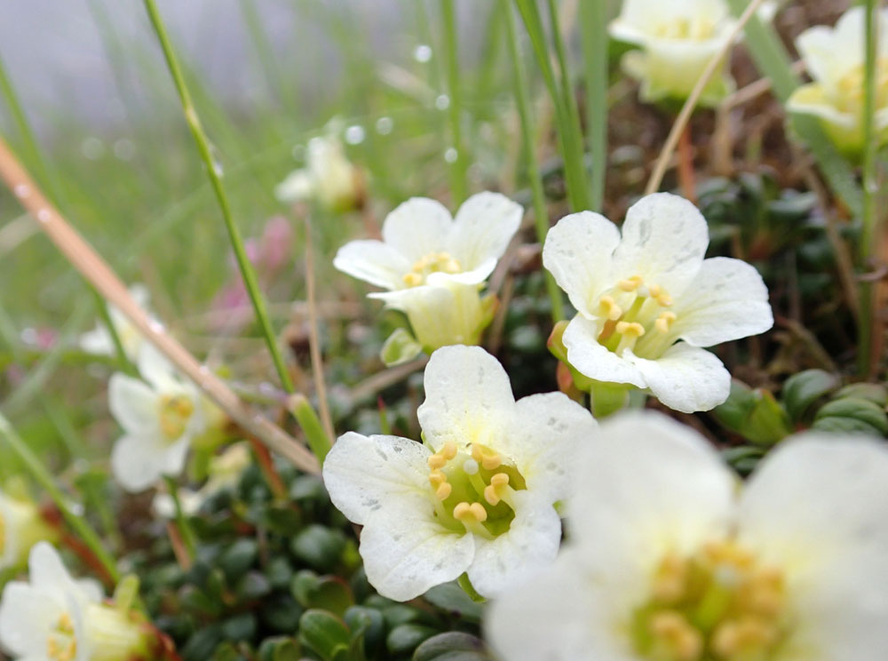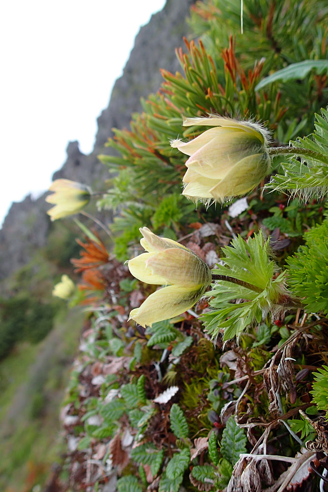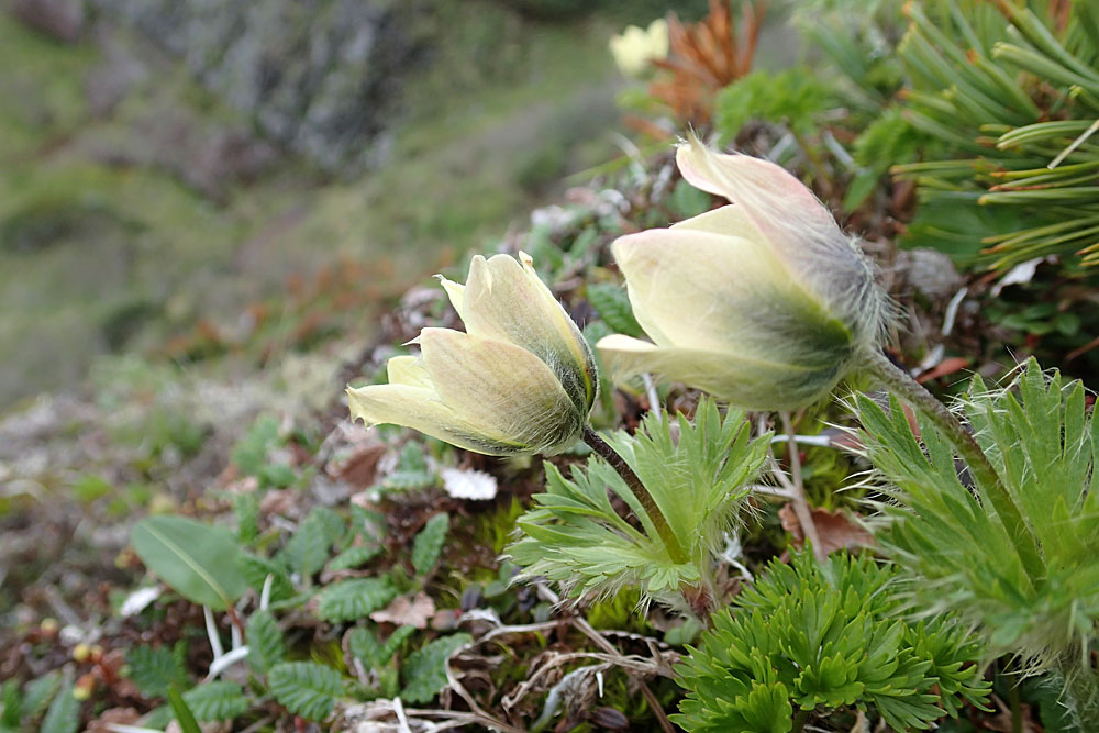 八ヶ岳を彩る初夏の草花 積雪量の少ない八ヶ岳はアルプスに先駆け、高山植物が色とりどりの花を開き始める。とりわけ6月中旬から花の見頃となるツクモグサは希少な植物で、八ヶ岳でも限られた場所でしか見られなお。この時期になるとこの花が気になり、今年はどうしようかと思っていたが、梅雨の晴れ間が期待できそうだったので、小同心のクライミングをかねて出かけてみた。今回の山行が6月下旬になったので、夏の花が咲き始めていて、チョウノスケソウ、ミヤマオダマイ、イワウメ、オヤマノエンドウ、ウルップソウなど、ツクモグサ以外にもたくさんの花を楽しむことができた。