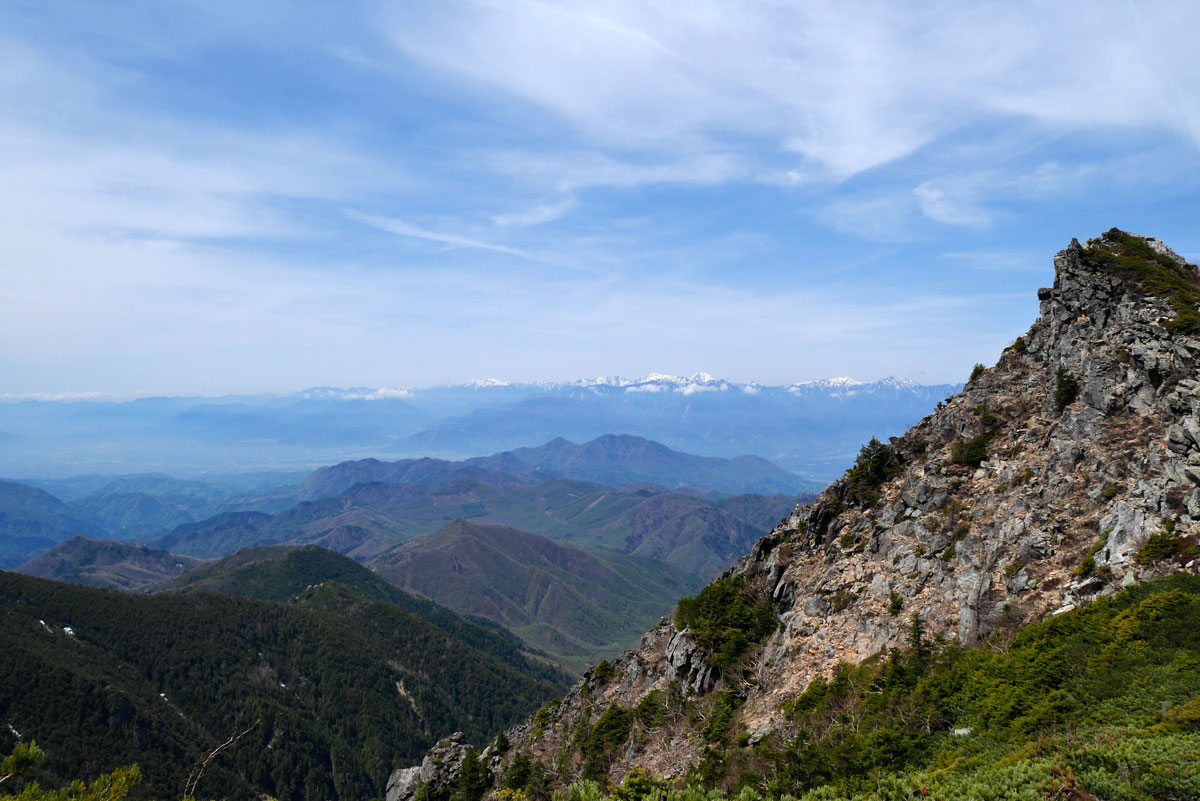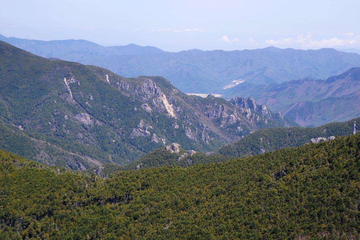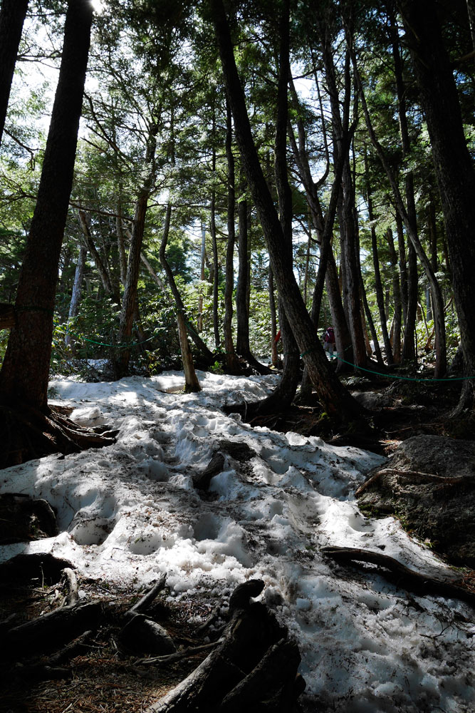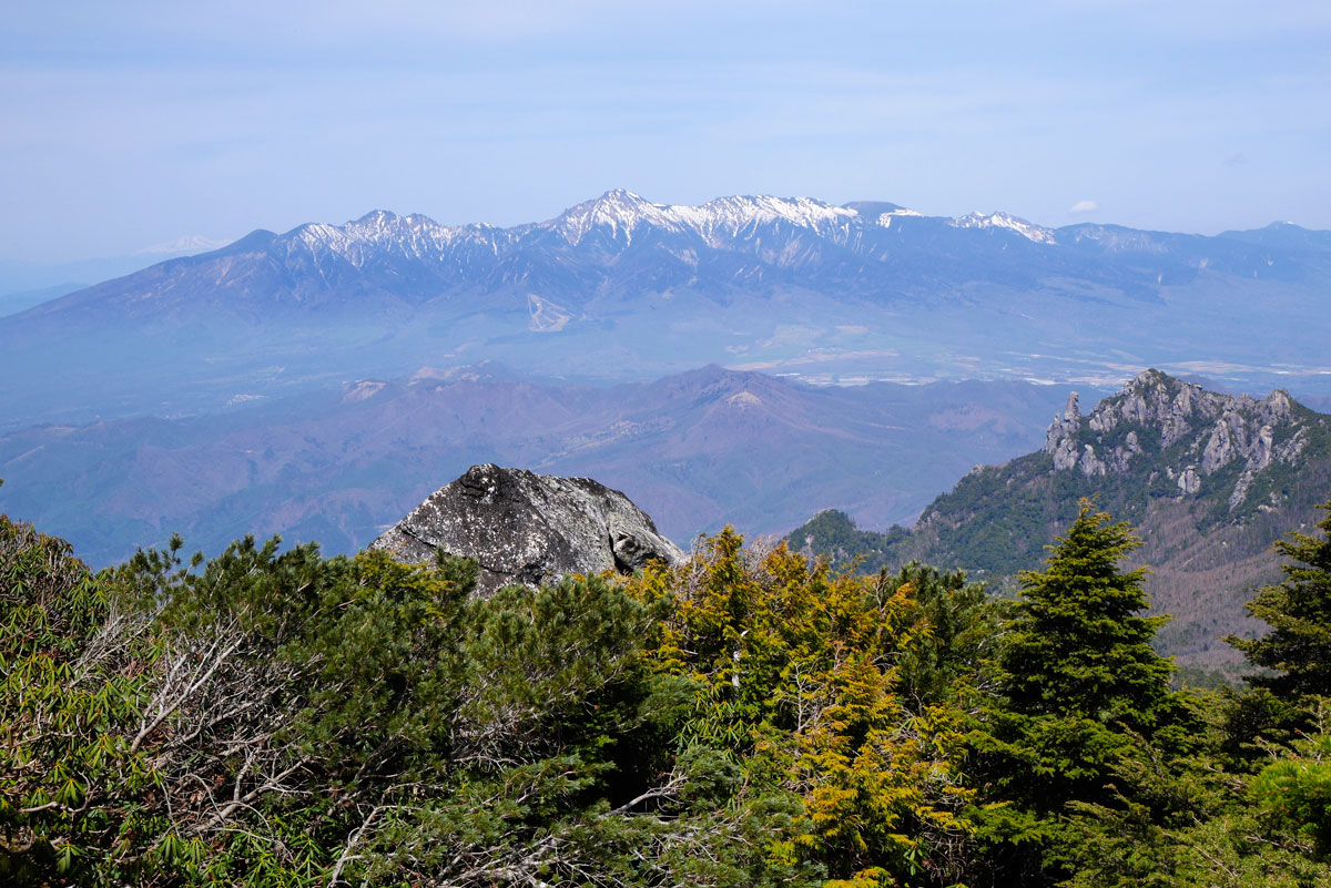 | ページ1 | ページ2 | プロローグ 初日のクライミングが充実したので二日目は歩きに切り替えた。山の楽しみ方は多様だ。クライミングと歩きの基本をしっかりとこなして、夏のアルパインに備えたい。奥秩父へはクライミングで良く通っているが瑞籬山も金峰山も小川山もピークを踏んでいないので、とりあえず金峰山へ行くことにした。 林道 金峰山は百名山に名を連ね人気の山岳だが、廻り目平からの登山者は少ないようだ。この日は我々を含め数パーティーだった。朝食を済ませ出発したのは6時を過ぎていた。今日も天気が良く清々しい朝だ。初見のルートなのですべてが真新しい。石俣沢に沿った林道を気持ちよく歩いて林道の終点へ。 八丁平分岐 林道を1時間20分歩き終点に到着。ここで八丁平へ分岐する。ここから山道に入り少し歩くと最終の水場があった。このあたりから傾斜がきつくなり一気に高度を上げていく。コメツガやトウヒなどの針葉樹林は陽射しを避けてくれるので涼しくて気持ちがいい。 2000mまで高度を上げてくると残雪があった。凍り付いているところもあれば踏み抜くところもあり歩きにくかった。途中に2度ほど休憩を挟みちょうど2時間で金峰山小屋に到着した。黒のレトリバーが出迎えてくれた。小屋の裏手の大きな岩に登ると展望が良かった。 小屋から山頂へは直登すれば20分ほどだが、周回コースがあるのでそれを行くことにした。まずはトラバース道から稜線をめざす。このトラバース道、雪があって歩きにくかった。稜線に出ると多くの登山者と行き交った。登山者の大半は八丁平からのようだ。 稜線に出ると森林限界になり、ハイマツ帯は遮るものがなく展望がいいが、高山のために息が切れる。分岐から少し八丁平方面に下ってから山頂を目指した。やはりこちらのコースの方が稜線コースで展望がいい。 五丈岩 11時に山頂に到着した。山頂よりも五丈岩の方が存在感があった。実に展望の良いところだ。五丈岩は地元神社の御神体だそうだ。うさぎが登攀を試みるがリーチがなく断念。私が登りスリングで引き上げた。東に秩父の山々、西に八ヶ岳や北アルプスが一望できた。 | ページ1 | ページ2 | |