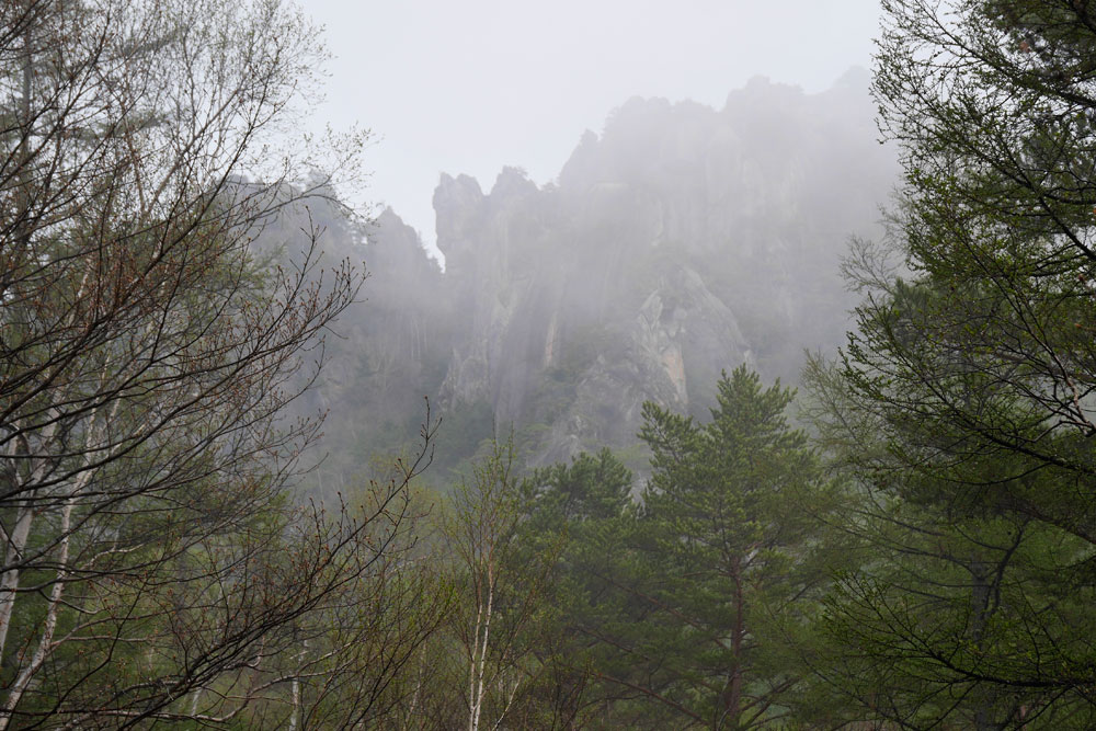 | ページ1 | ページ2 | 帰路 帰路は八丁平経由も考えたが欲張らず、来た道を戻ることにした。小屋まで下ってくると瑞籬でヘリがホバリングしているのが見えた。大ヤスリ岩の周辺で待機しているように見えた。遭難が起こったのだろうか、昨年は3回瑞籬の岩場に通ったので気になった。 3日目 5月4日 雨 さて3日目はショートルートを予定していたが夜半から雨になり、夜が明けても上がる気配がないので早々に撤退を決めた。朝食を済ませ、小屋の営業の始まる7時に精算(一人一日700円)を済ませ帰路についた。 | ページ1 | ページ2 | |