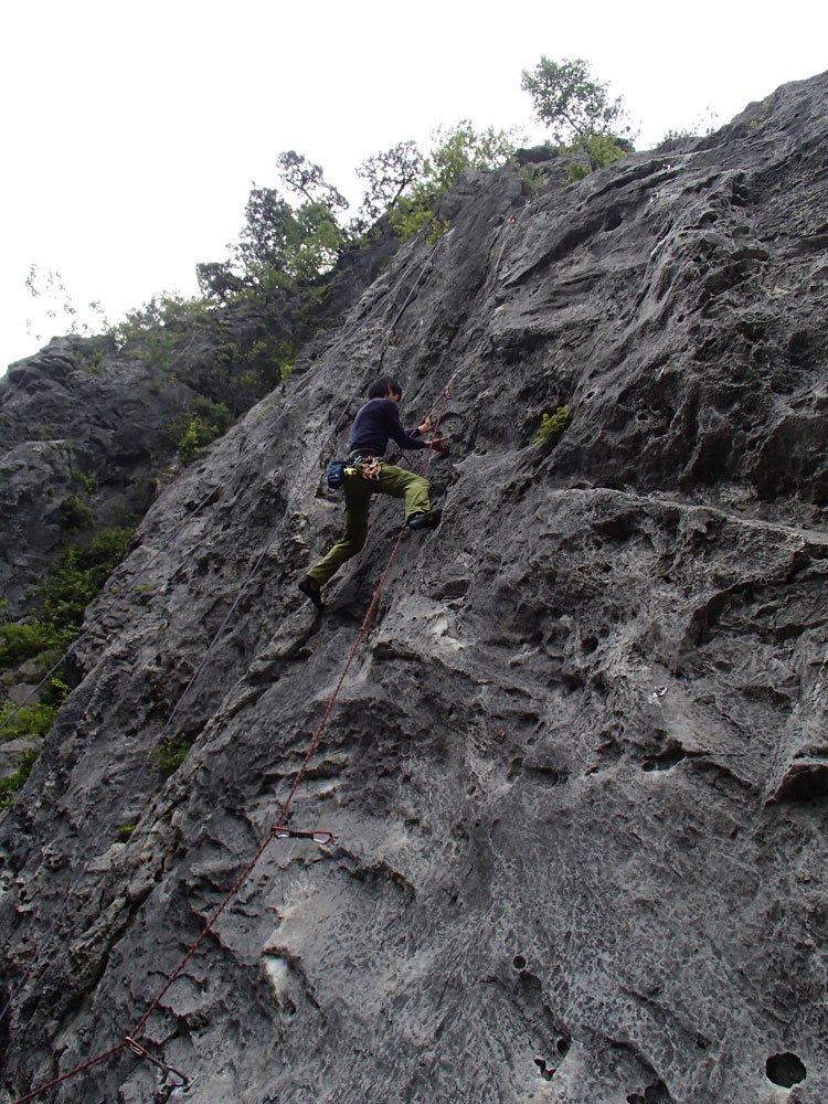 プロローグ 時間がなかったのでアプローチのいい椿岩で岩トレ。週末で天気もいいので椿岩は賑わっていた。我々は重役出勤。14時30分クライミング開始。 マタマタ5.10aでウォームアップ 燃えよ!ドラゴンズ5.10c マリエンタール 5.10b 棠記飯店5.10b |