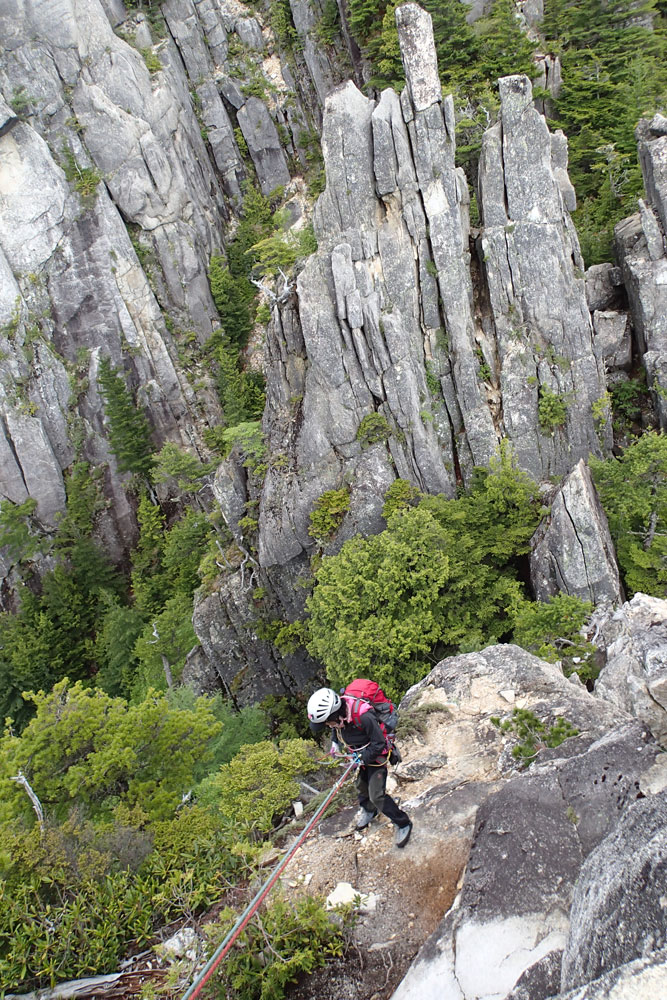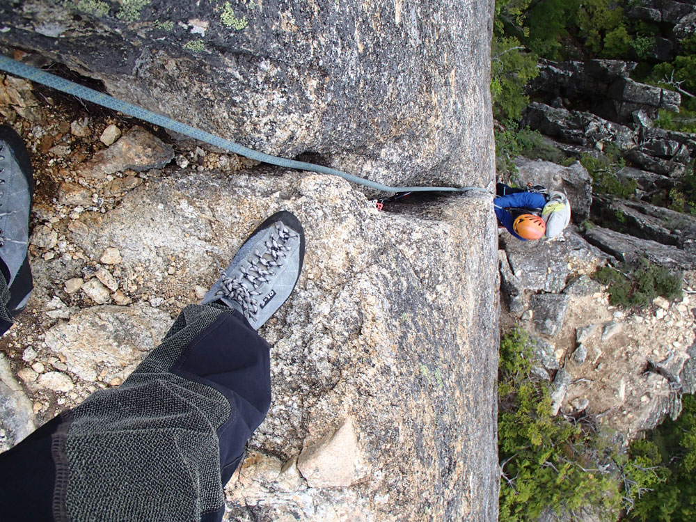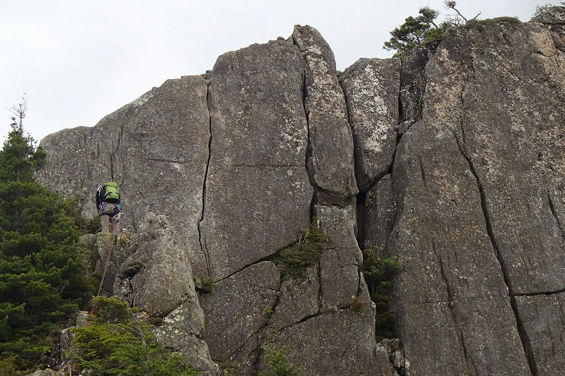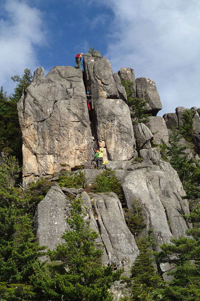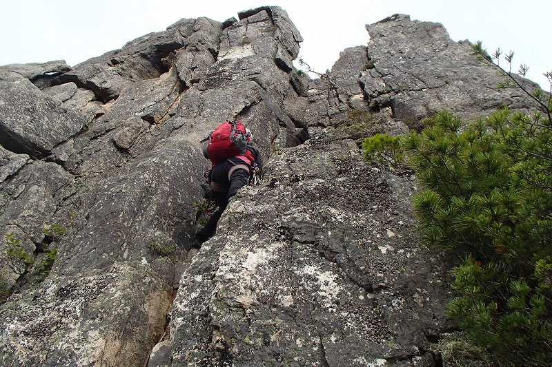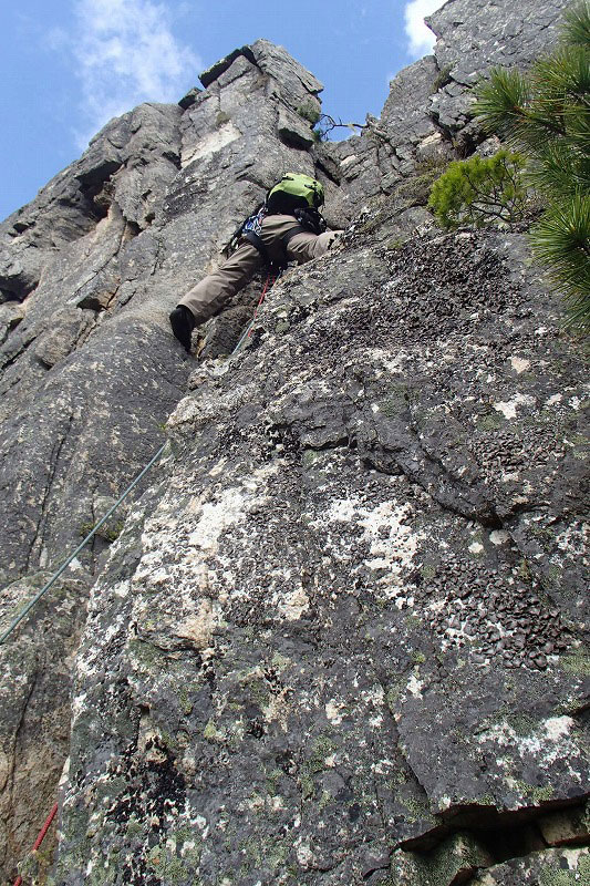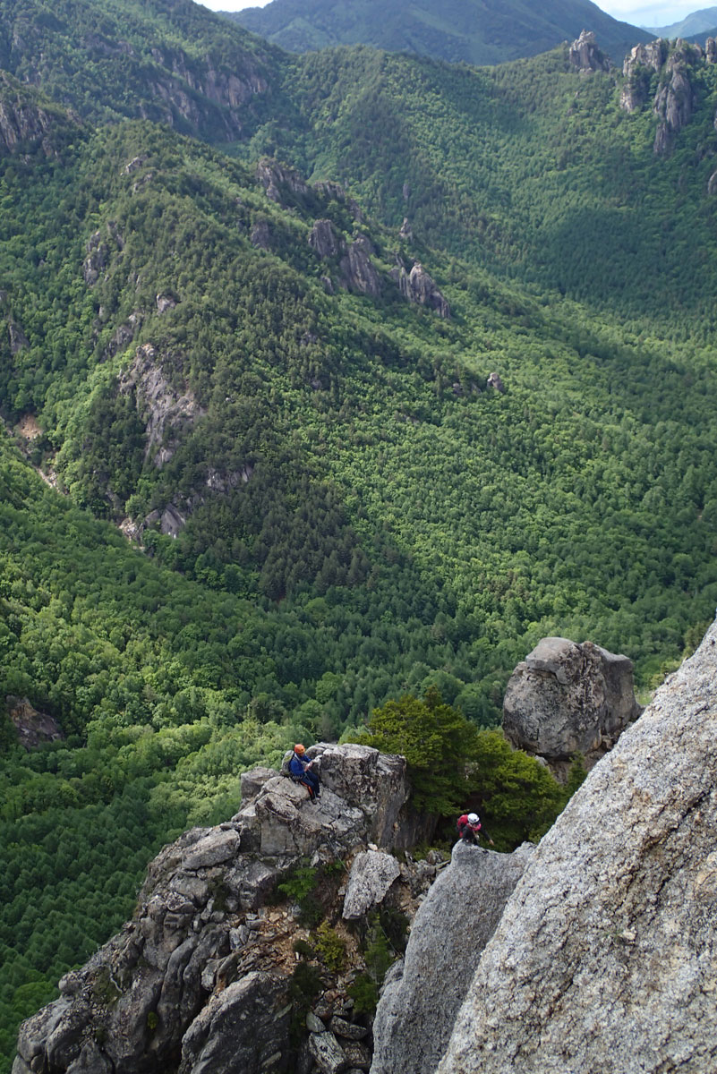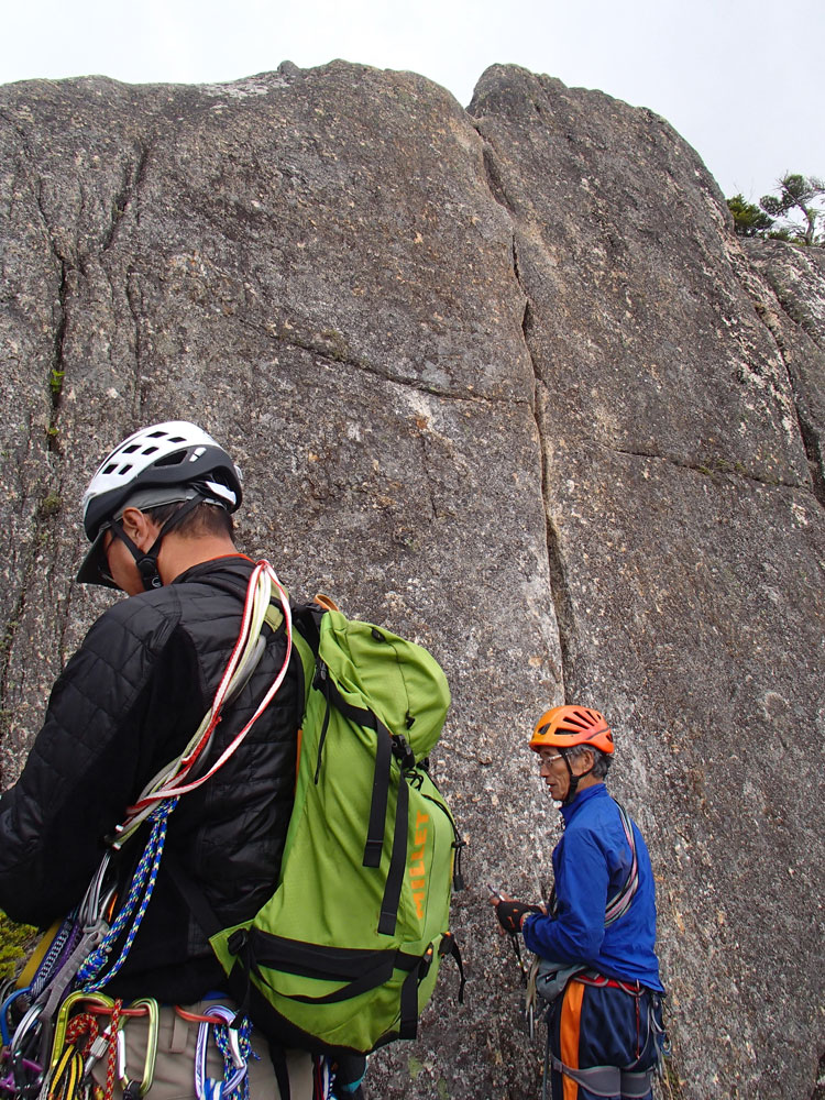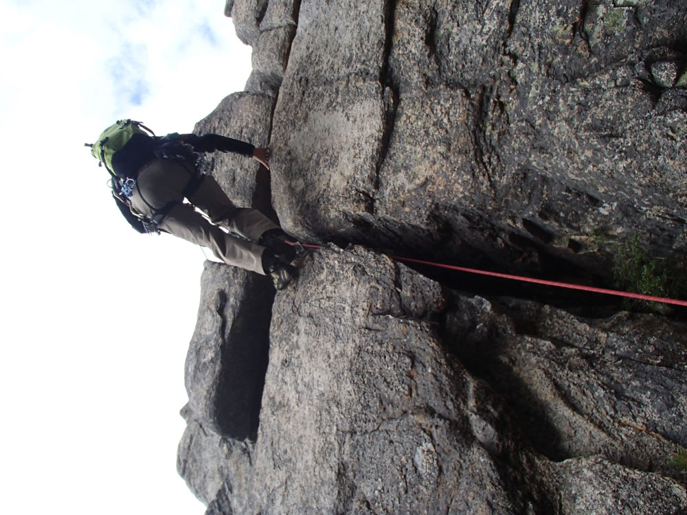 | ページ1 | ページ2 | 12ピッチ目 5.5 30m 少し下りリッジを辿ってクラックの基部へ 13ピッチ目 5.7 美しいハンドクラック 14ピッチ目 20m 懸垂下降 15ピッチ目 5.5 25m リッジからぼろいチムニー。 16ピッチ目 10m 懸垂下降。少し歩いてコルへ。ここから下山した。 | ページ1 | ページ2 | |