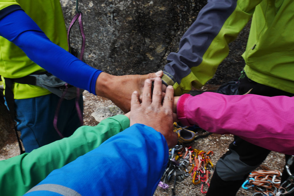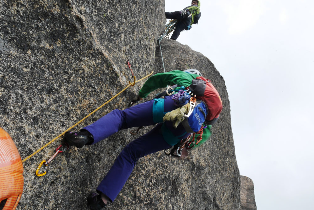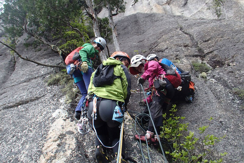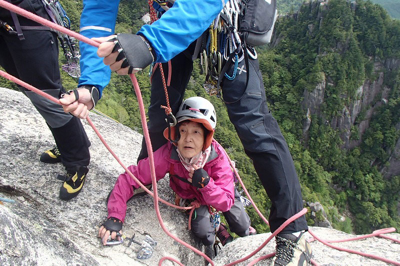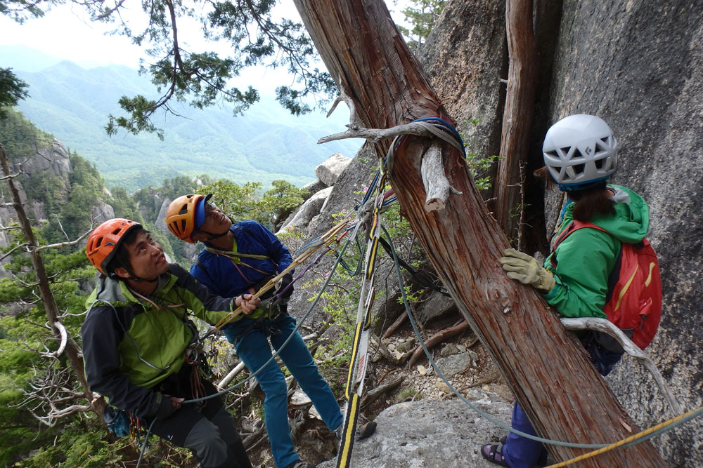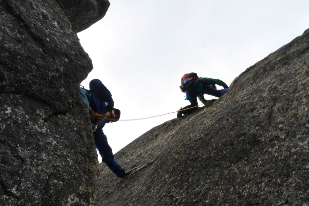 右足のジャムがぬけやすいところがあるみたいで、たくさんとしんくんがぬけた。さて核心はこのクラックではない。ピナクルの頭からはブリッジングでフェースに移るが、ここがむずかしい。