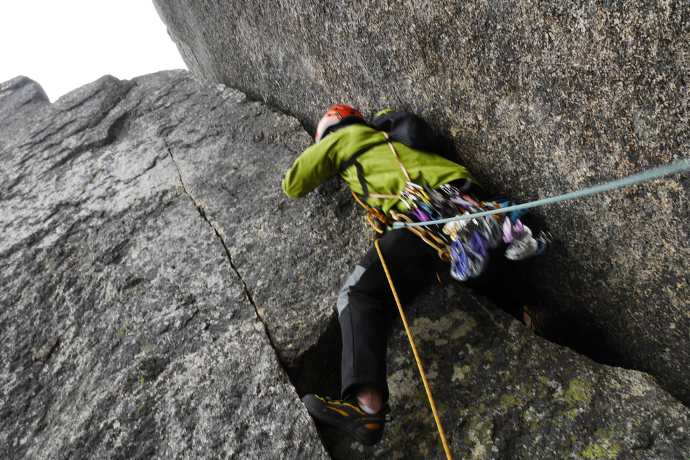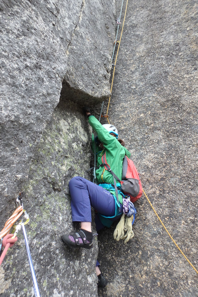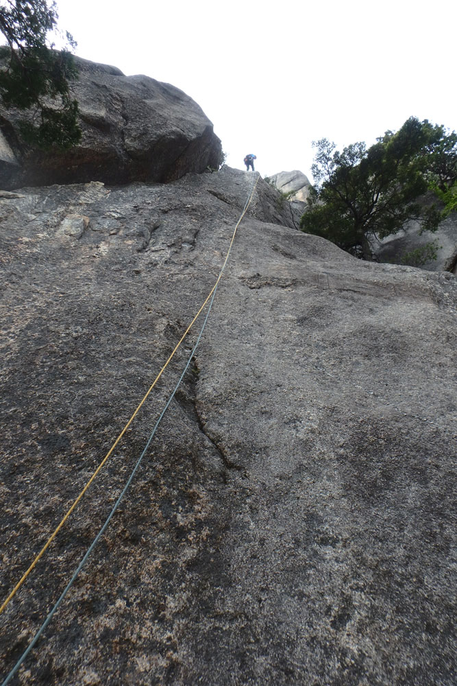 フェイスを抜けると最後にクラックが待っている。ここで#5が活躍する。ジャムはきなかいが、傾斜が緩むのでなんとかなる。