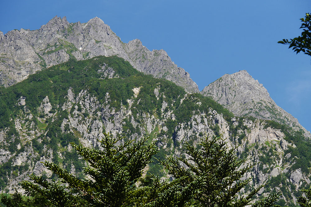 プロローグ 北穗高岳滝谷ドームは過去に二度挑戦しているが、悪天のため途中撤退していた。毎年夏には計画に上げてきたものの、機会に恵まれず3年が経過していた。そして今年、仲間と機会と天候にに恵まれアタックすることになった。「鳥も通わぬ」と形容される滝谷だが、実際にもろく、縦走路からに見てみると、登攀対象となる岐阜県側はハイマツも育たないほど荒々しく、険しい。この3000m級の岩壁はクライマーを魅了し、多くのルートが開かれてきた。今もアルパインクライマーによって登り継がれていて、今回も確認しただけで、第一尾根、クラック尾根、中央稜、第4尾根にそれぞれパーティーが入っていた。 アプローチ 我々は上高地から入山したが、カトリーヌさんたちは新穂から白出で入山した。0時過ぎに沢渡に入りタクシーで上高地入りし、6時に東京から来る村上さんと合流した。昨日の11日は、初めての「山の日」ということで、上高地のバスターミナルで皇太子を迎え大々的な式典があったようだ。当初11日から計画していたが、一日ずらせてよかったと思った。 上高地 予定通り6時に村上さんと合流し、上高地を出発した。上高地は早朝ということもあり、観光客はまだ入っておらず、大半が登山者だった。 徳沢あたりまで歩いてくると徐々にザックの重みが肩にかかってくる。ザックには余計な荷物はいい際はいっていないがそれでも17キロになっている。内訳は、テント装備などの生活用具と登攀用具が半々だと思う。生活用品は今回、食料など現地で調達できるものは極力持たないようにして軽減に努めたが、当ハングだけは減らすことができない。小屋泊にすれば、生活部分を減らすことができるが、経費節約ということもあり、担げるうちは担ごうと思っている。 徳沢を過ぎると前穂が見えてくる。今日はしんくんとたばたさんが奥又へ入っているようなので、今頃はどこを歩いているだろうかと思いながら前穂を見上げながら歩いた。 横尾 上高地から横尾まで約11キロあり、この間に明神と徳沢があり、約4キロで休憩していたが最近は30分に一度休憩しないときつくなってきた。初日は涸沢までの計画だったので、急ぐこともないのだが。 横尾を過ぎると左手に屏風岩が見えてくる。ここは9月にやる予定なので特に気になる岩壁だ。岩子やあたりで渡渉するようなので、河原を見に降りてみた。 本谷橋 横尾を過ぎ本谷は氏まで来るといよいよ本格的な登山道となる。夏の日差しは厳しく、重荷のザックでの登りはきびしい。幸い樹林がしばらく続き、木陰になるのがせめてもの救い。何度も小休止を挟みながら高度を稼いでいった。 涸沢 14時過ぎ、涸沢に到着した。テント場は盛況で、少しでのいい条件をと、物件を物色し、二張りとなり合わせの場所を選択した。ご存じのようにここのテン場は岩の上なので、少しでも快適な場所を探すのに苦労する。テントの底を痛めたり、エアマットがパンクしたり。小屋泊もいいが、どちらの小屋もこの時期は混雑している。テント設営後、小屋でカレーライスを注文し昼食にした。 カトリーヌさん達は一気に穂高小屋まで上がったようだが、我々はここまでくるのがやっと。ゆとりの時間を休憩に充てた。少しでも標高が低い方が身体を休められる。17時過ぎに最近定番となった、サトウのごはんチャーハンでシンプルな夕食。夕食後はミニ三脚をつかって夜景の撮影。星空を期待したがガスが多くて期待通りに撮影ができなかった。 | 8/12 | 8/13 | 8/13-2 | 8/13-3 | 8/14 | 8/14-2 | |