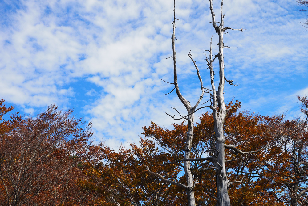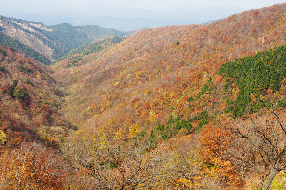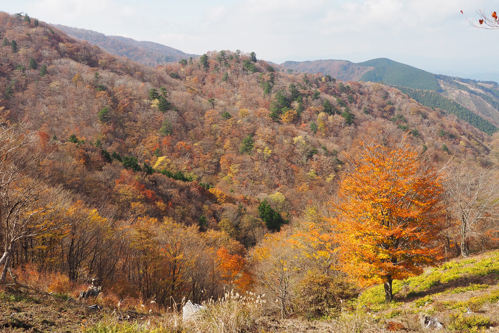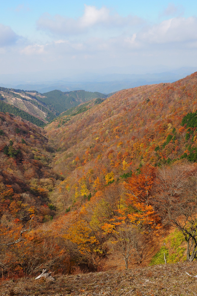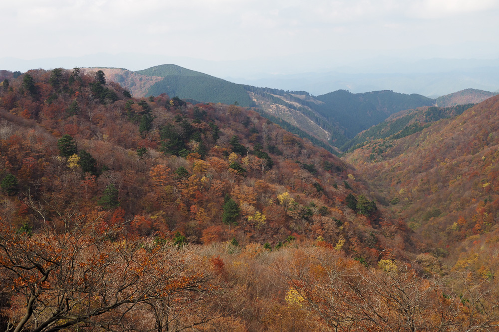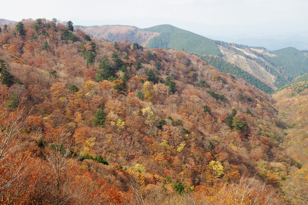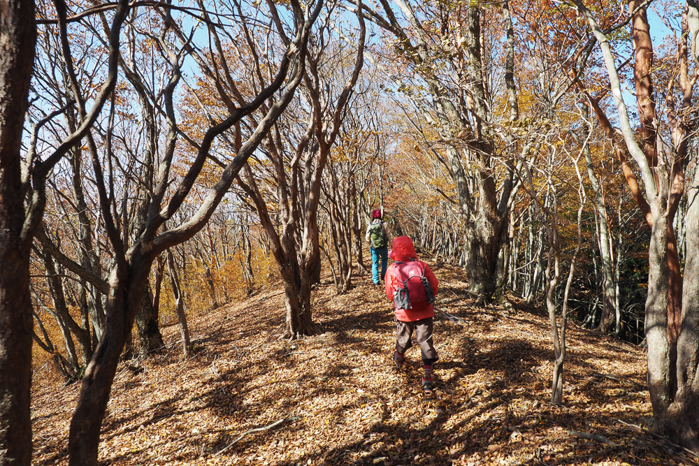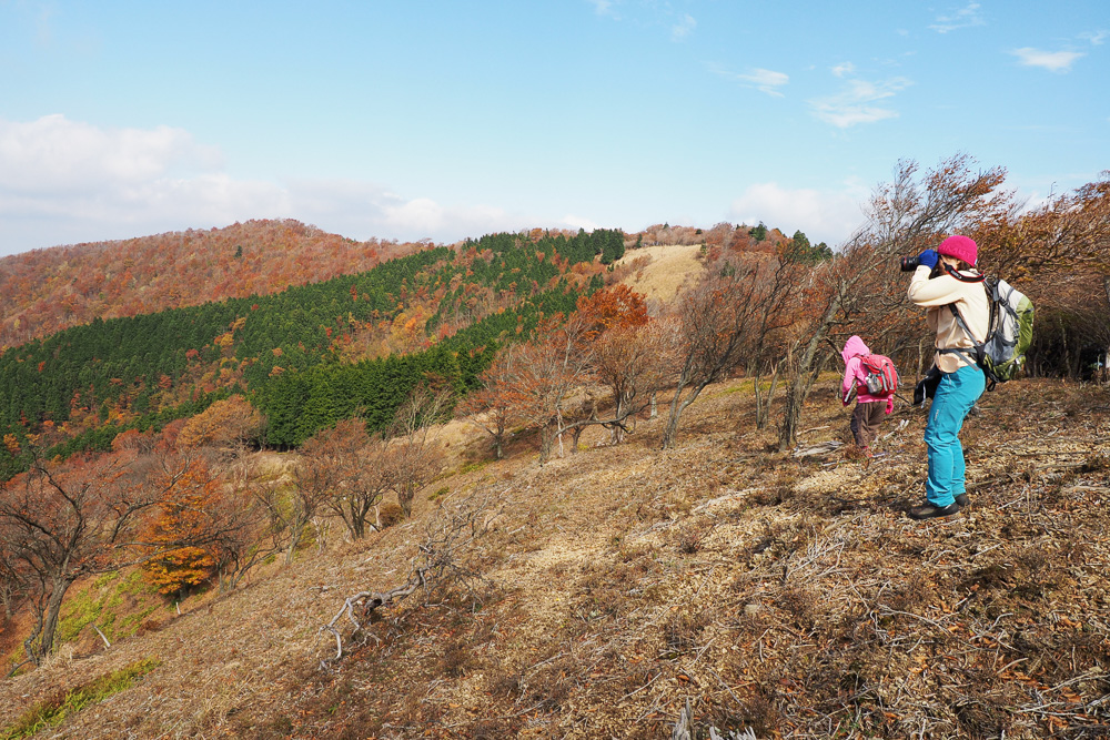 ■赤ゾレ山・木梶山(台高) 〜中腹の紅葉を狙ってルートをチョイス〜 【日時】 2017年11月3日 No.1087 【メンバー】隊長、田端、うさぎ 【行程】 キワラ滝駐車場(7:25)〜木梶登山口(8:50)〜赤ゾレ山北東尾根〜赤ゾレ山(10:30)〜馬掛ケ辻(11:00)〜(12:00)木梶山(12:20)〜登山口(13:00)〜駐車場(14:00)