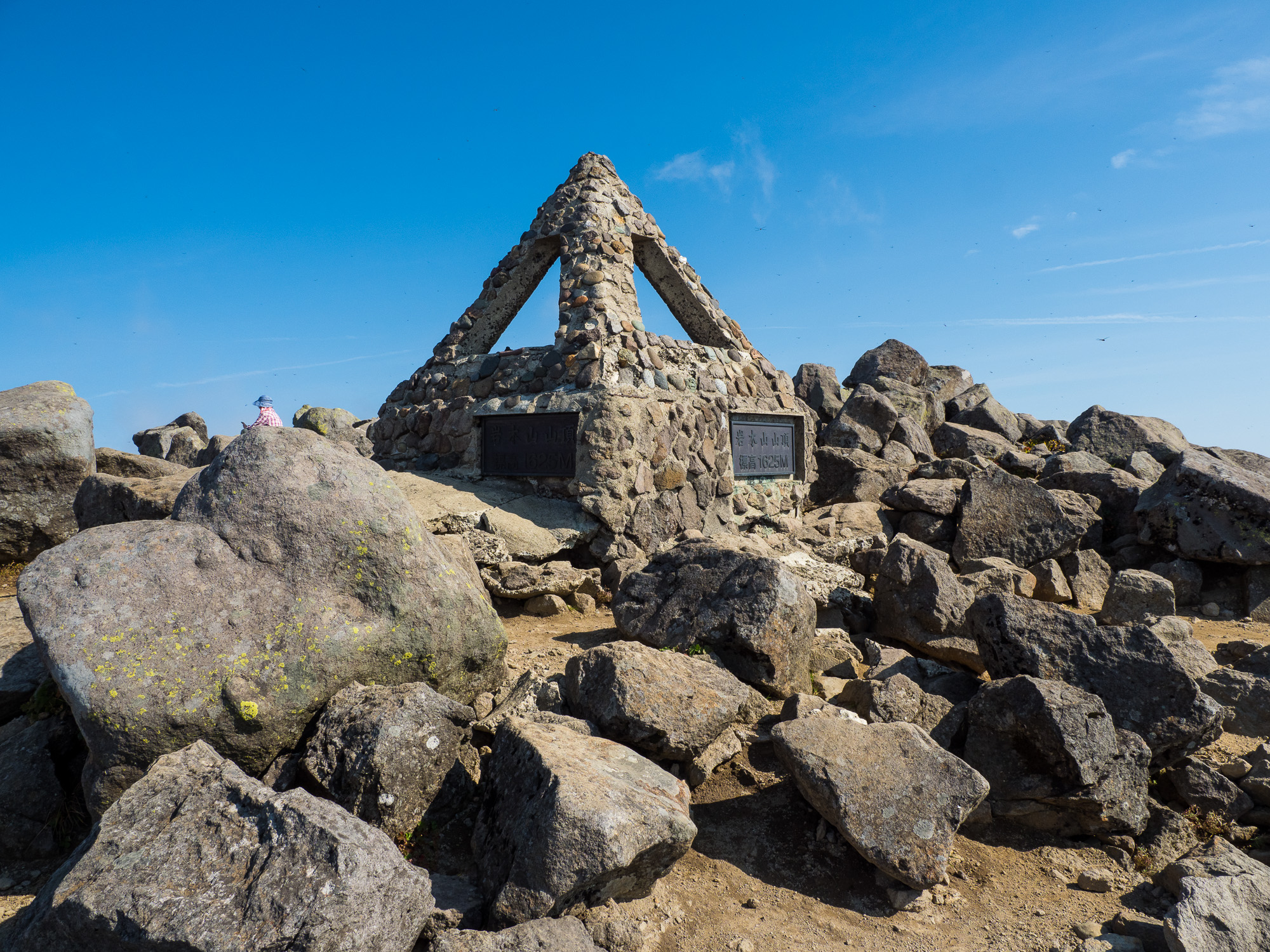 | ページ1 | ページ2 | 鳳鳴ヒュッテ ここを過ぎると登山者が急に多くなってきた。スカイラインとゴンドラを乗り継いで登ってきた、登山者と言うよりも観光客といった方が適切なのかもしれない。ゴツゴツした岩のルートになり、30分で山頂に到着した。