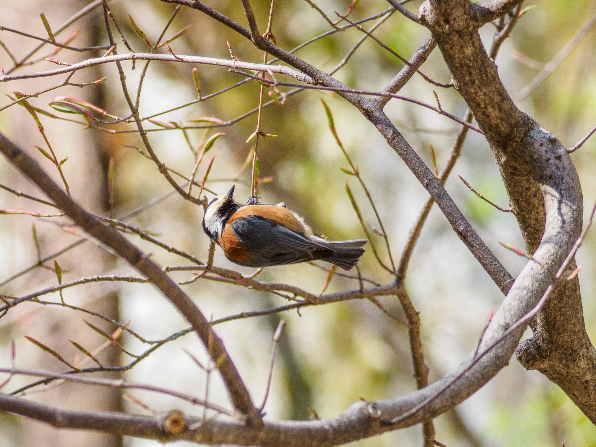 「フィー フィー フィー フィー」と口笛のような鳴き声だ。多分ゴジュウカラだ。近そうなのでチャンスかなと思っていると遠くの木の枝にとまっていた。下向きに木を這いだしたので間違いなし。下向きに歩けのはこの鳥だけだ。留鳥で山地のブナの木のある標高くらいから見られる。レンズは800mmでは長さ足りなかったとりあえず撮影した。ここの写真はPhotoshopの新機能「スーパー解像度」で不足分を補正し、ライトルームで現像処理、トリミングした。