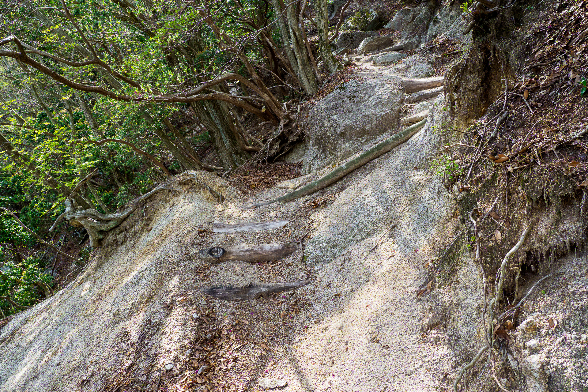 全体的に薄暗い感じのルートで、水場付近が崩壊していてそれを避けるルートがあったがあるきにくかった。鈴鹿国定公園50周年事業で、パンフレットが刷新されこのルートも明記された。それを受け、ルートが整備されたようで、大変歩きやすくなった。道標も随所に設置され歩いていても安心化がある。ルート整備に感謝したい。実はこの鎌尾根ルートは、分県登山ガイド「三重県の山」では、鎌ヶ岳のルートとして紹介している。累積標高が1200m以上になるタフなルートだが、それに見合う充実感が得られるルートだ。
