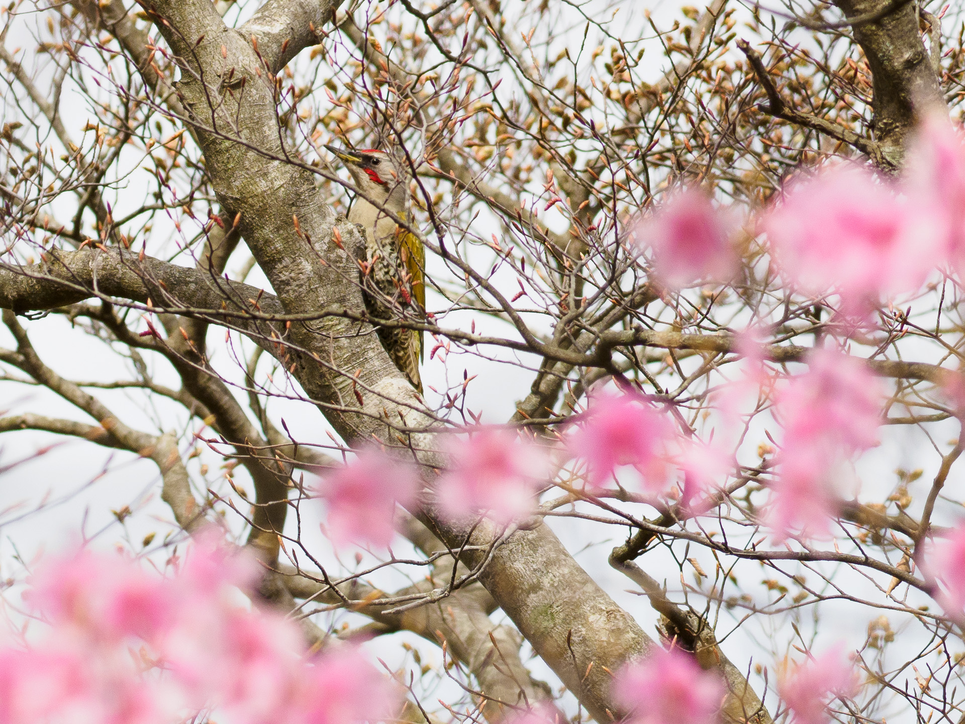 ガイドブック用の必要な撮影は終わったので、のんびりとカズラ谷ルートを下った。しかし今日は、満足のいく野鳥の撮影はできなかったなと思いながら、なにか忘れ物をしたような気持ちで、少し集中力が落ちていた。雲母分岐から少し下るとオオルリの囀りが聞こえた。野鳥の撮影は追いかけては撮影できない。来てもらうのを待つしかない。すると突然、目の前を横切った。近くに止まっていたようで、近づきすぎたようだ。するとアカゲラのような鳴き声が聞こえる、しかも近づいてくる。チャンスかもと思った瞬間、後ろから追い越していき、20m先の木に止まった。瞬間見えたが、赤くなかったのアオゲラだ。もう少し距離を詰めたいが、飛ばれると駄目だ。手前に小枝があるので、フォーカスがそれにとられる。木の幹にフォーカスをロックし撮影開始。手応えを感じたので動画撮影に移行した。チャンスは突然にやってくる。切れかけた集中力が覚醒した。
