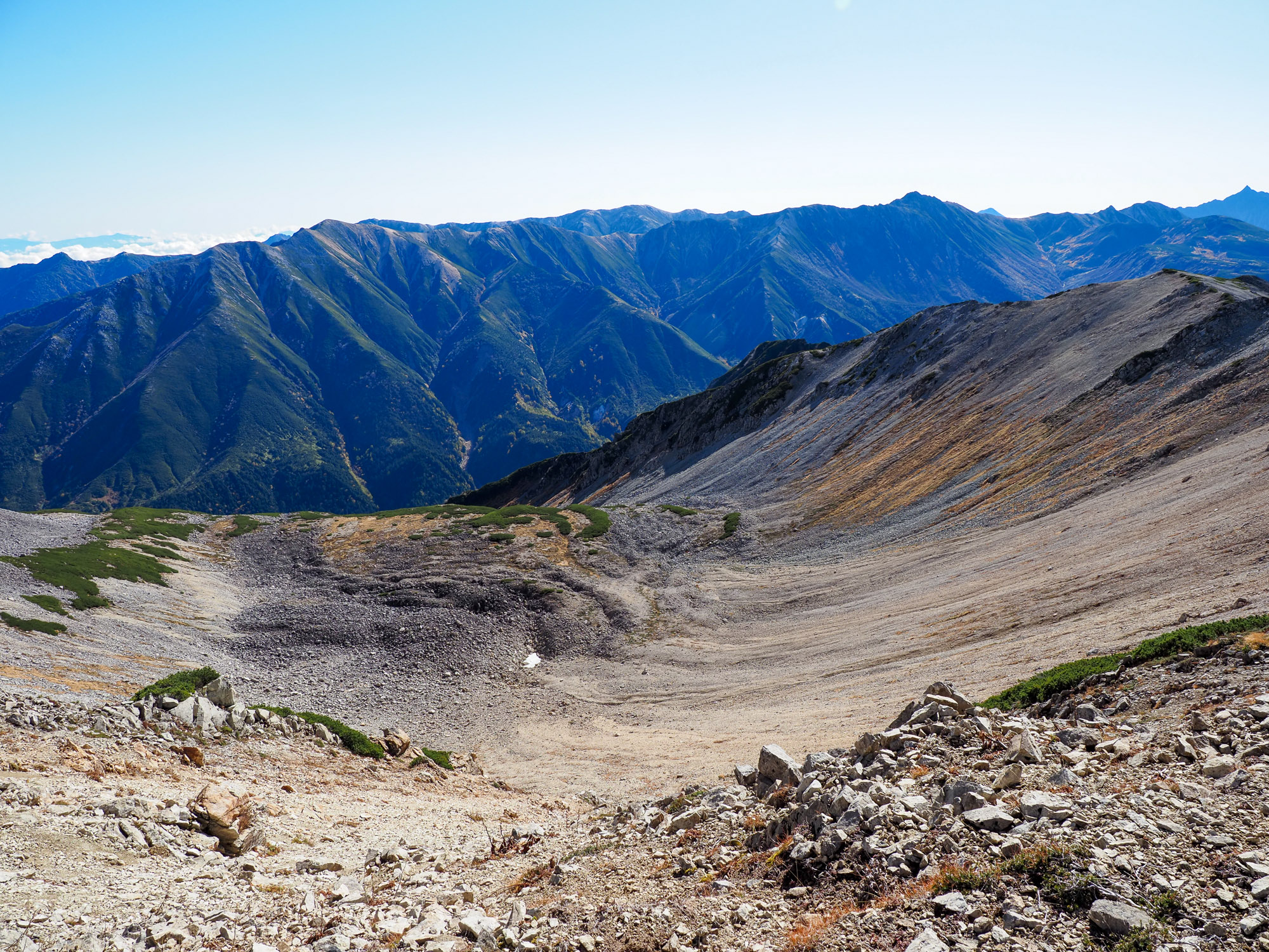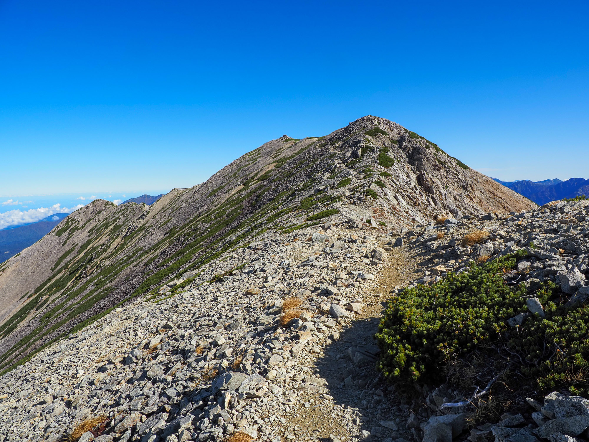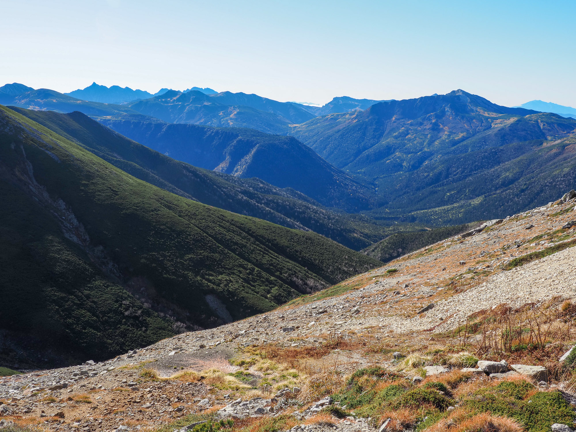 昨夜2:30からの星景撮影が終わり布団に入り目覚めると5:30だった。朝食は6:00からで温かい味噌汁とご飯がうまかった。準備を整え不要な荷物を小屋で預かってもらい6:30に出発した。山頂までのコースタイムは3h20mなので往復後、下山の時間を含めても多少のゆとりがある。しっかりと撮影しながら楽しむことにした。もう一組の二人組は今日、黒部五郎に行くそうなので、薬師は我々だけだった。
