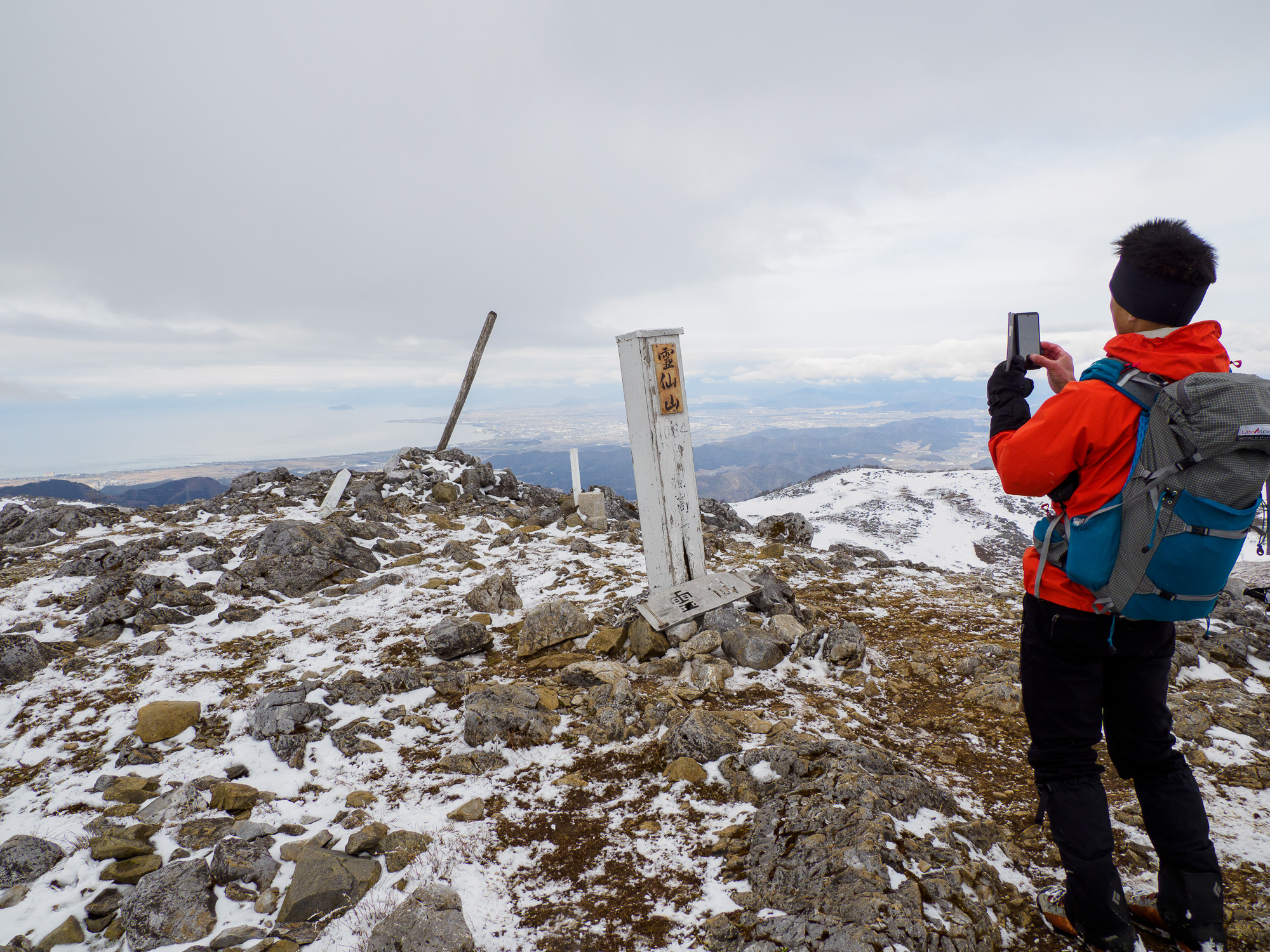 青空こそなかったが遠望があった。湖北方面が一望できた。風が穏やかだったので山頂で食事休憩にした。