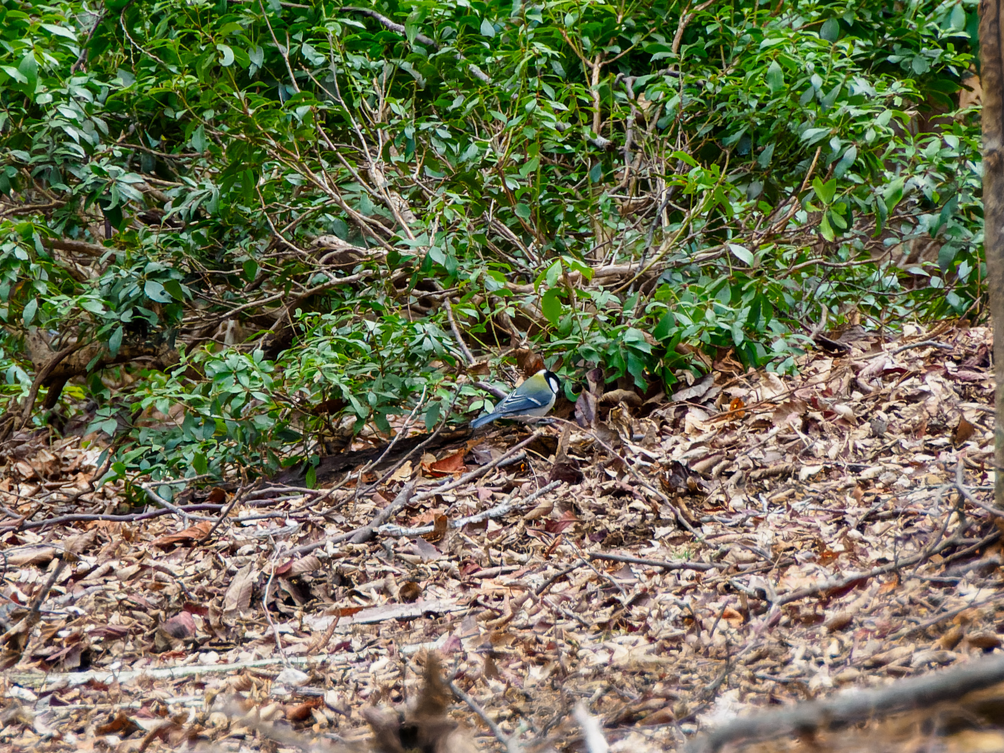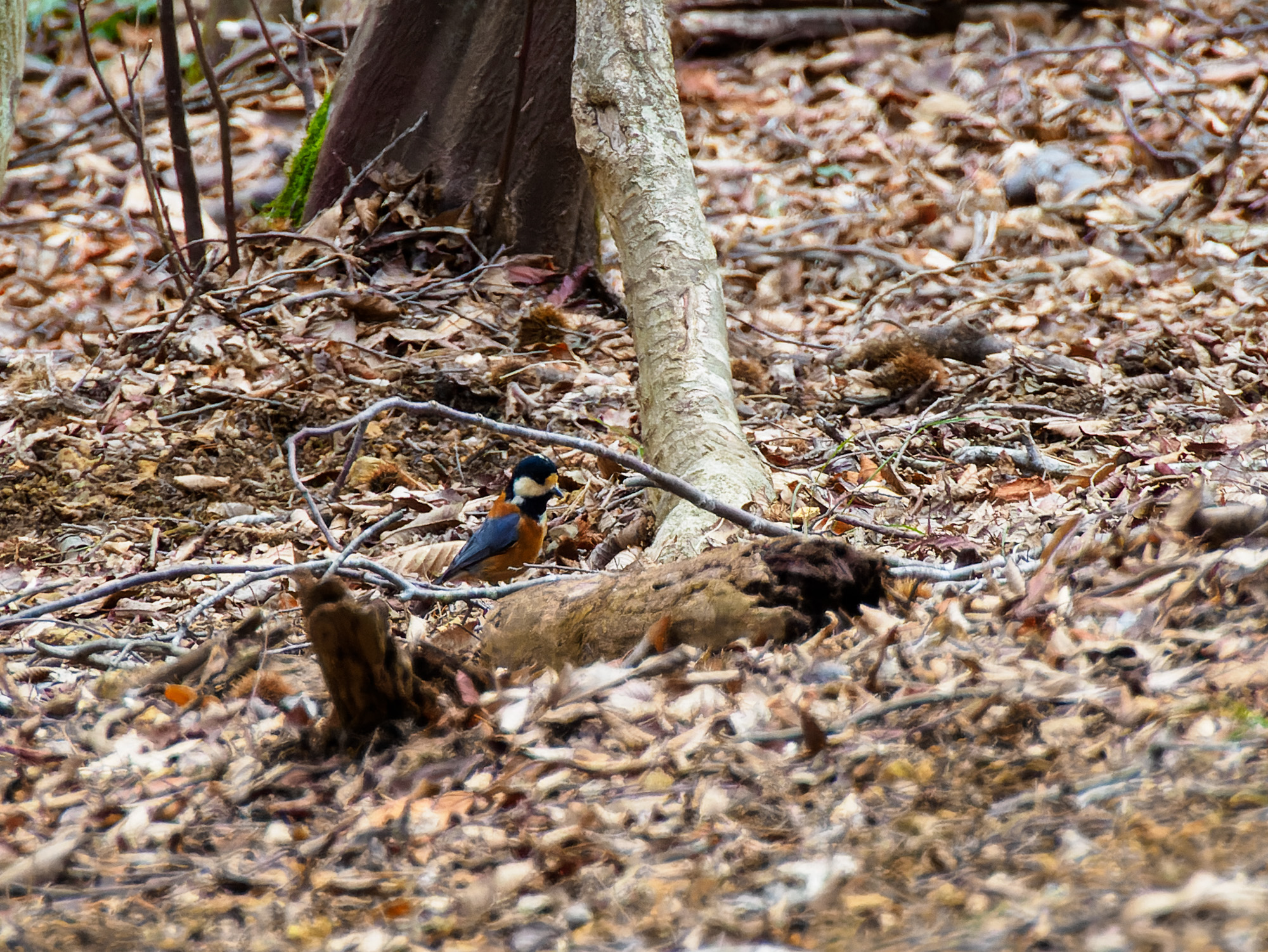 雪があるのは山頂部のみで、下り始めるとぬかるんで滑りやすかった。我慢して高度を下げると落葉樹林に入りやれやれ。高度を下げた分気温が上がり野鳥たちが動き出した。アカゲラドラミングが樹林に響いた。姿は捉えたが、撮影できなかった。カラ類も活発になり、シジュウカラ、ヤマガラが姿を出した。