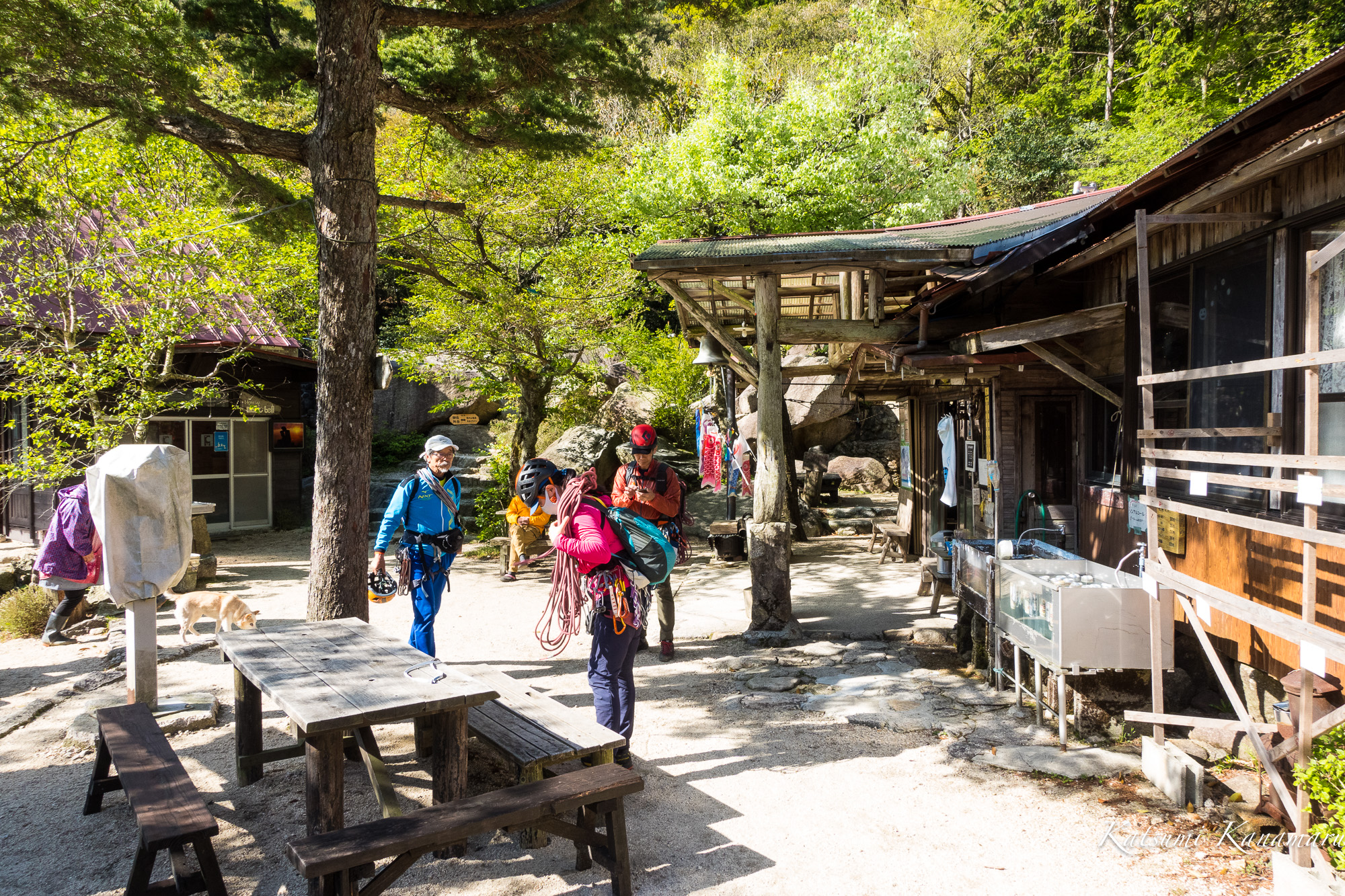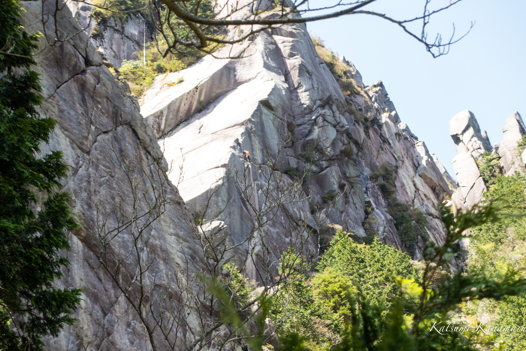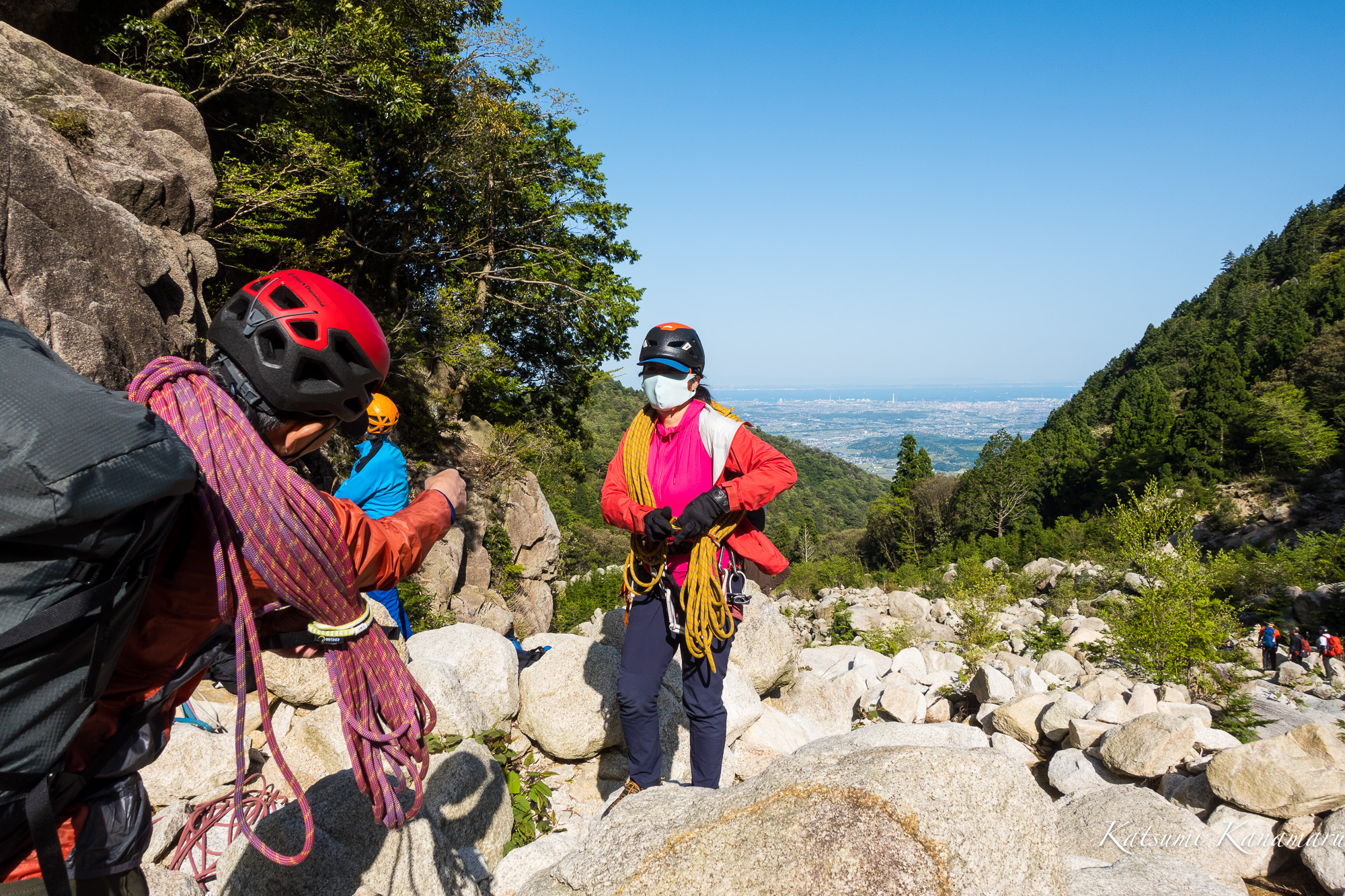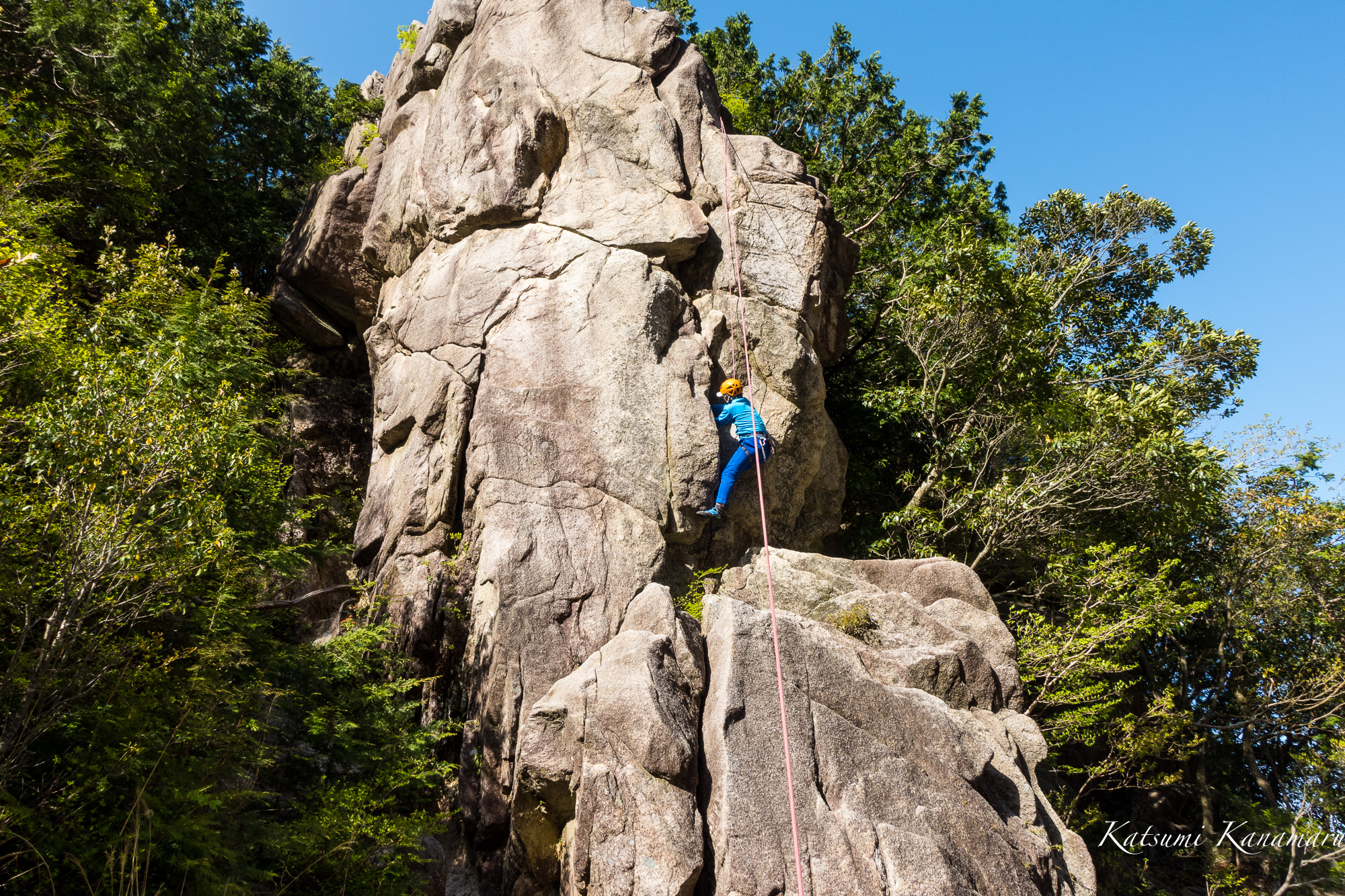 ルートは2本あり、カンテのルートはやさしいが、フェイスは難しい。初級の二人はハンギングビレイでピッチの切り方を講習した。