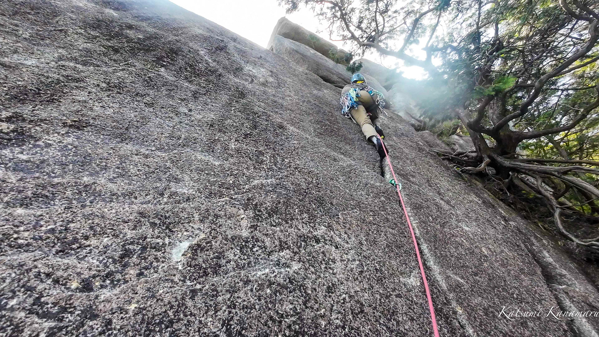 まだ少し時間があったので、兎の耳を登った。ウェイクアップ5.10-。核心は中間部の凹角、ワントライで決めないと上部がしんどくなる。