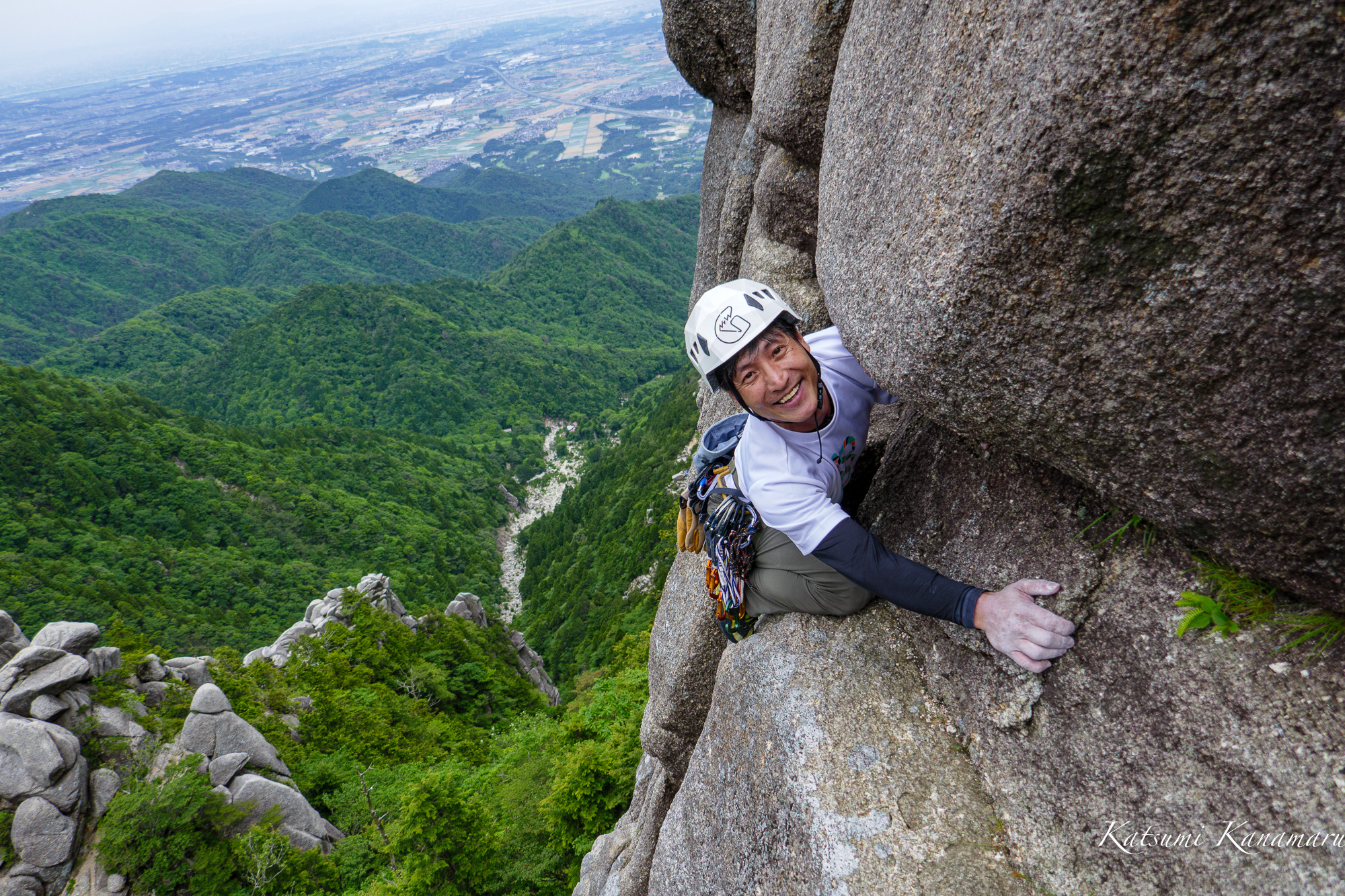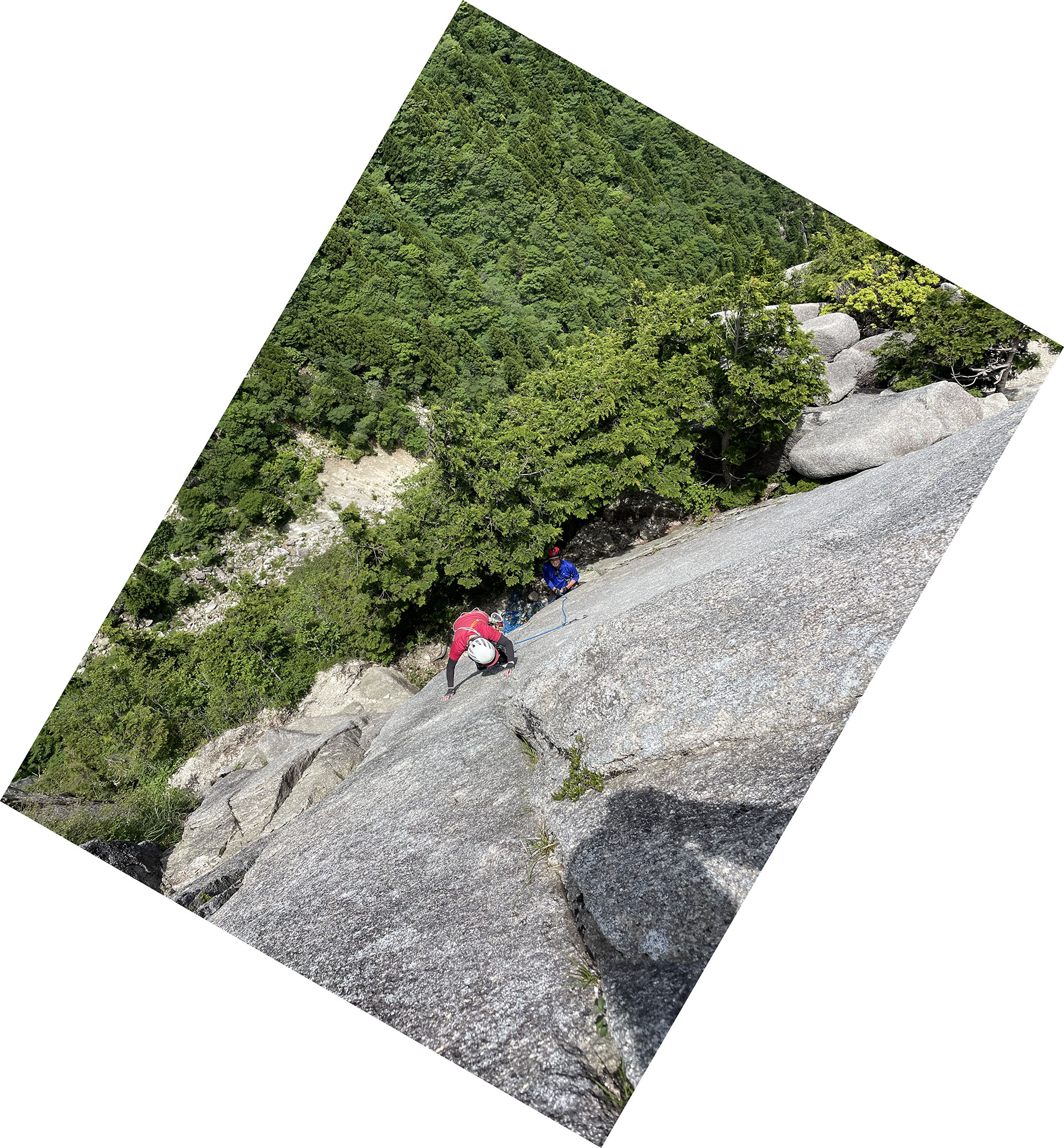 コンテで登り、途中でスラブフェイスを登る。ここで京都のパーティー に会う。写真を撮ってもらった。5>