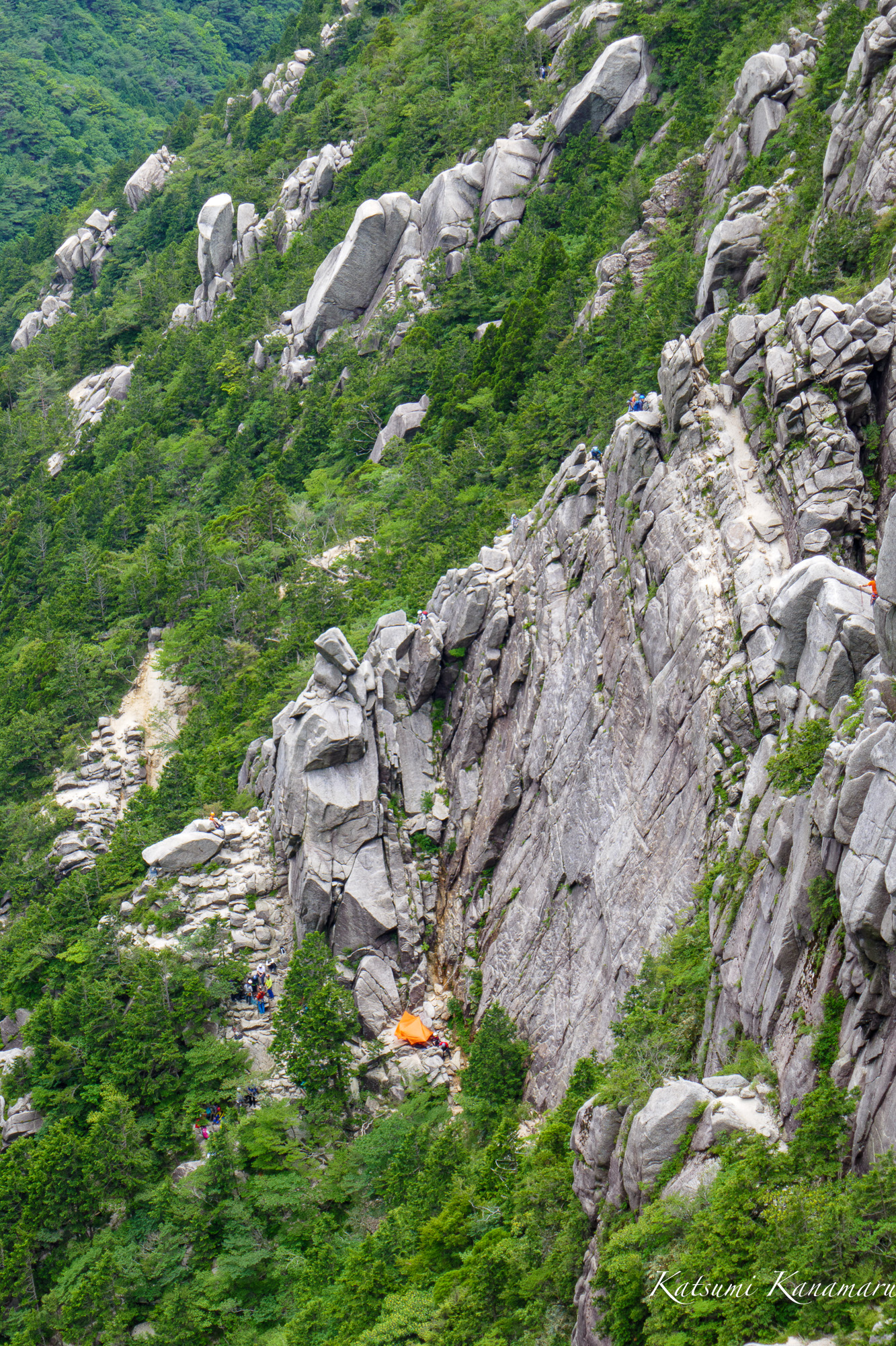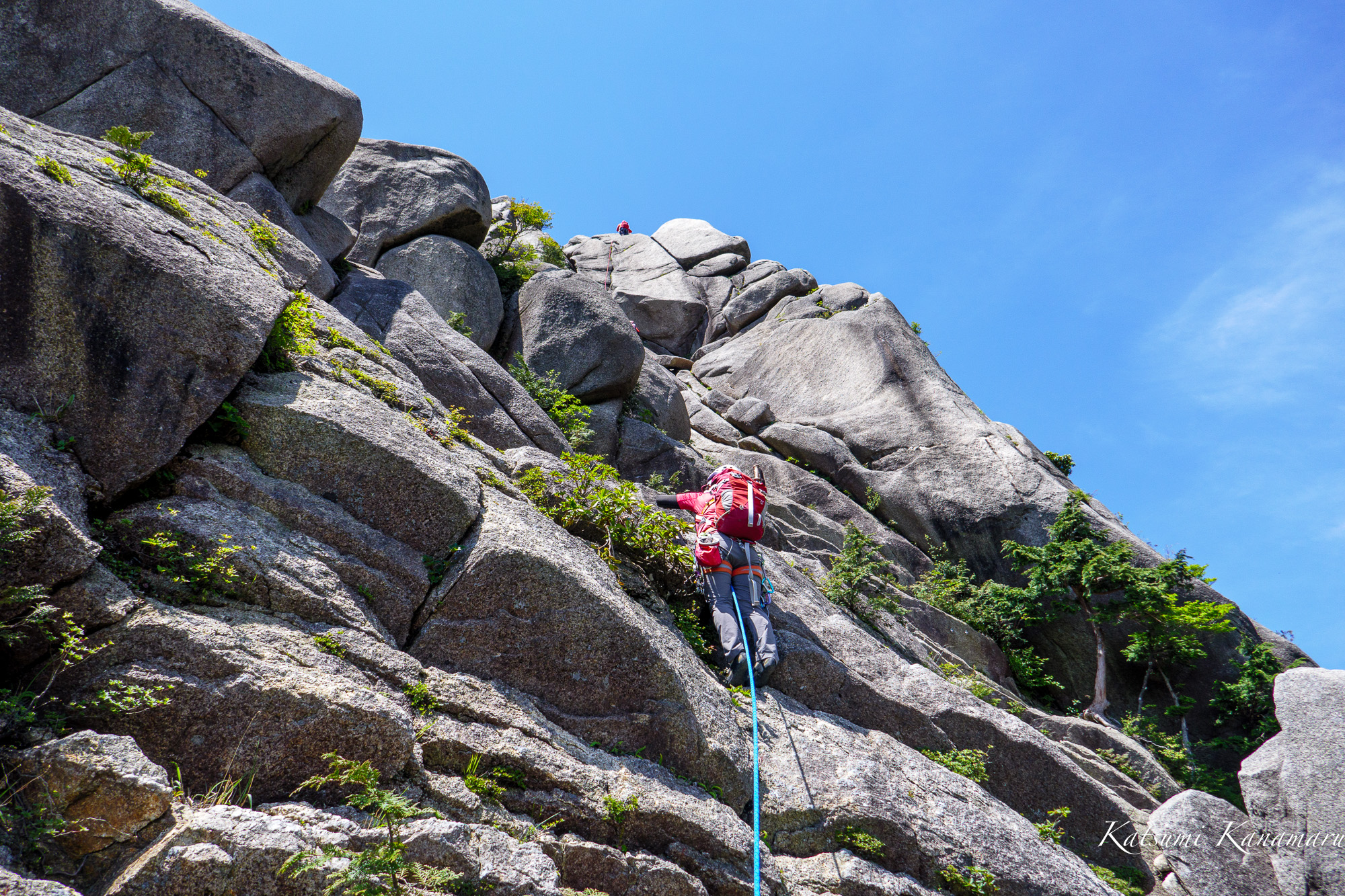 前尾根は混雑しているのが普通で、なかなかP8から通しで登ることはない。しかし、この日は穴場だった。P8はフェイスルートで、グレードはⅤくらいでしょうか。ルート取りにもよるが。中央のルートは難しい。