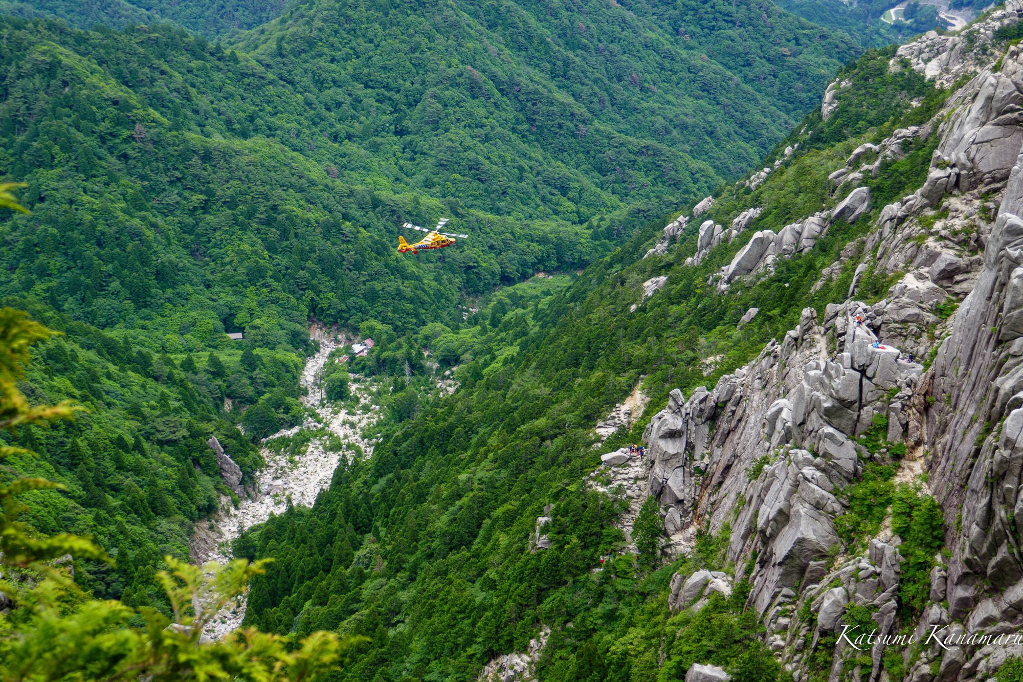 P2は3人待ちだった。待ち時間が多く、登れないことが多い人気のピッチだ。3人待って登ることにした。この頃にやっと救助ヘリが来た。フランケの横でピックアップするらしい、慎重に岩場に近づいて救助活動が始まった。GWから3件目の事故だ。GWのときはP2でのフォール事故だった。少し事故が多すぎる。今回も後で聞いたらどうも基本的なミスだったようだ。5>