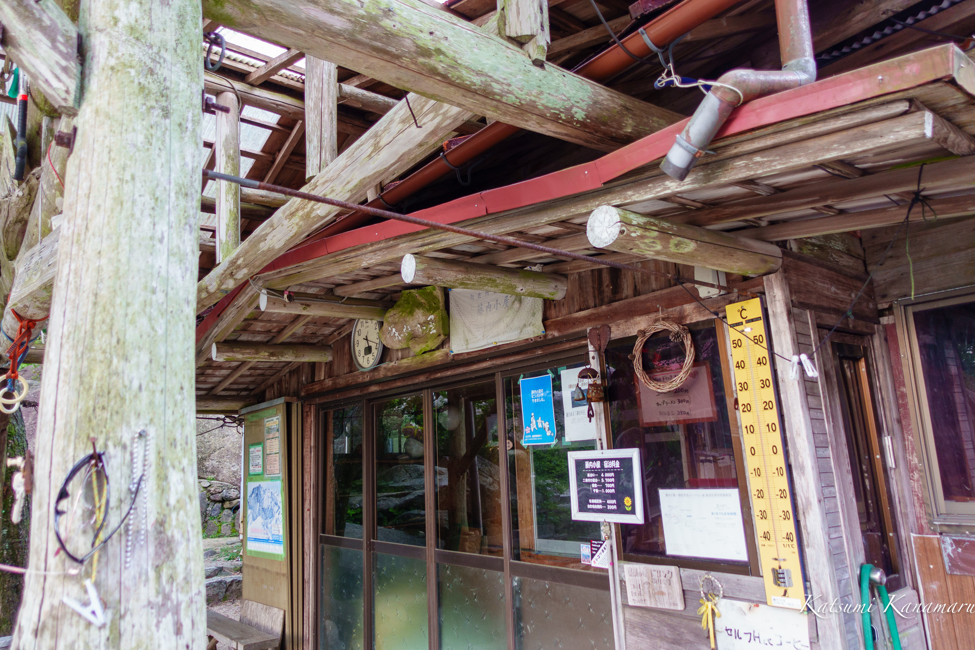 藤内小屋でほてった体を冷やす。小屋の温度計は18度だった。この時期の鈴鹿山系は、標高が1000m以上あるとはいえ、日中は気温が上がり登山の厳しい季節だ。しかし、早朝はは涼しく、登るならこの時間帯だ。小屋で休んでいるとヤマガラが飛んできた。