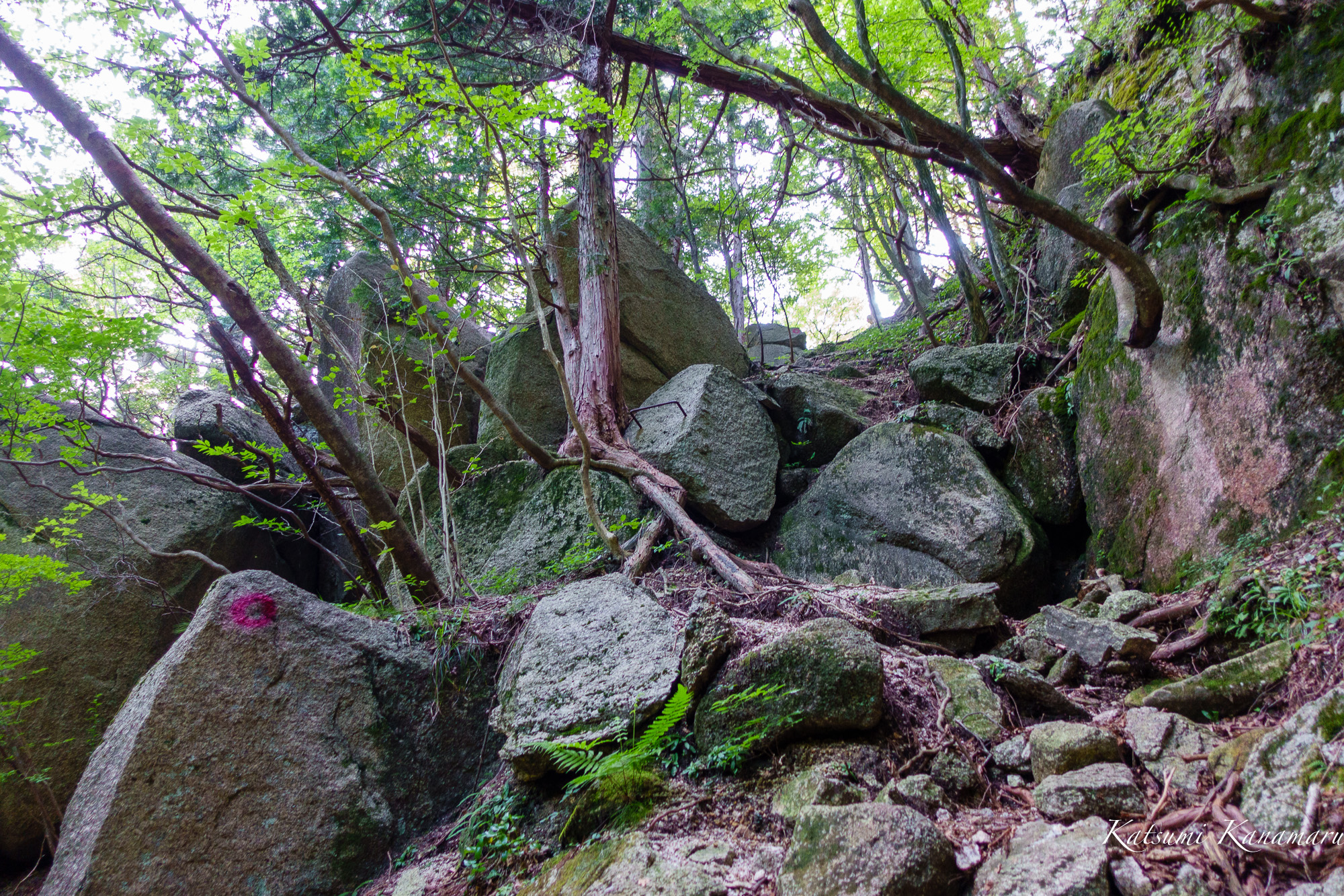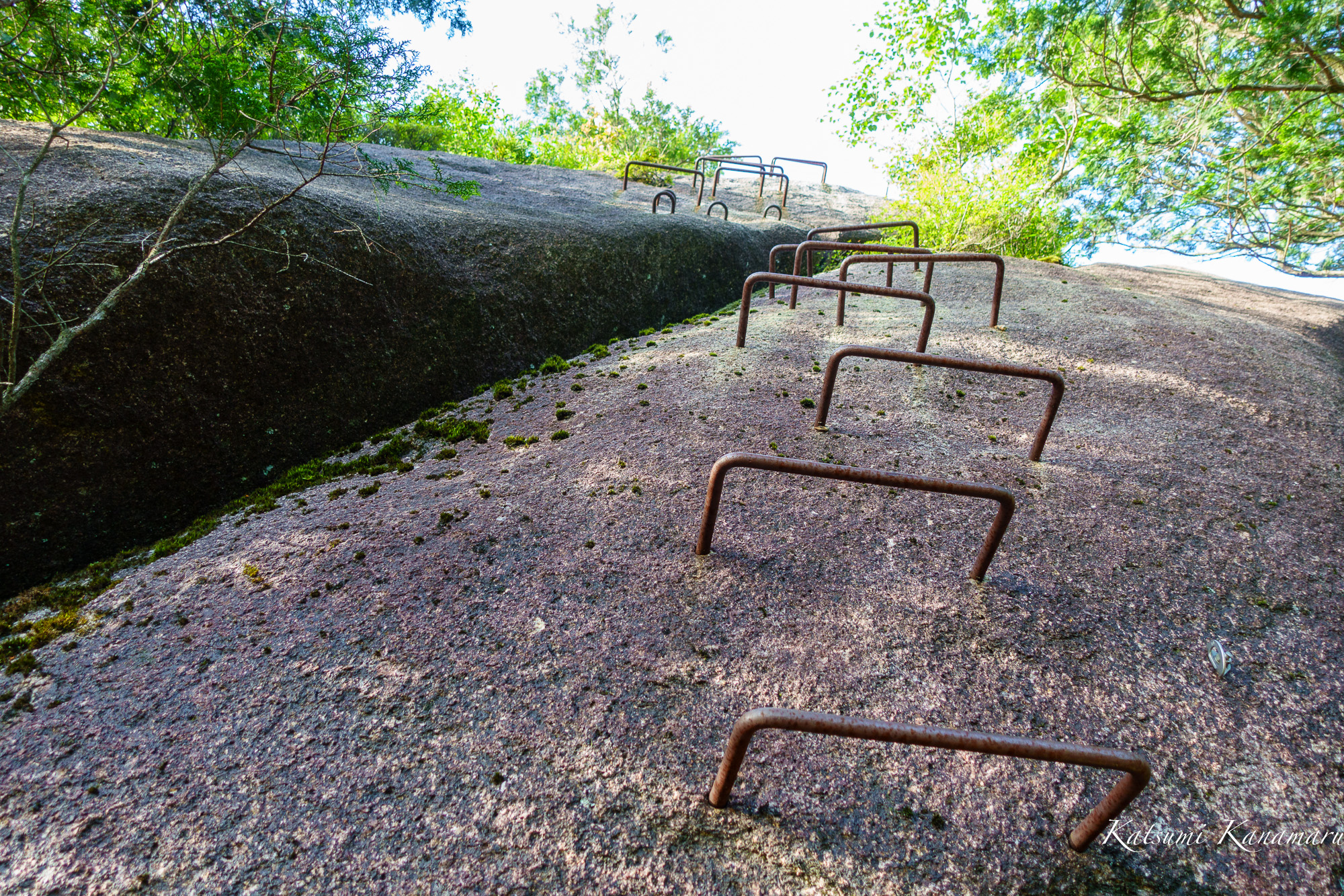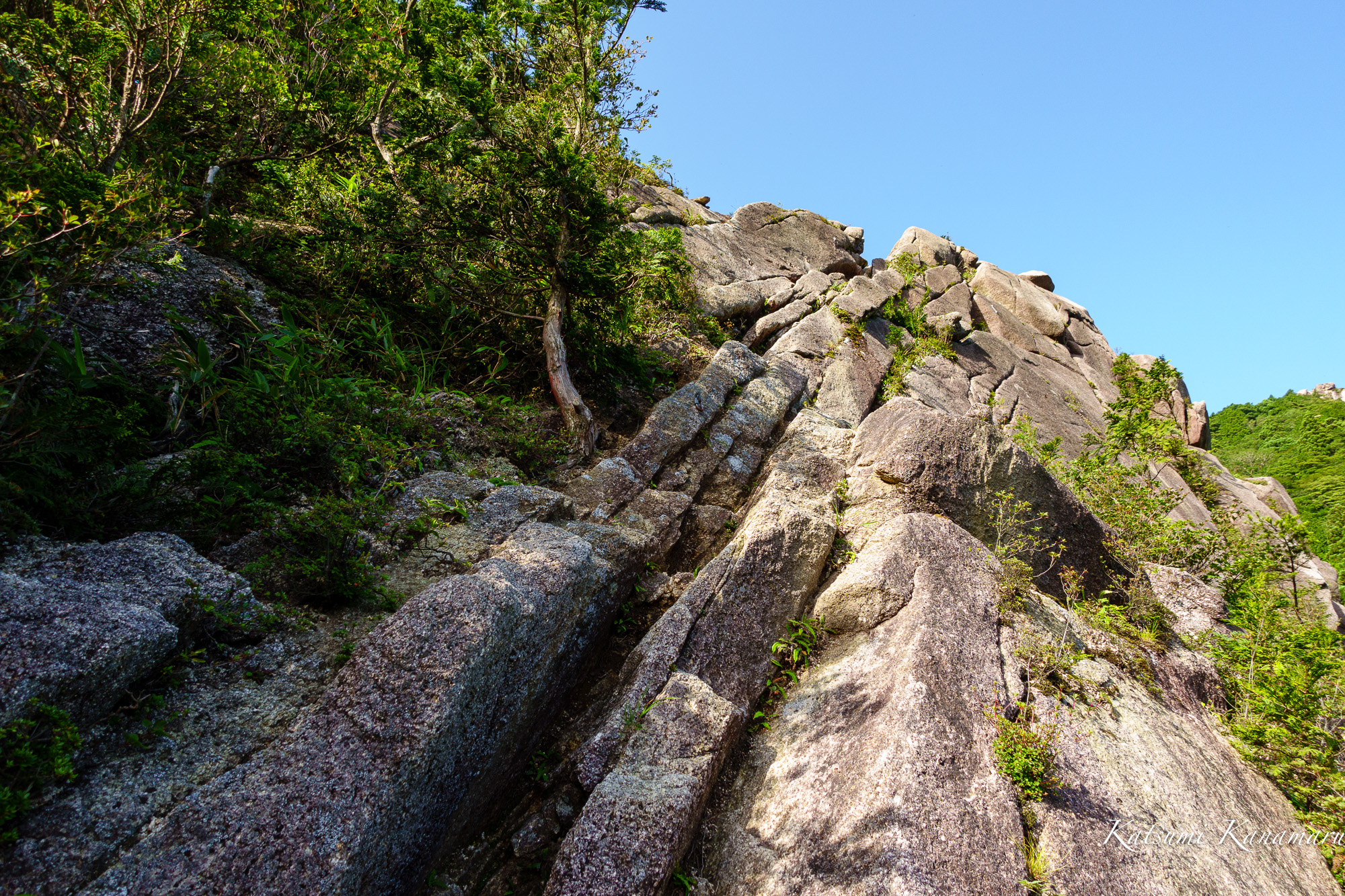 兎の耳の対岸から取り付く。踏み跡はしっかりしている。赤色のペンキも塗られている。岩のギャップにはハシゴが設置されている。