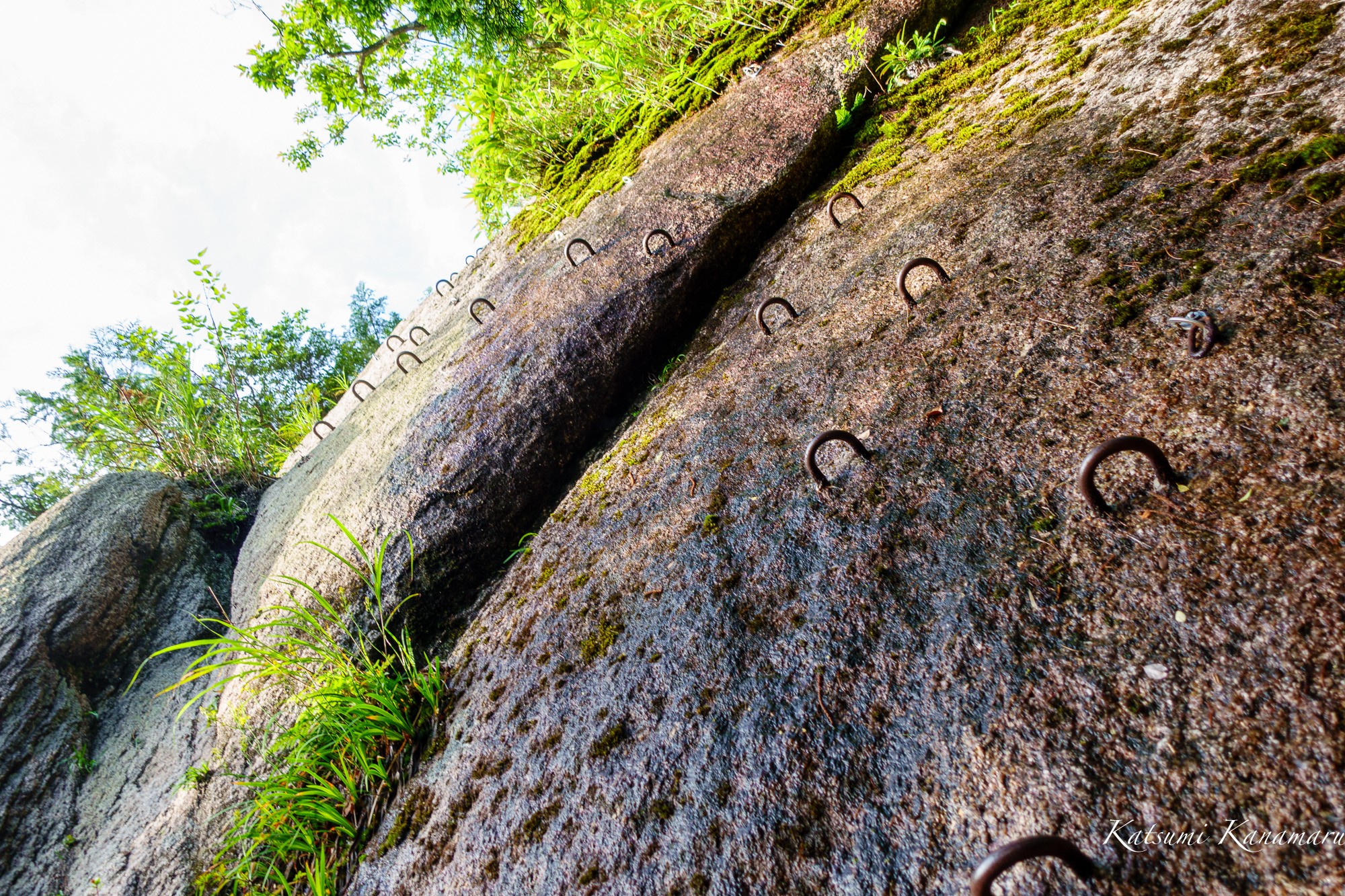 鉄の道だそうだ。人工物を使って登る岩稜ルートで、穂高や剱なら一般登山道扱いだが、御在所でバリエーションルートに入る。本格的なクライミングをするなら藤内壁だが、このようなルートがあることで、幅広く楽しめる。それに、劔や穂高の岩稜ルートの練習にもなる。5>