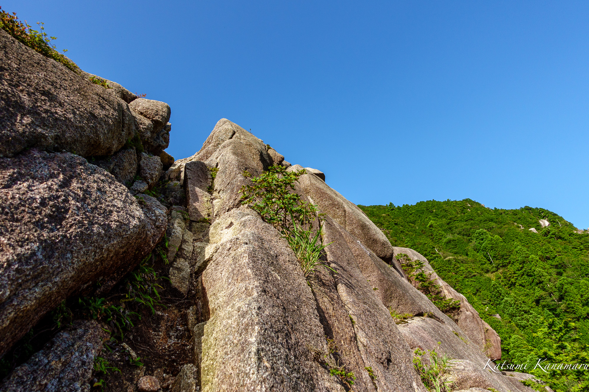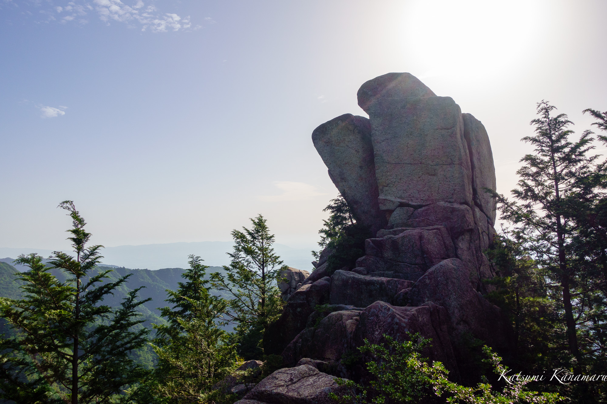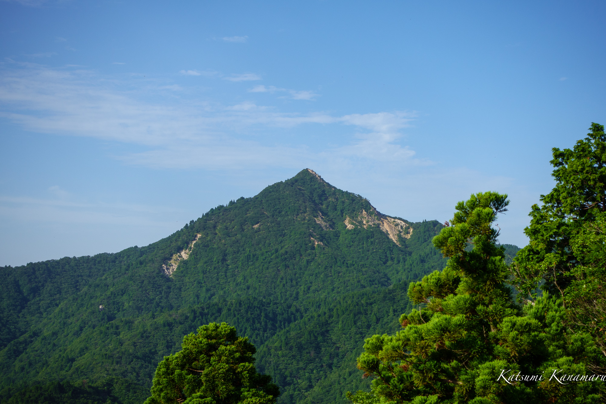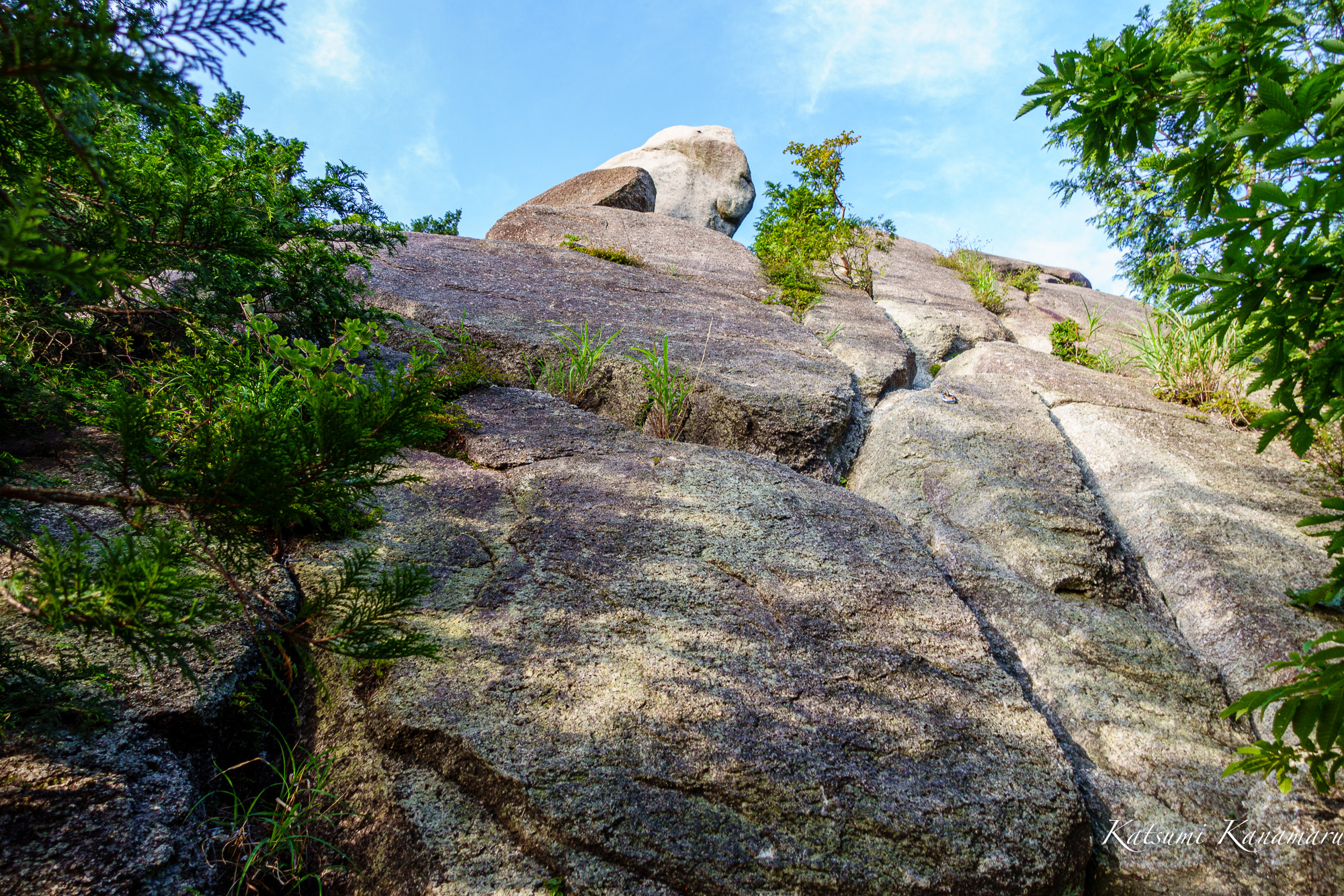 中道を下る。登山者と数人行き交った。交わす言葉は「暑いですね」。その通りだ。早く下山して車のエアコンで涼みたい気分だ。ガイドブック用の写真を取りながら下った。