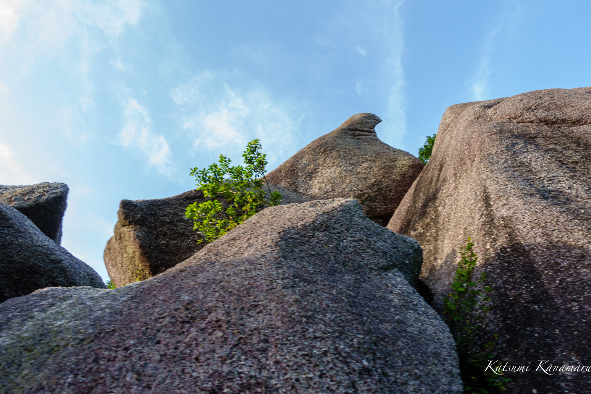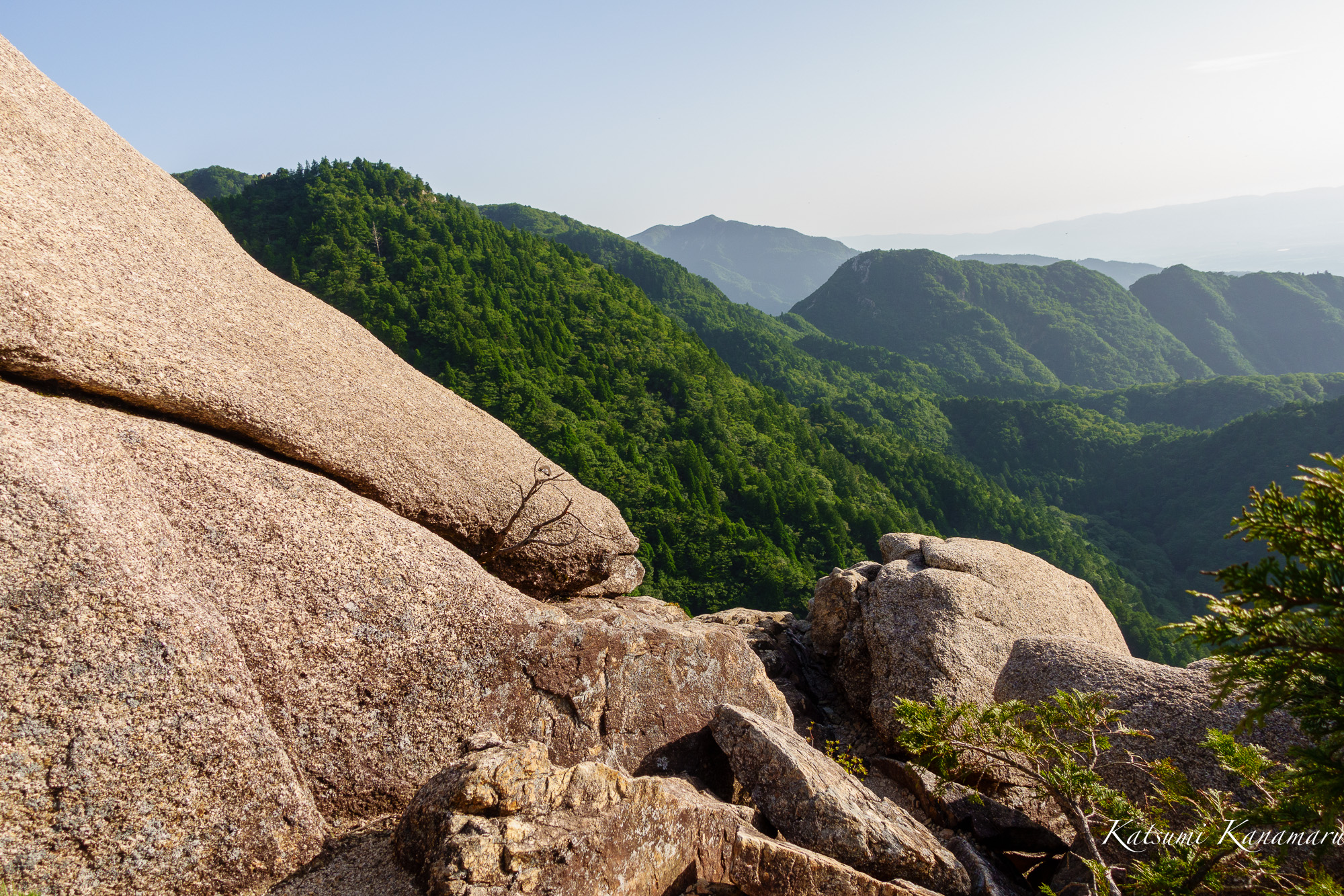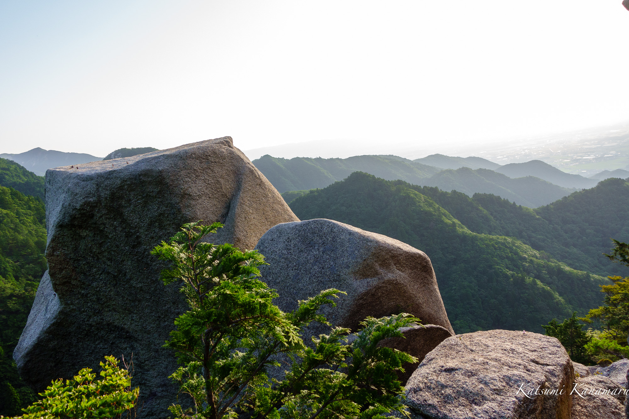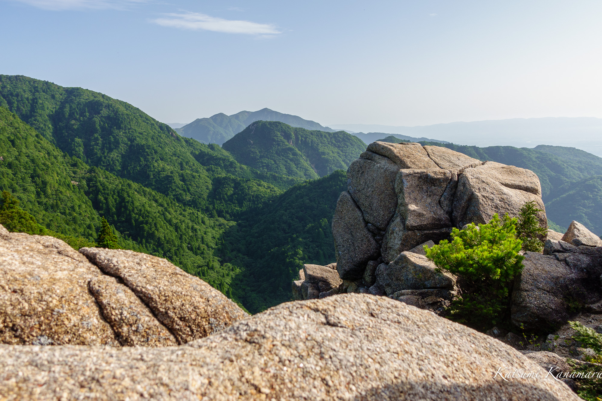 中道を下る。登山者と数人行き交った。交わす言葉は「暑いですね」。その通りだ。早く下山して車のエアコンで涼みたい気分だ。ガイドブック用の写真を取りながら下った。