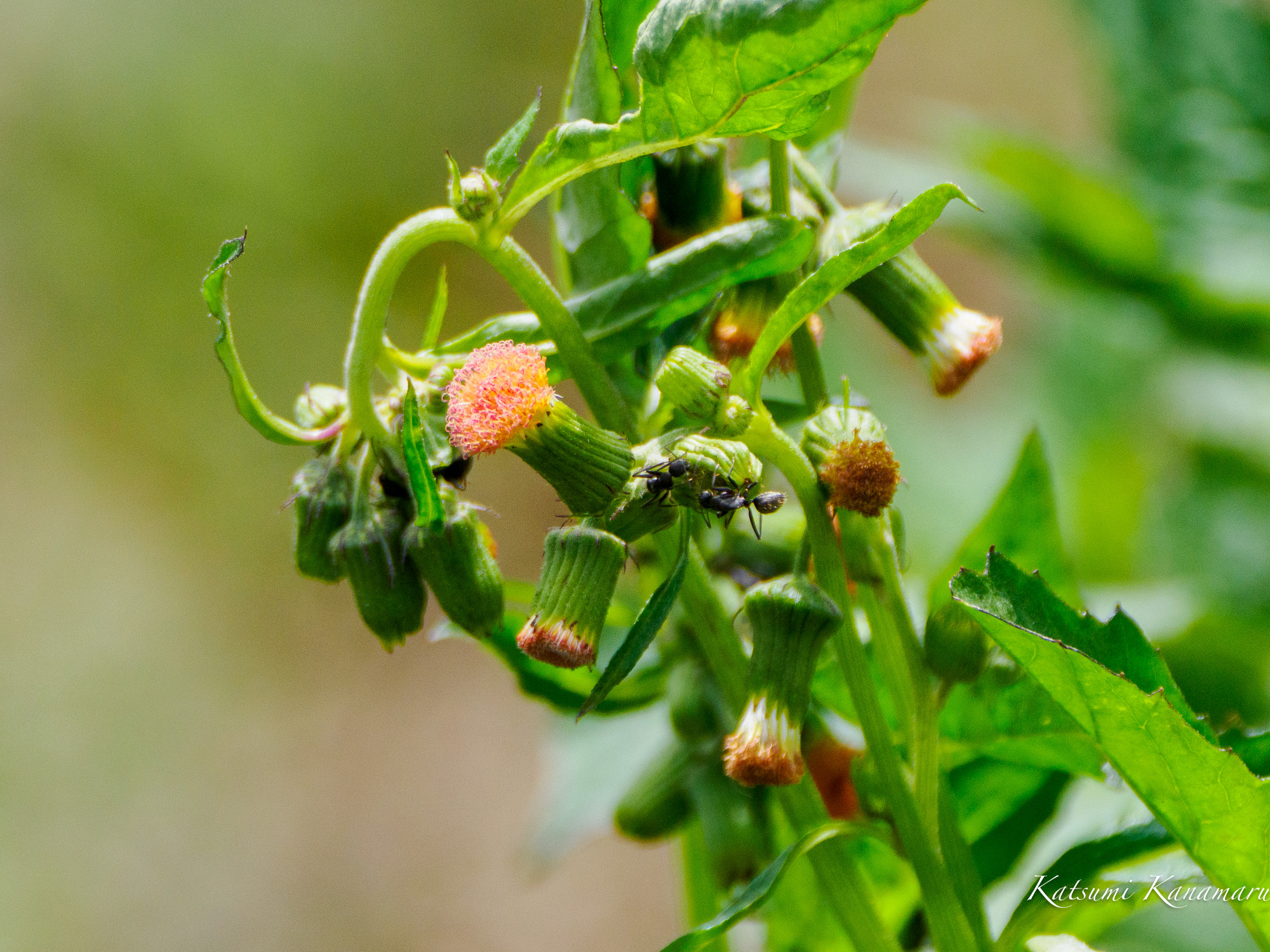 心配していたことが起こり始めていた。ベニバナボロギクは道ばたの荒れ地に咲く、キク科の帰化植物だ。以前、霊仙山で地表を覆い尽くす群生を見て驚いた。鈴北岳もそうなりつつある。野の花が山地に進出する。5>