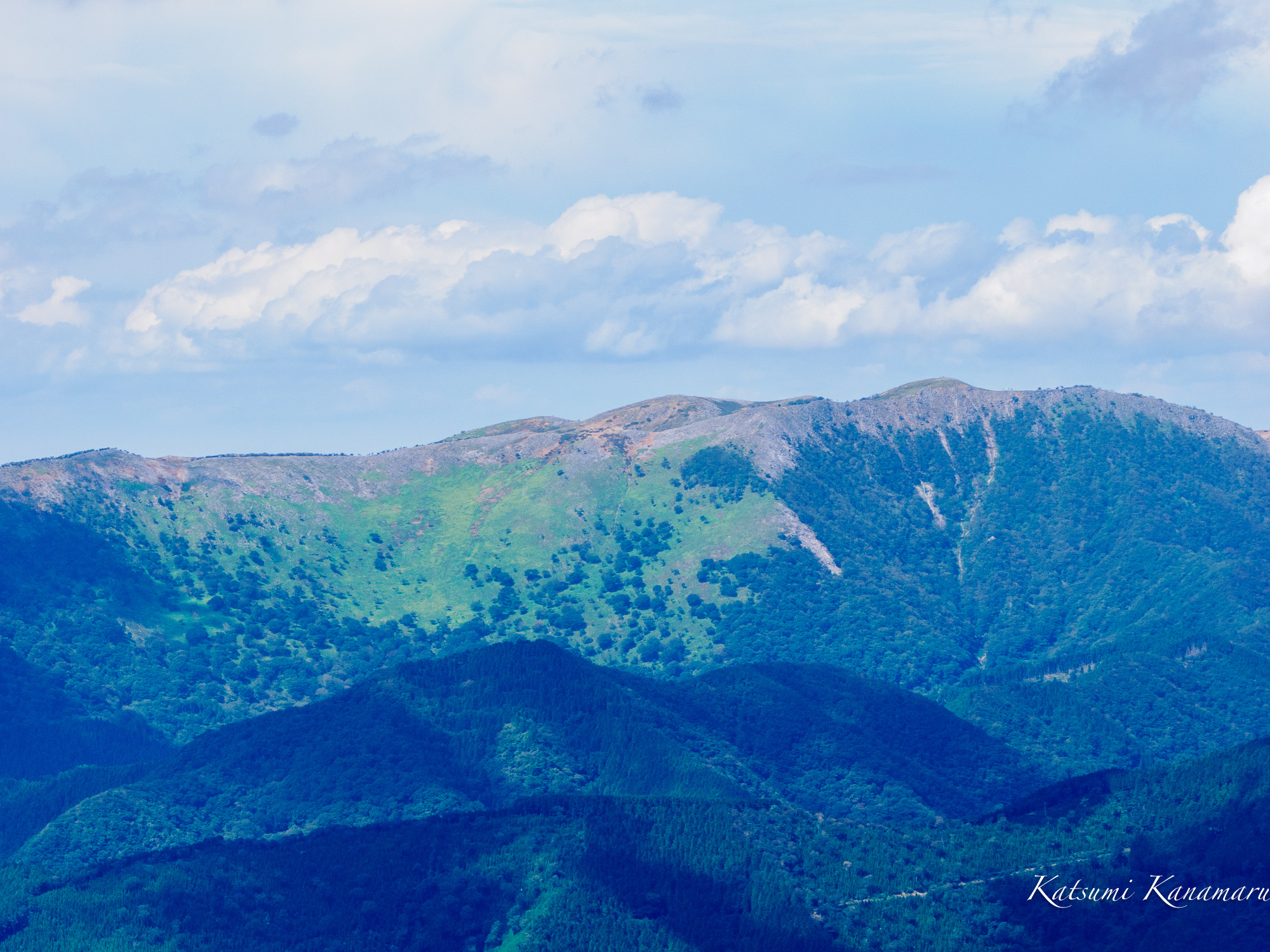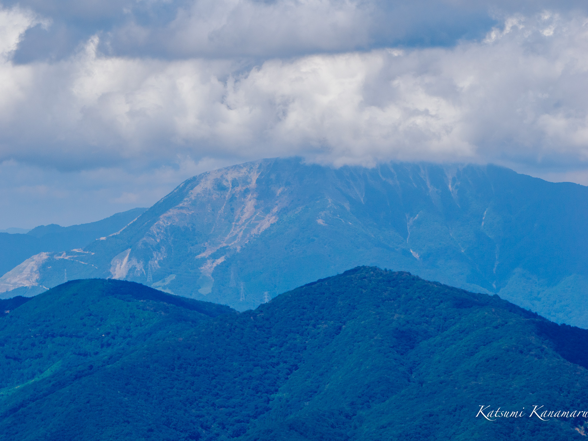 現在、送電鉄塔の補修中で、稜線までモノレールが施設されている。また、国道の 工事もしている。工事車両が登山者の駐車場に置かれるので、滋賀県側に臨時のPが作られていた。5>