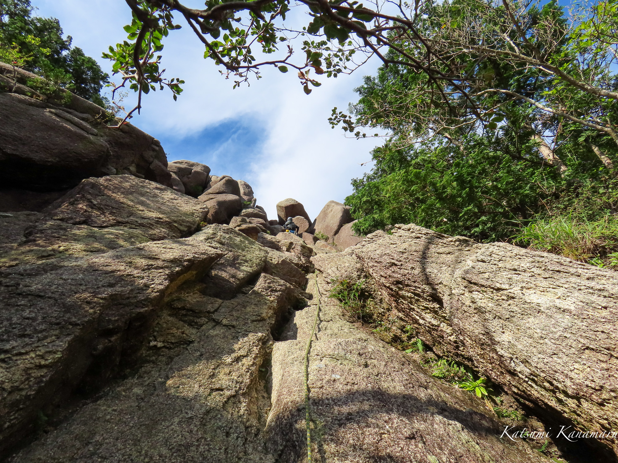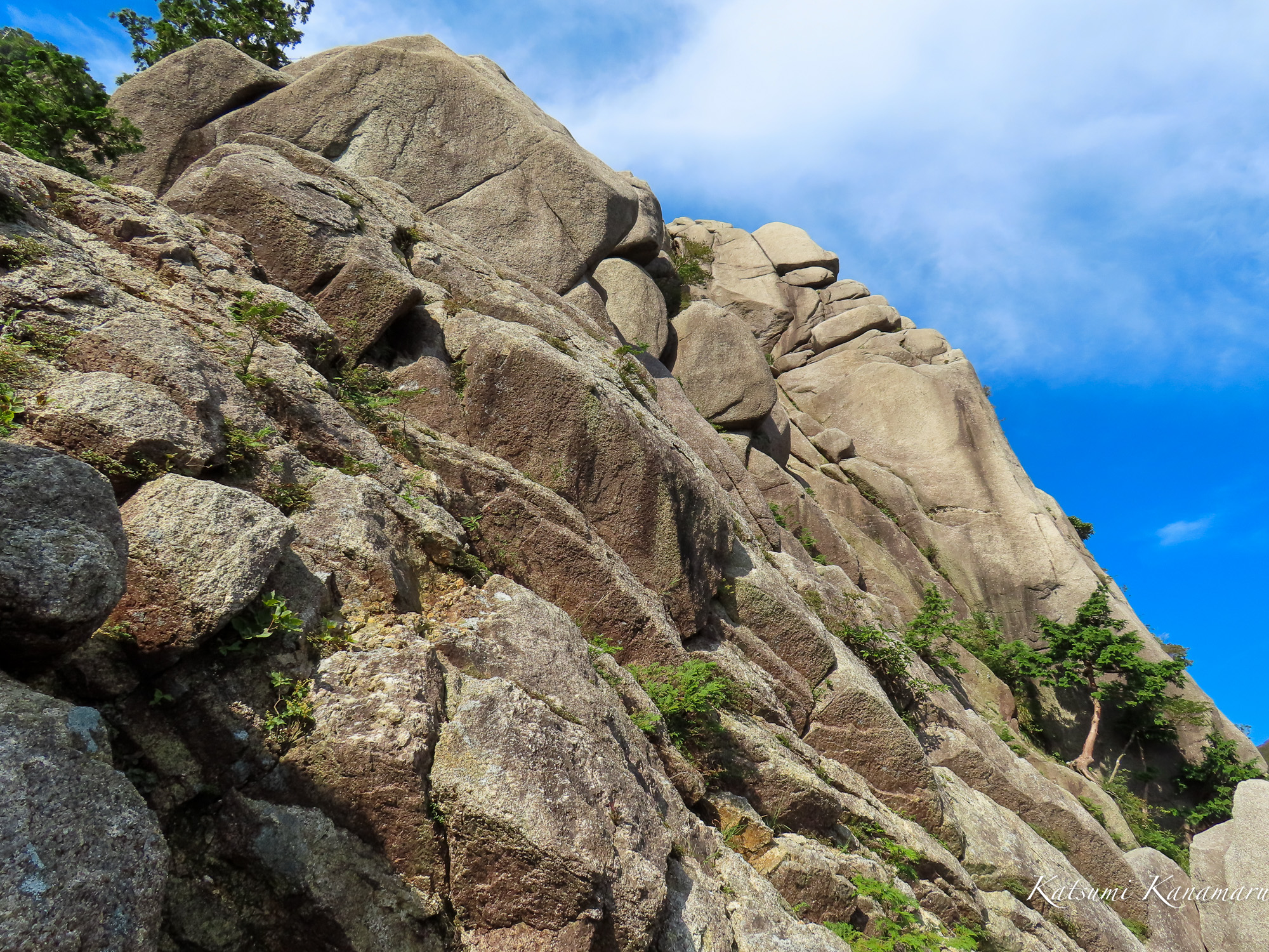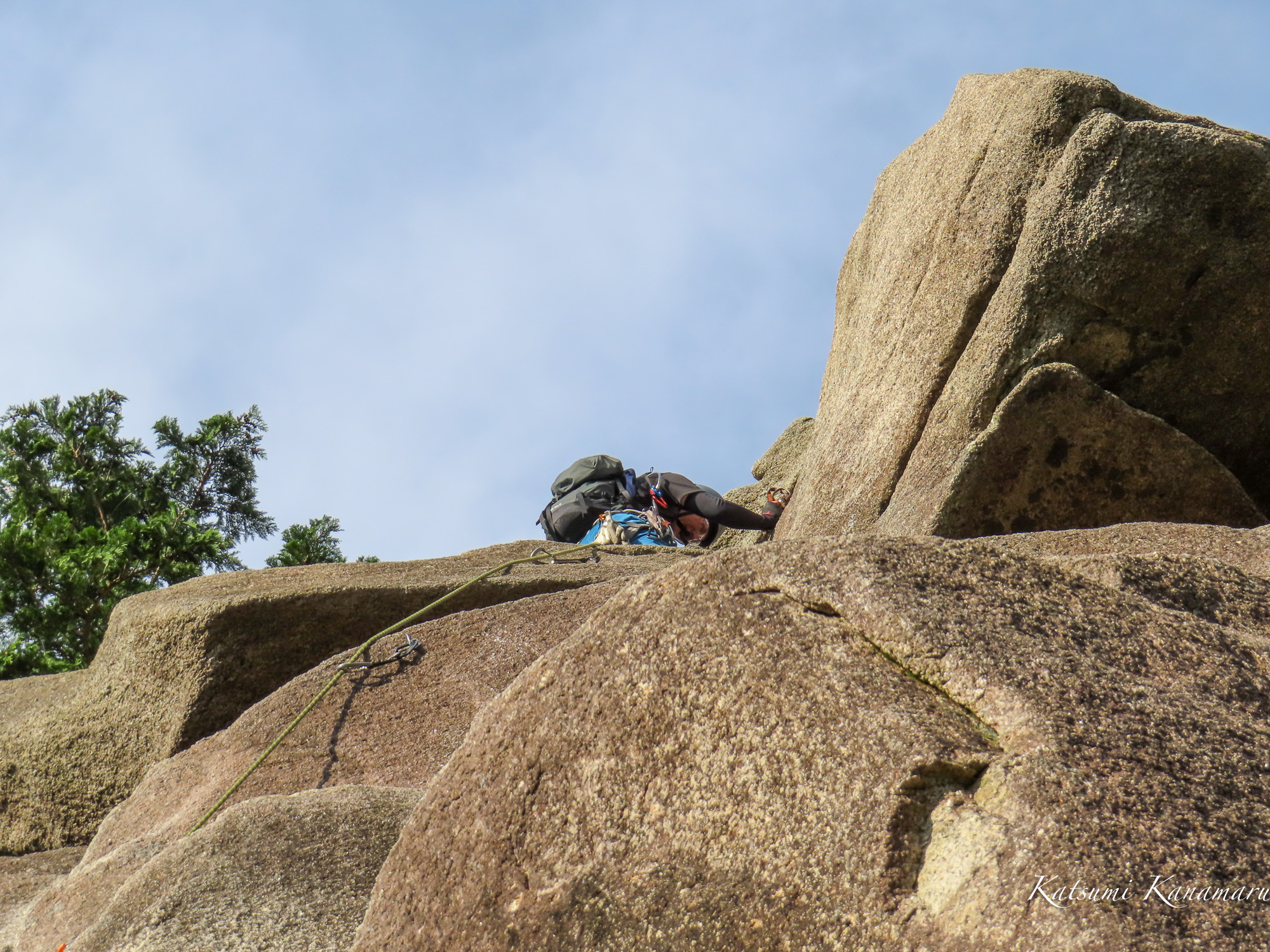9月は大きな岩稜登攀の予定が入っているので、岩トレに出かけて。猛暑で1ヶ月ほど、登山や岩から遠ざかっていた。ただでさえ登攀力が低下していて、維持が難しい年齢になっているのに、一つも離れると意欲も低下する。最近は一枚の写真心が動く様になってきたが、そればかりも続けていてもちょっとさみしい。素手で岩に触ると登りたい気持ちが出てくる。ごごから用事があり、午前中の涼しい時間に、前尾根を登ってきた。5>