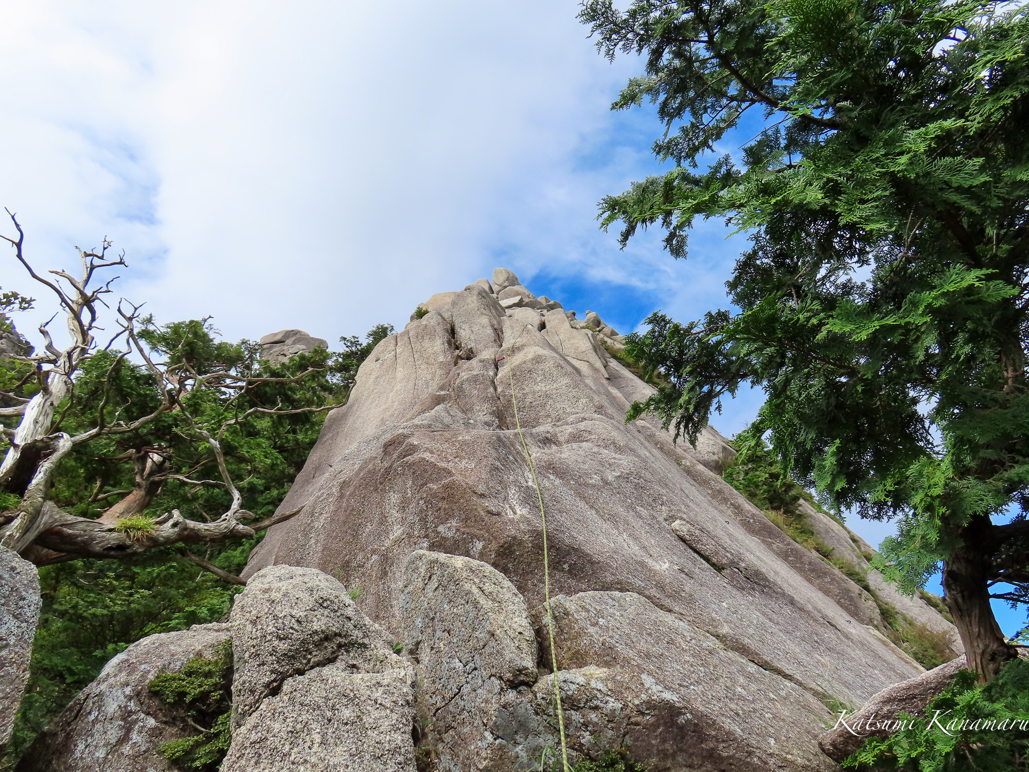今日は午後に用事があるので、12時には登山口まで降りたい。時間節約のためにノーマルルートで登る。登攀準備をしていると数人のグループがやってきた。後ろに着かなくてよかった。5>