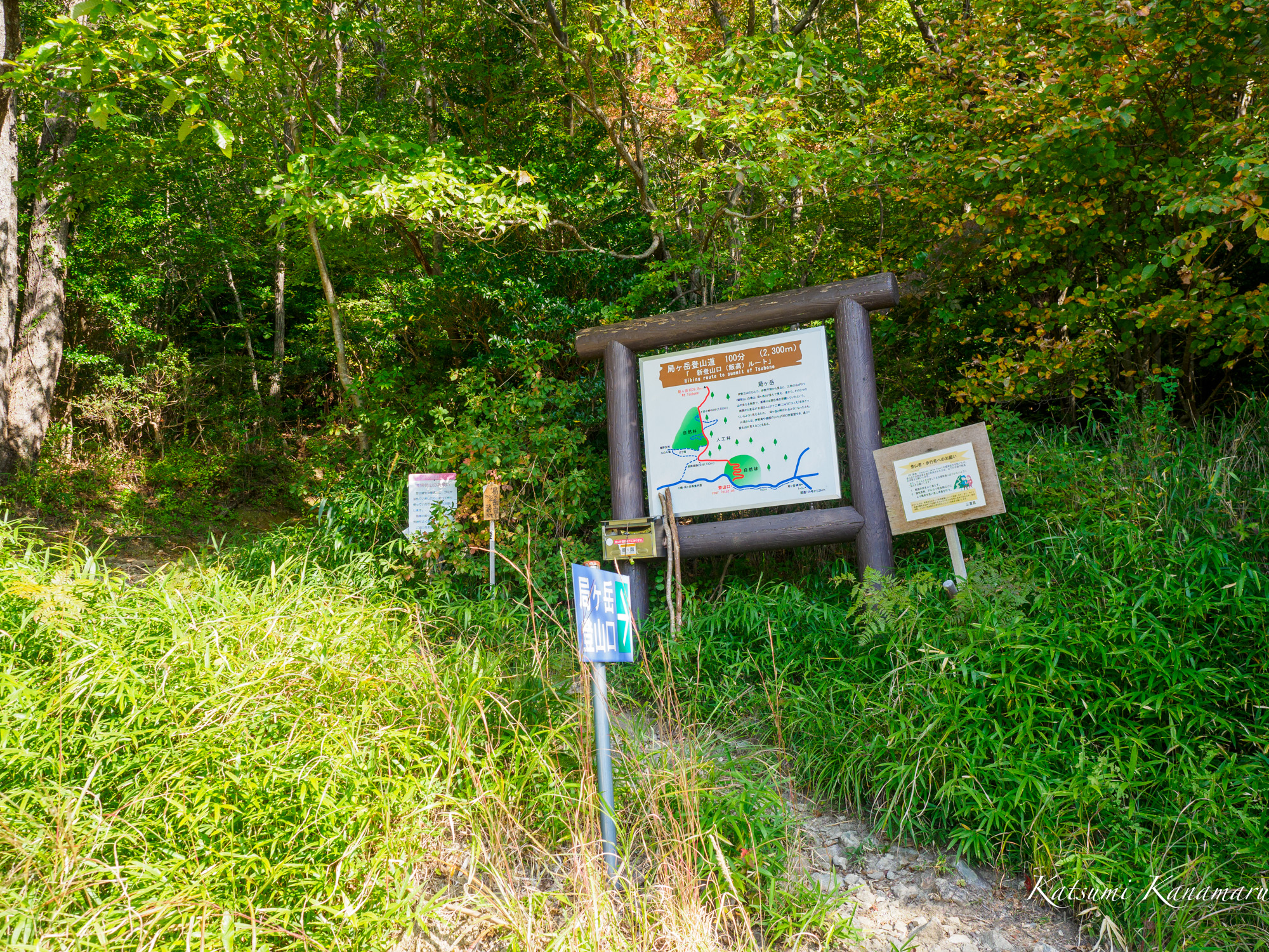20分くらい林道を歩くと新道登山口、案内などが整備されている。歩き始めるとあまり歩かれていないが、道幅もあり、重機で整備されて作業道らしい。