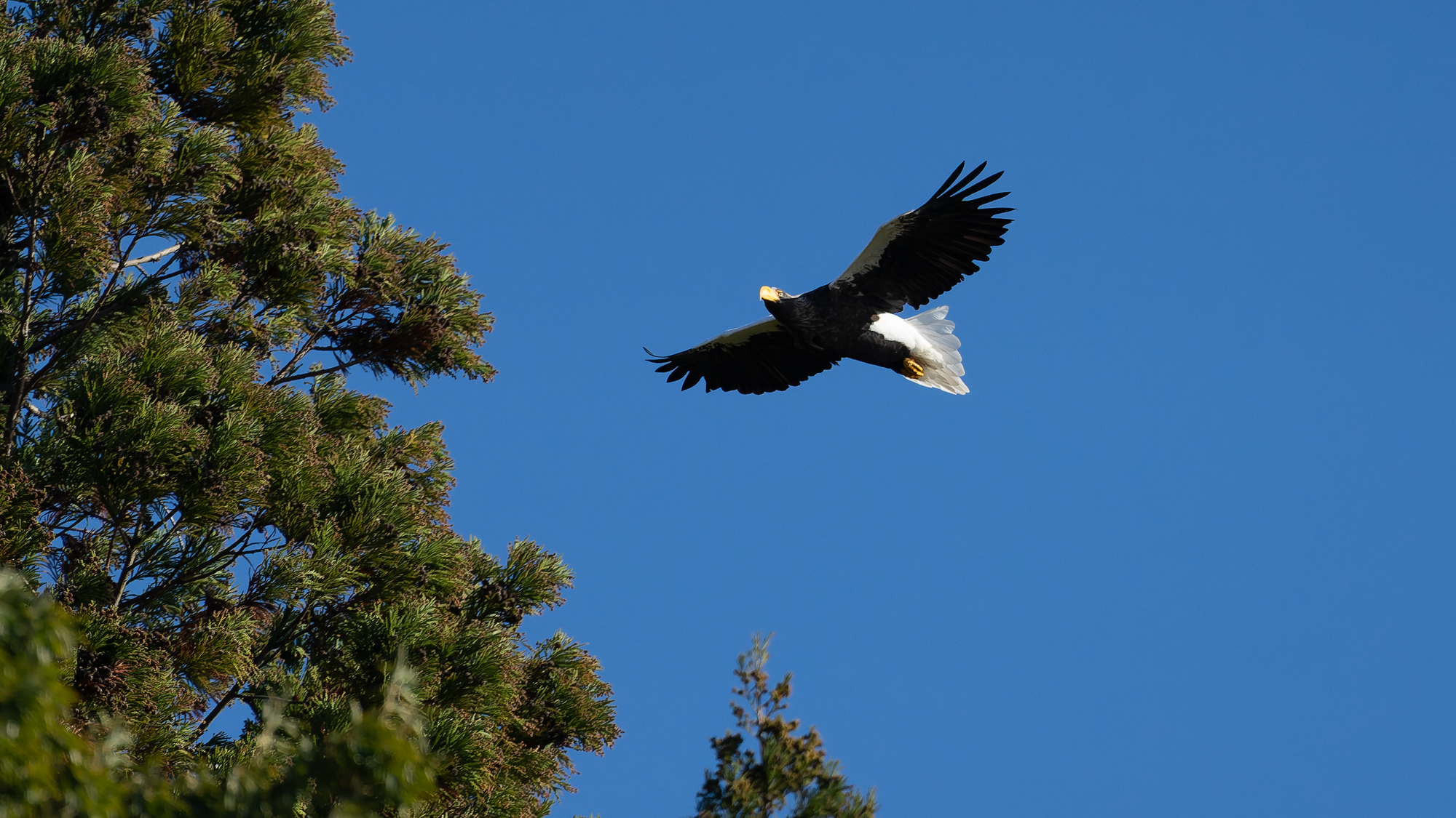 琵琶湖山本山のオオワシ2025No 72025年12月18日19日 野鳥撮影 おばあちゃん 渡来40日目 北西の風に乗りよく飛んだ オオバンに追うが失敗 魚を捕食