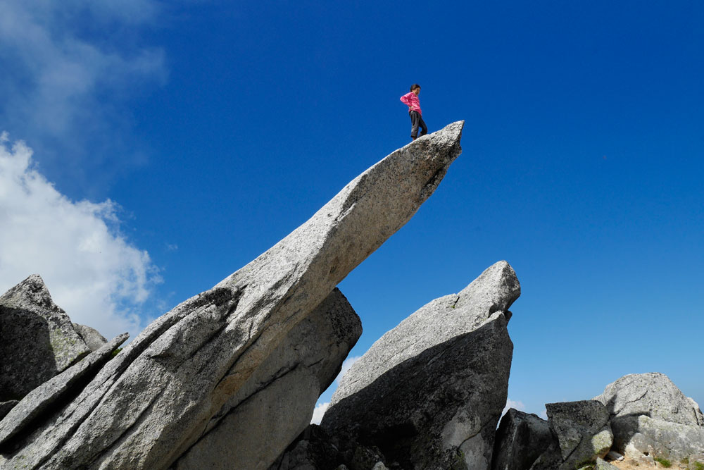 下山 8合目岩小屋 昨日要理は早く目が覚めた。さて広場まで日の出を見に行こう。すでに東の空が赤らみ始めている。七丈小屋の登山者も登ってきている。満月が奥壁の上に出ていて、岩壁が赤らみ始めた。八ヶ岳や北アルプスが雲海に浮かんでいる。登山者にしか見ることができない風景だ。その後岩屋に戻り軽く朝食をとり出発準備をした。