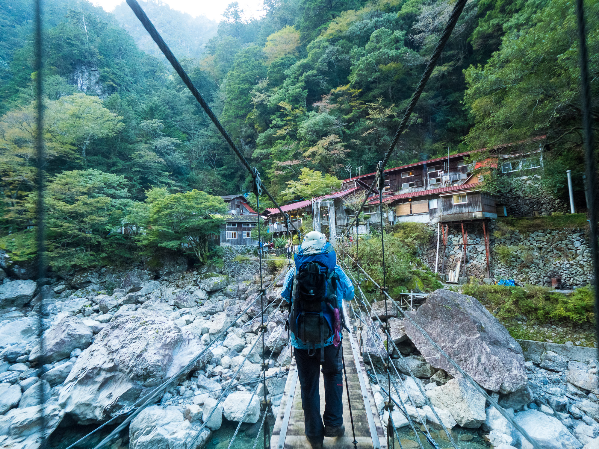 家に古い写真が残っている。そろらく、昭和二十年代だから約70年前の写真だ。これ以外に大杉谷の写真は見当たらないが、服装などから推測し、桃の木小屋が昭和15年開業していることを考えると、登山道はある程度整備され、桃の木小屋で宿泊したことが想像できる。足下を見ると地下足袋だ。