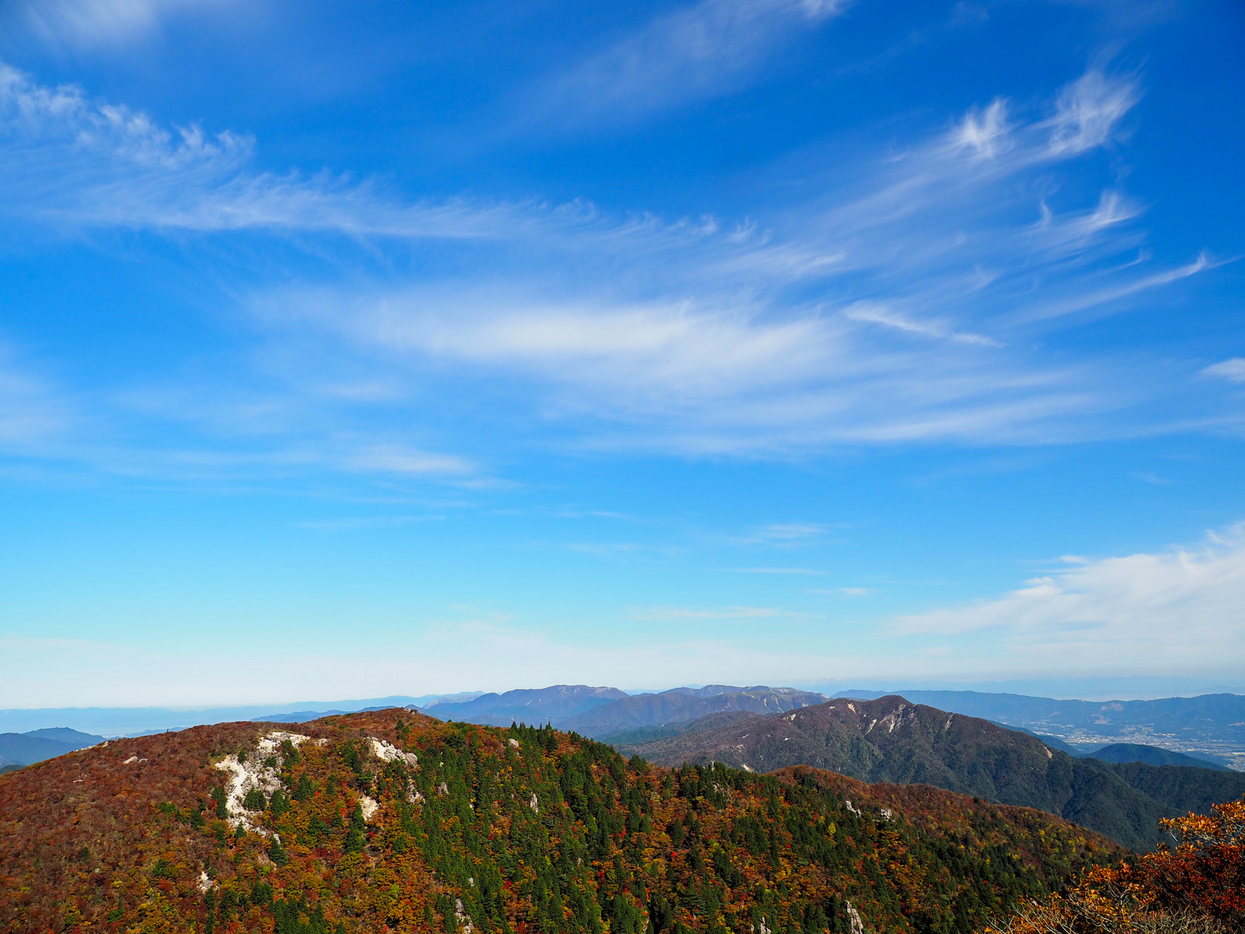 効率よく撮影するためにロープウェイを使った。というのは年間パスポートを持っているが、今年はコロナ禍でまだ1回しか使っていなかった。このままだと元もとれないので、残り二ヶ月で積極的に使おうと思う。御在所、国見ともに山頂付近が紅葉の見頃だった。まず、国見岳、青岳、キノコ岩と歩き撮影した。シロヤシオは涸れた葉が多いが、それ以外はよく色づいている。御在所に戻って何箇所かを撮影し山を降りた。