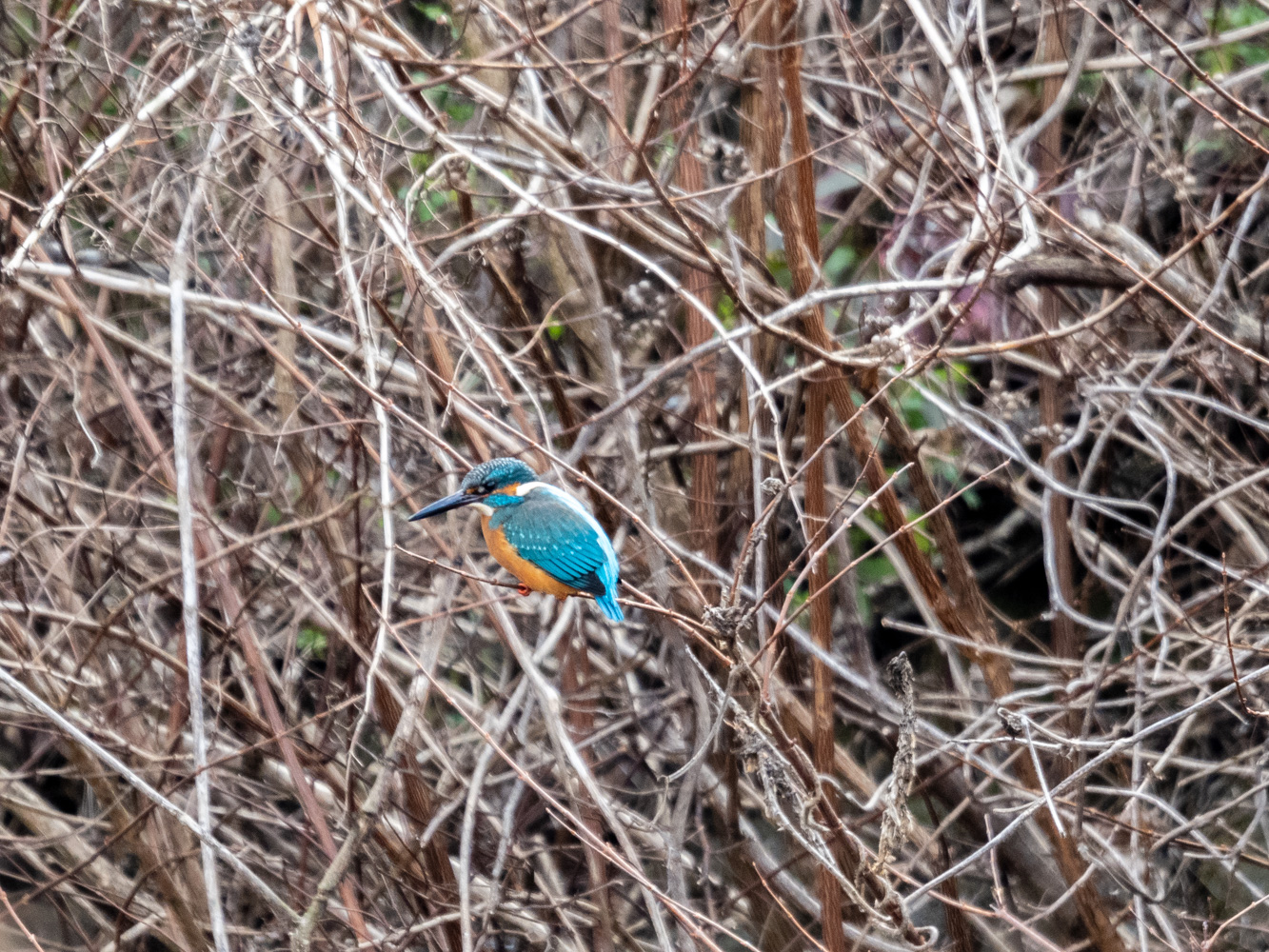 カワセミ、ベニマシコ、ジョウビタキ、キセキレイ、ハクセキレイ、メジロ、ツグミ、モズ、コガモなど。ベニマシコ撮影失敗。カワセミは若鳥のメス。上流にオス。ハクセキレイはどこにでもいるが、キセキレイは比較的上流域にいる。