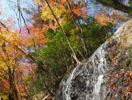 分県登山ガイド三重県の山ルートチェックと写真撮影。人気の高い山域を中心に写真取材をしていると、入山者の少ない山域は、どうしても後回しになってしまう。紅葉はだめだろうと思いつつ、今回の3刷で気になったところのルートチェックをした。しかし谷筋の紅葉はちょうど見頃だった。とりあえず登ってみること、そうすれば必ずご褒美はある。当初は、門の倉の帰りに南亦を経由したかったが、時間が厳しくなったのでパスした。この時期は日が落ちるのが早い。