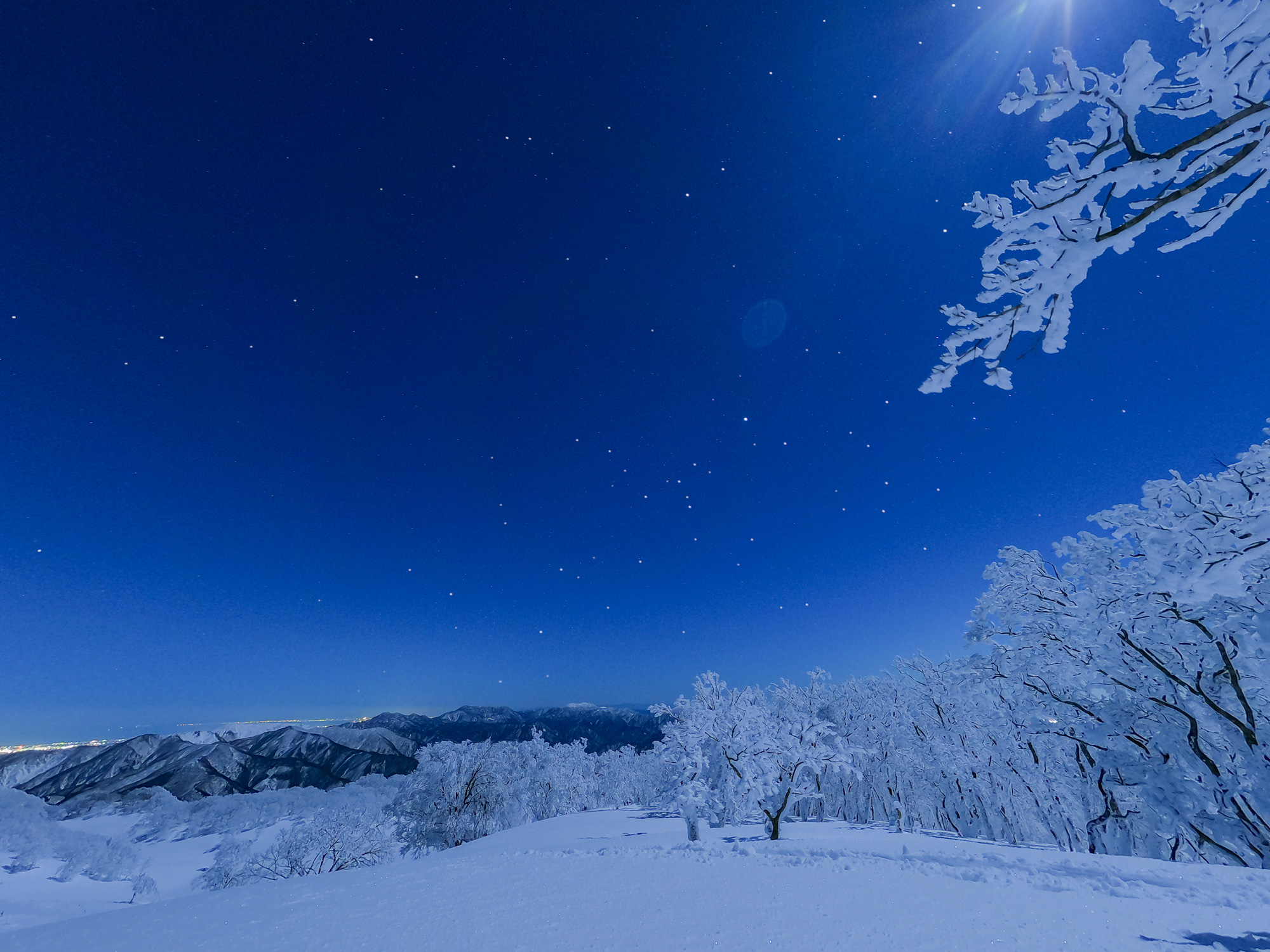 今年の鈴鹿山系北部は積雪が多い。ここ数年、暖冬傾向が続き冬の山岳風景の撮影に困っていた。年末から、藤原岳、竜ヶ岳に登り、重鎮の御池岳は天候条件のチャンスをうかがっていた。土日が移動性高気圧の圏内に入る予報だったので、この日に狙いを定めた。平野部は晴れでもこの山域に限っては、北陸方面の天候を見た方がいい。今回、前日の金曜日に降雪があり、苦戦が予想されたが、あまりにも気象条件が揃っているとのでいくことにした。風景写真の撮影は朝夕がいいので、山中ビバークの2日間の行程とした。夕日は曇りで撮れなかったが、20時過ぎから晴れてきて星空と霧氷が、朝は晴れていて日の出と朝に山岳風景が撮影できた。