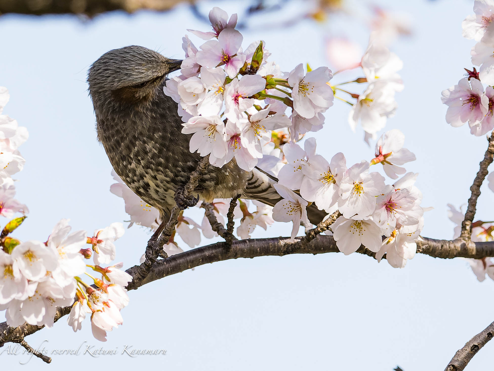 桜を喜ぶのは人だけではない。花の蜜を吸いにスズメ、カワラヒワ、ヒヨドリ、ムクドリがやってきた。小魚も多くなりカワセミも魚鳥が楽になる季節。そろしろ子育てが始まりそうだ。