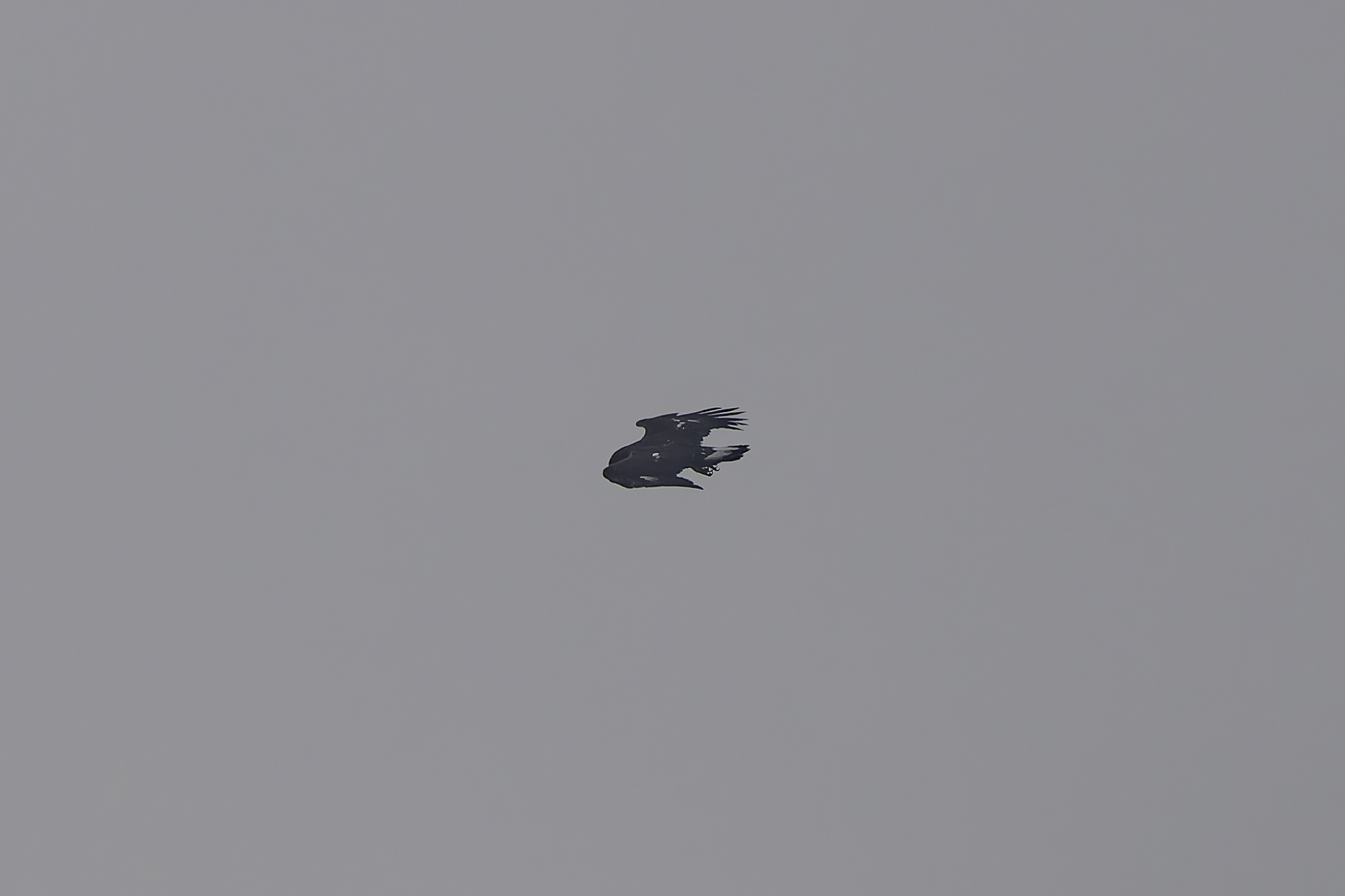 前線の影響でガスの多い一日だった。北西面はガスで何も見えない。辛うじて東面と北尾根が少し視界が開けた。12時過ぎに大曲に移動するとサーナが飛んでいた。こんな所まで来ている、親を探したが見つからない。風に乗って悠々と飛んでいる。巣立ち後2週間の幼鳥だと合う誰も思わない。三つ星が確認出来たのでやはりサーナだ。