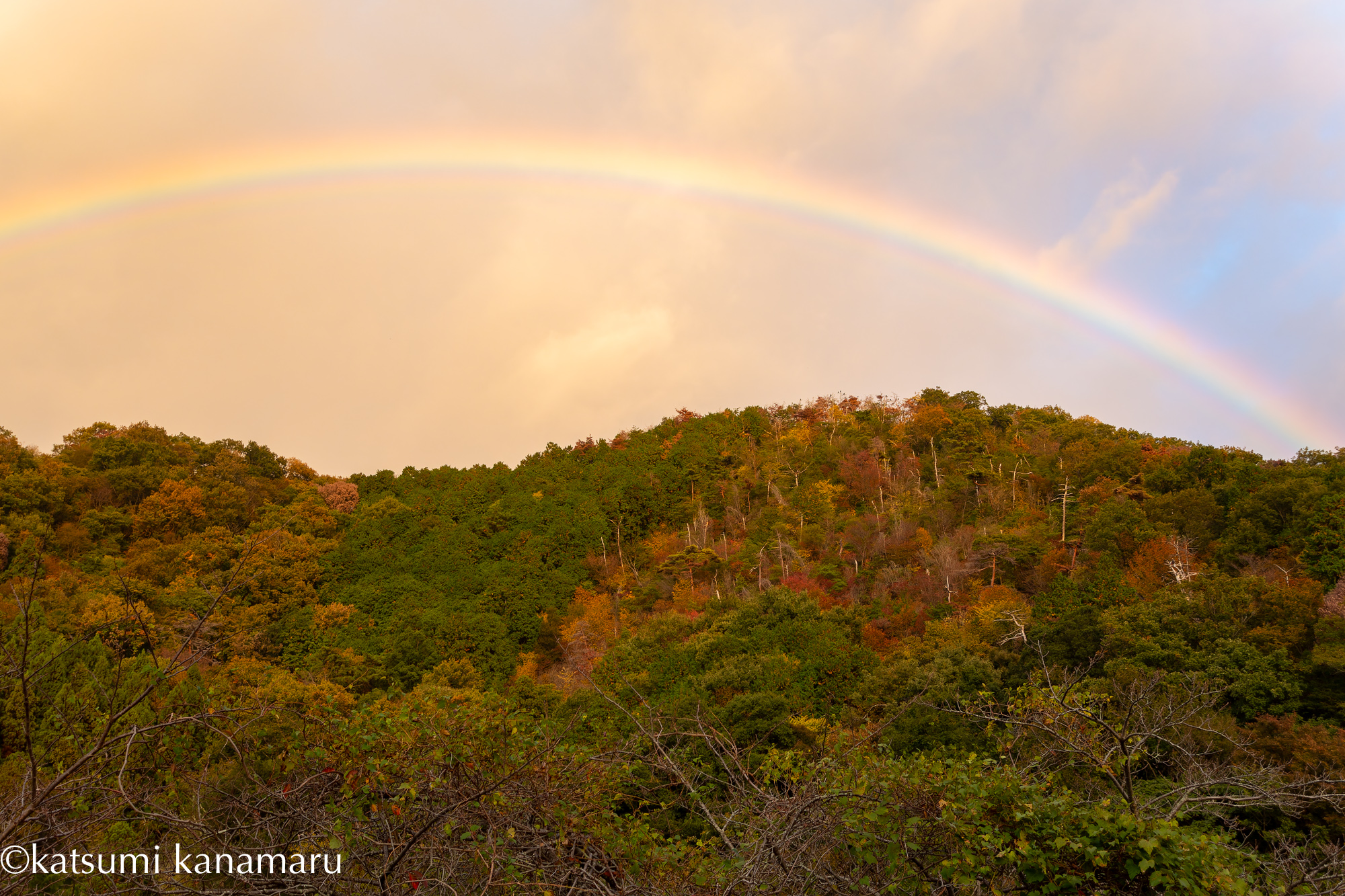 おばあちゃんの上に虹のドームができた。「Welcome Rainbow」まるでおばあちゃんを歓迎する虹でした。