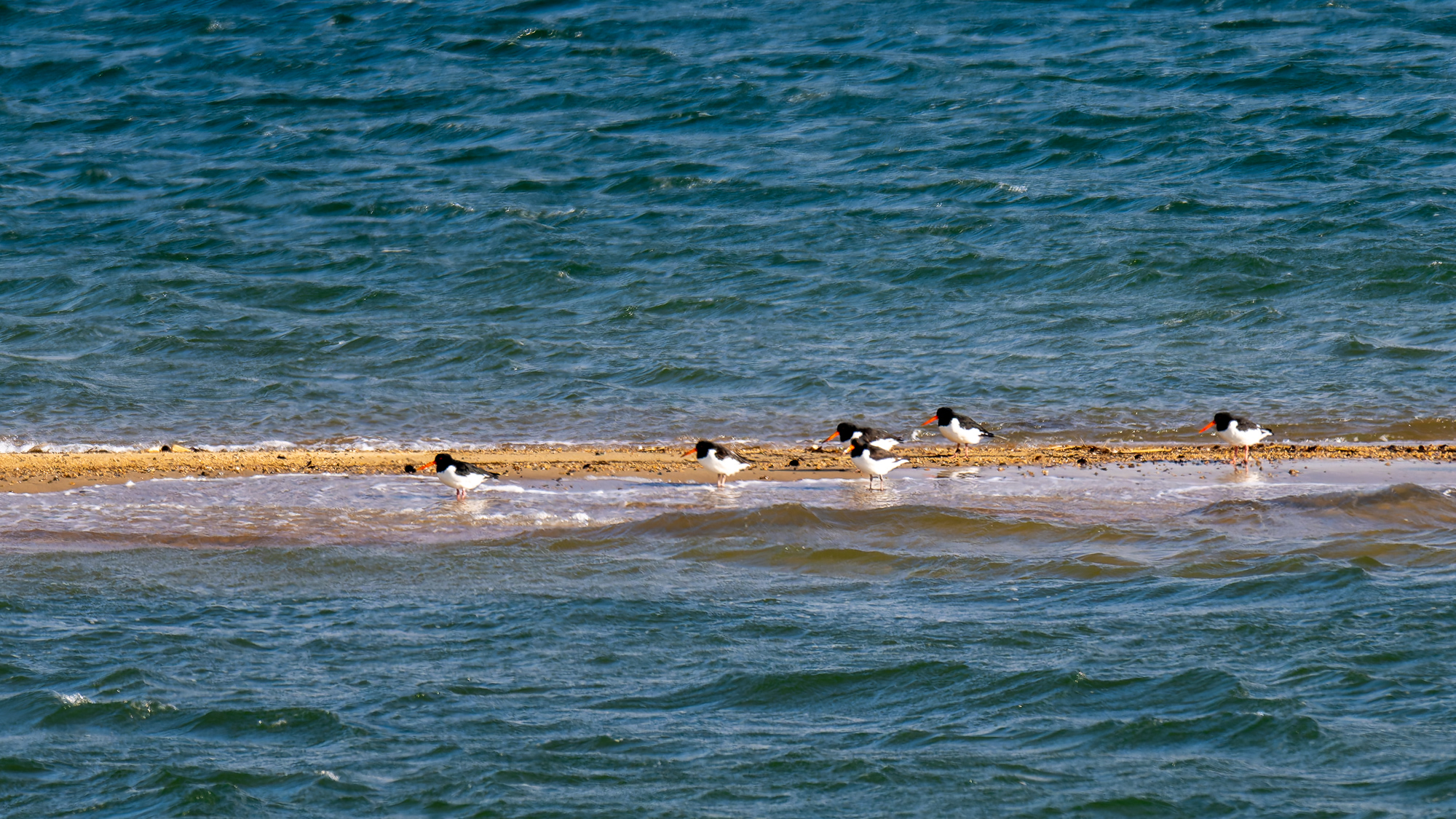 鈴鹿川河口に移動 風は徐々に弱くなってきた。日差しがあり助かる。ミヤコドリが諏訪干潟にいた。カモ類は風を避け、風裏となる護岸に集まっていた。