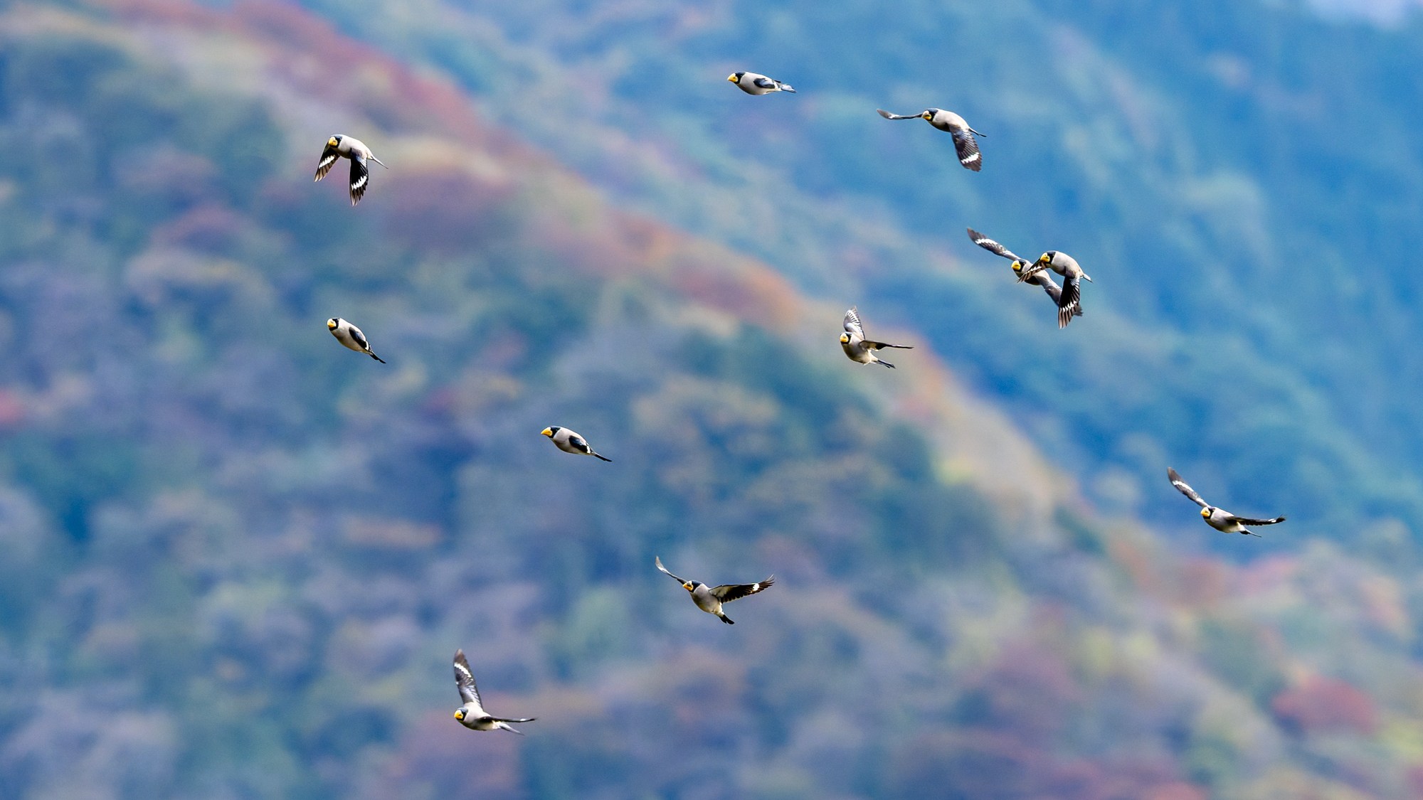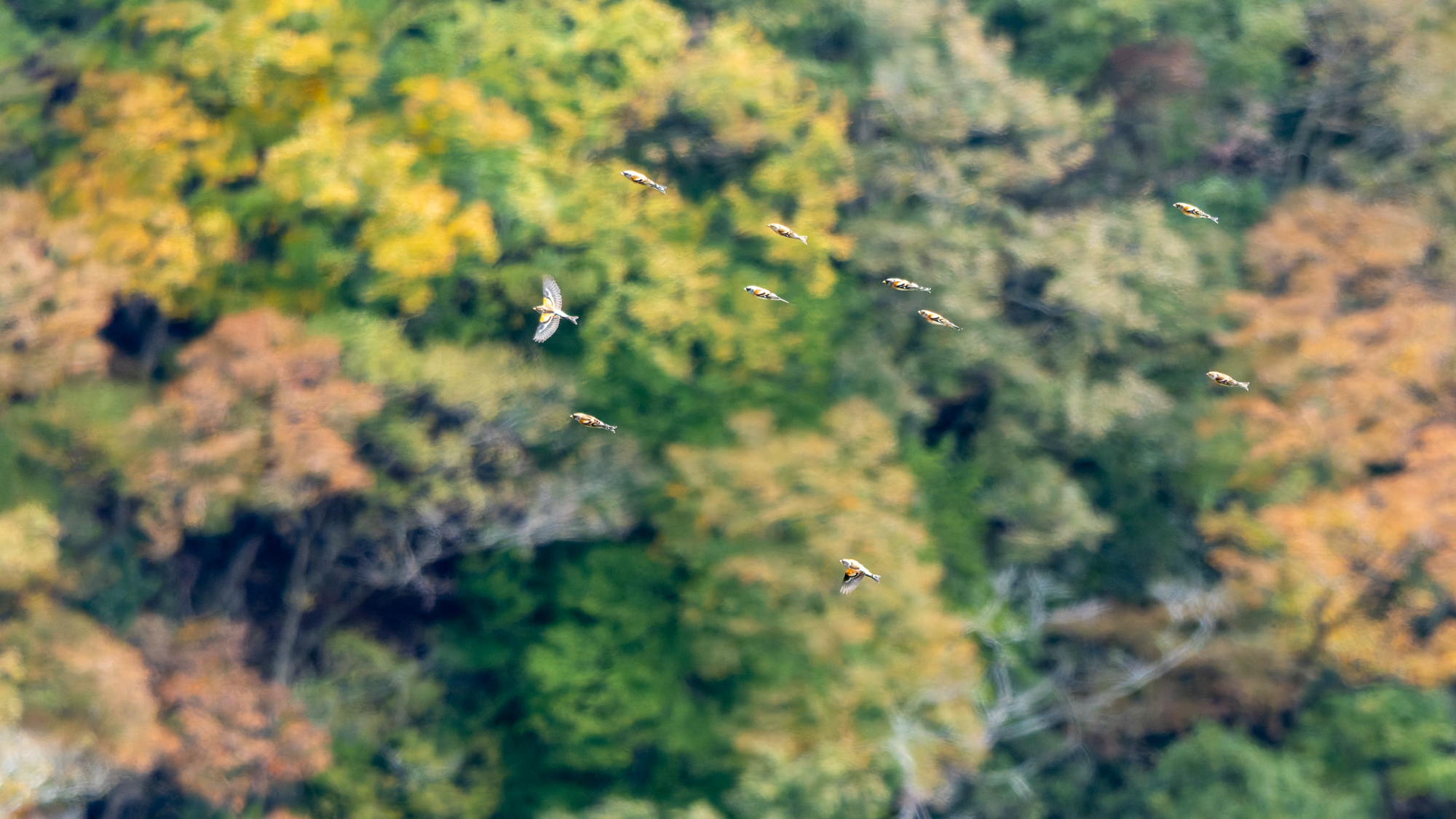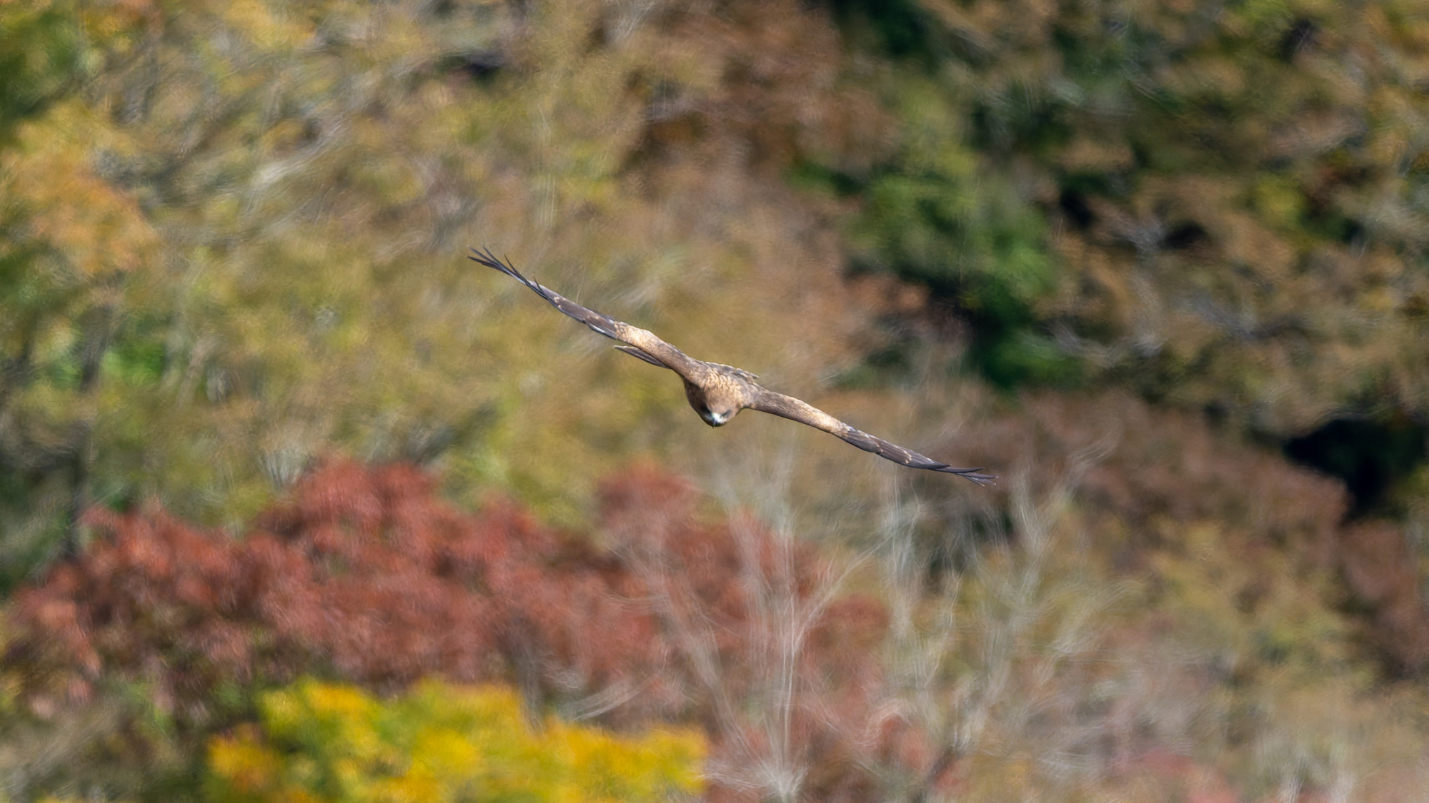 イヌワシの継続観察。今回もメスは確認。秋が足早に通り過ぎていく。ハイタカが2,3羽入っていた。冬鳥のアトリが群れで飛び交う季節だ。イカルも将軍で飛んでいた。トレイルカメラは、ハクビシン、アナグマが写らなくなってきた。サル、シカは常連で、タヌキも定期的にやってくる。テンが久しぶりに写った。トラツグミが初めて写った。